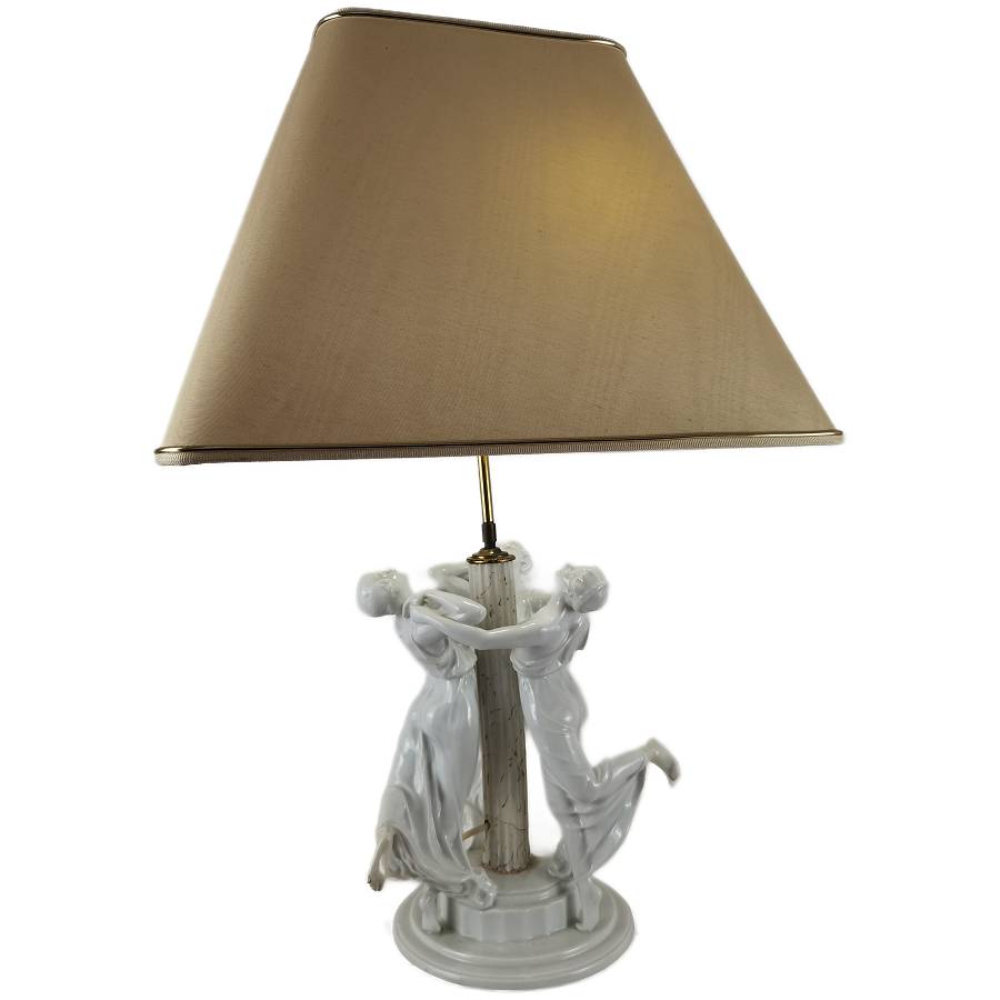 Masse/dimensions: Höhe/Height ca. 75 cm, Maximale Breite /Maximumum width ca. 45 cm Maximale Tiefe/Maximumum depth ca. 45 cm Material, Brennstellen/material, Hotspots: Die Lampe wurde aus Porzelan gefertigt und hat 2 Brennstellen mit E27 Fassung