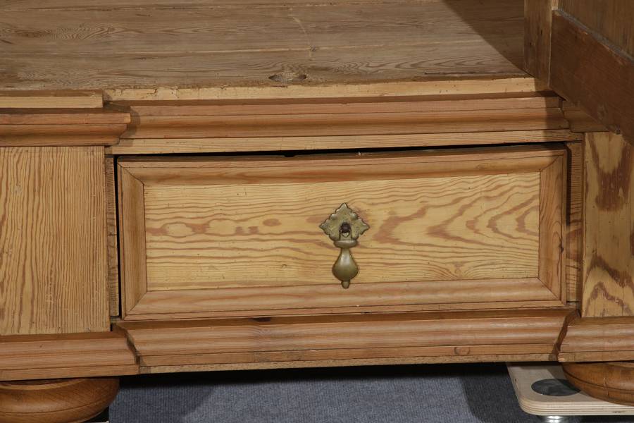Barock Schrank mit Trapezgiebel 18 Jh. Weichholz | ||||||||||||||||||||||||||||||||||||||||||||||||