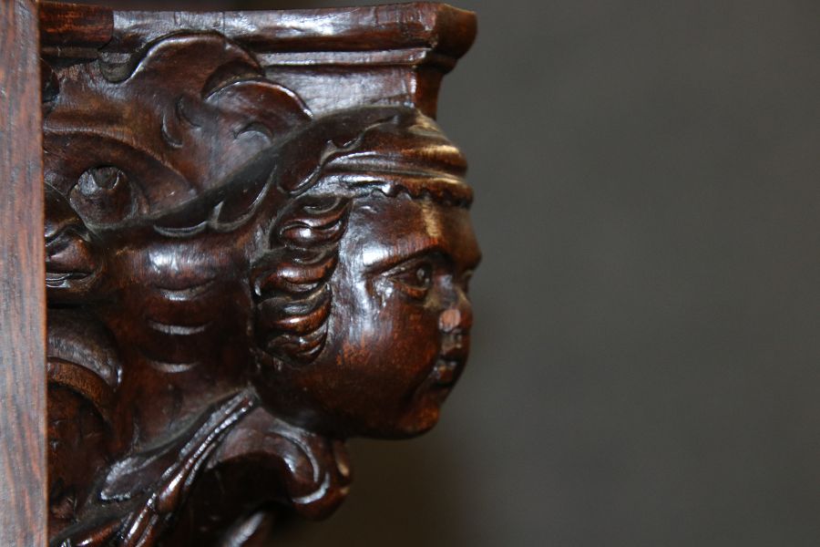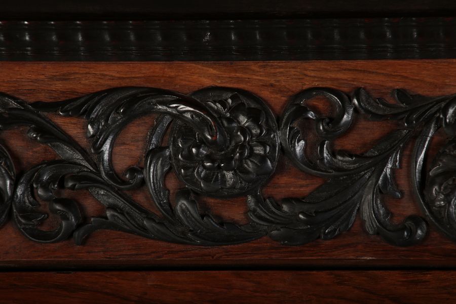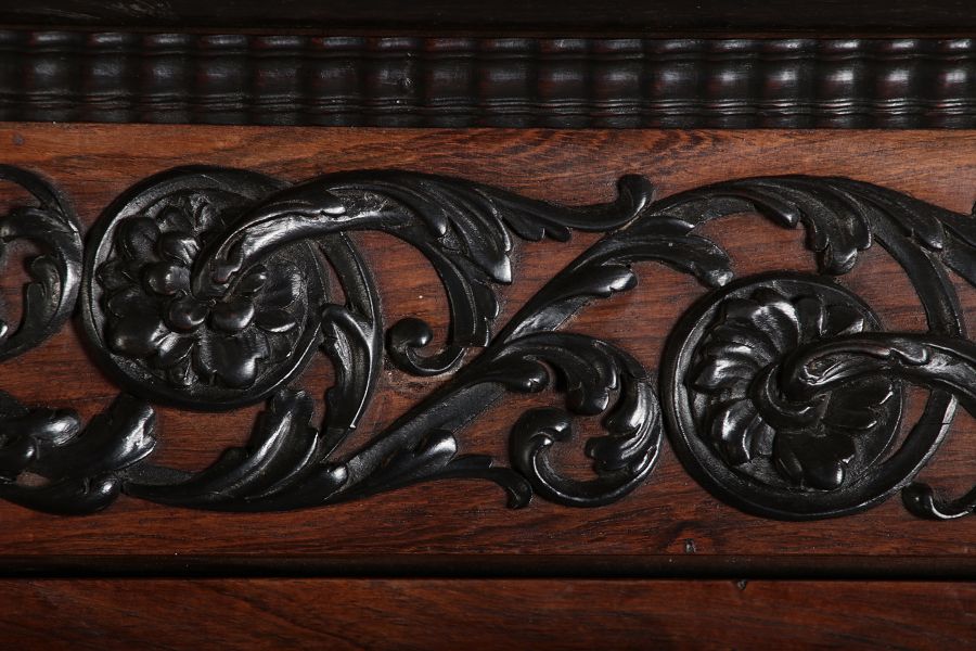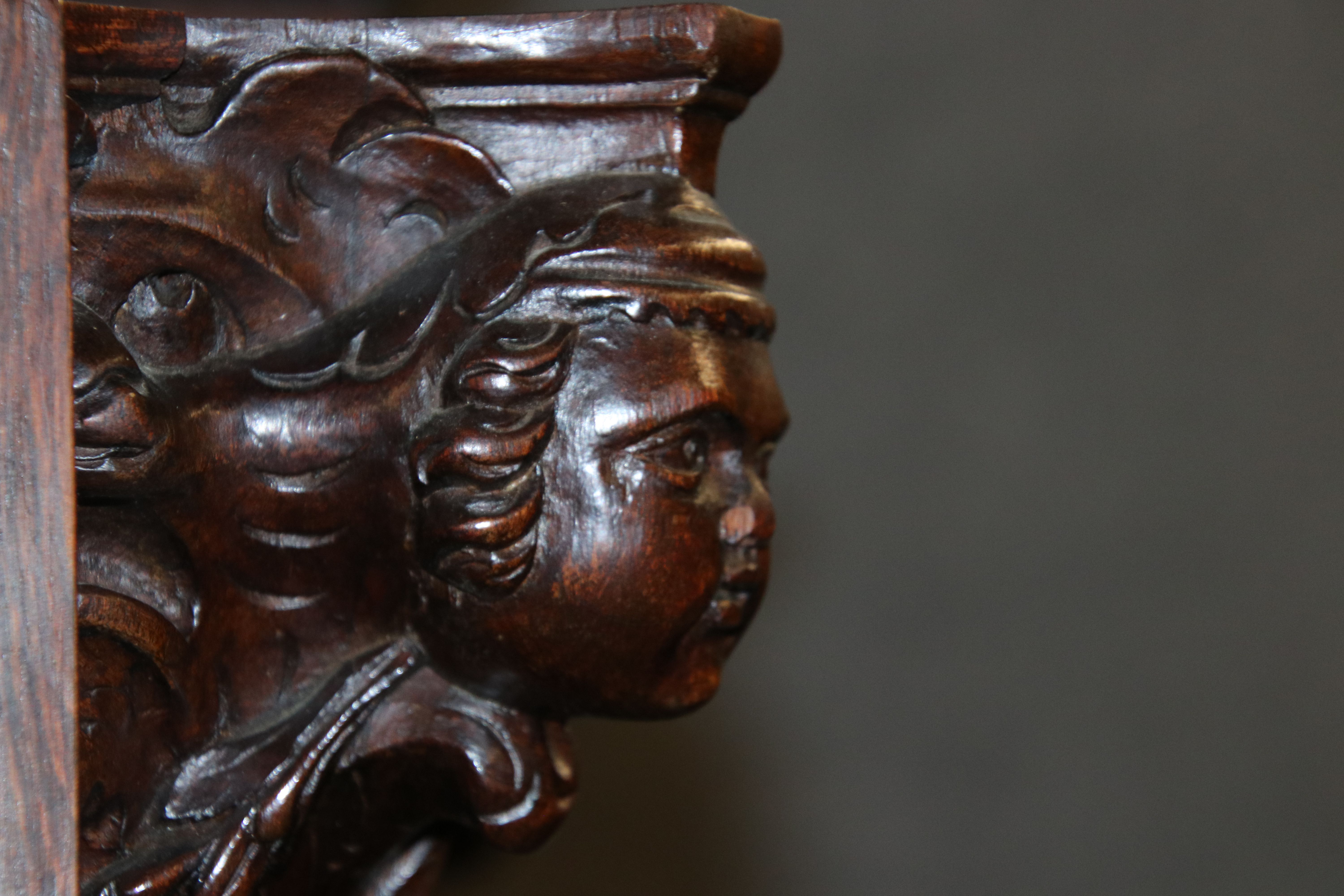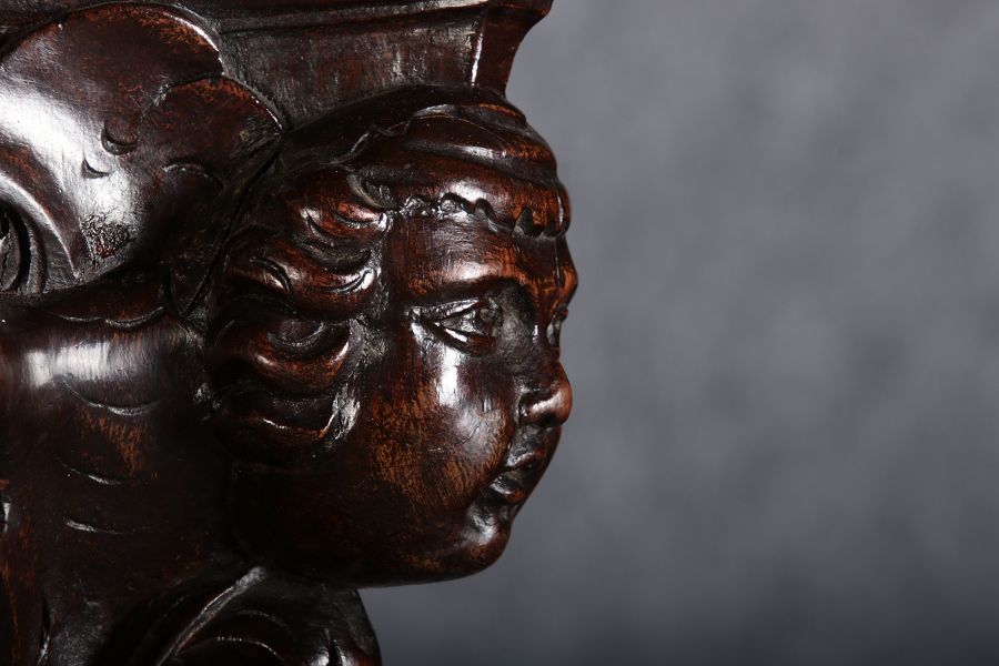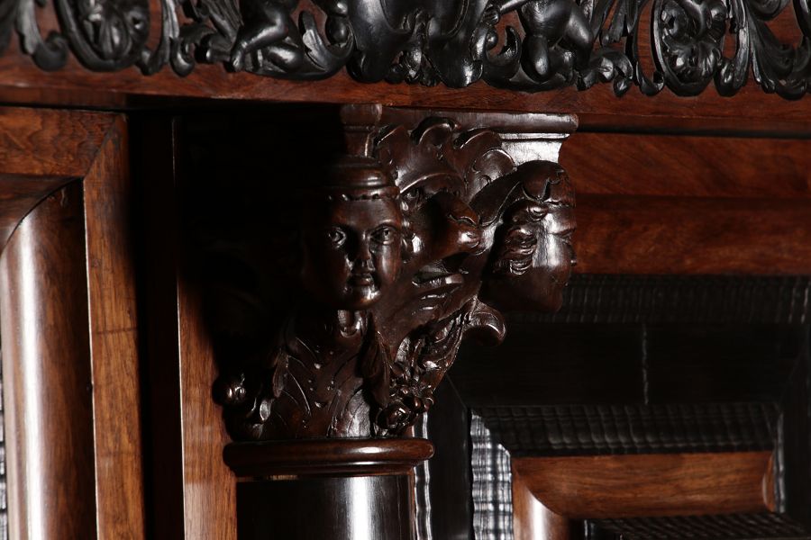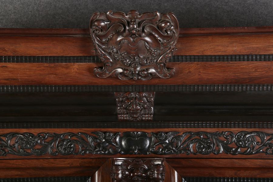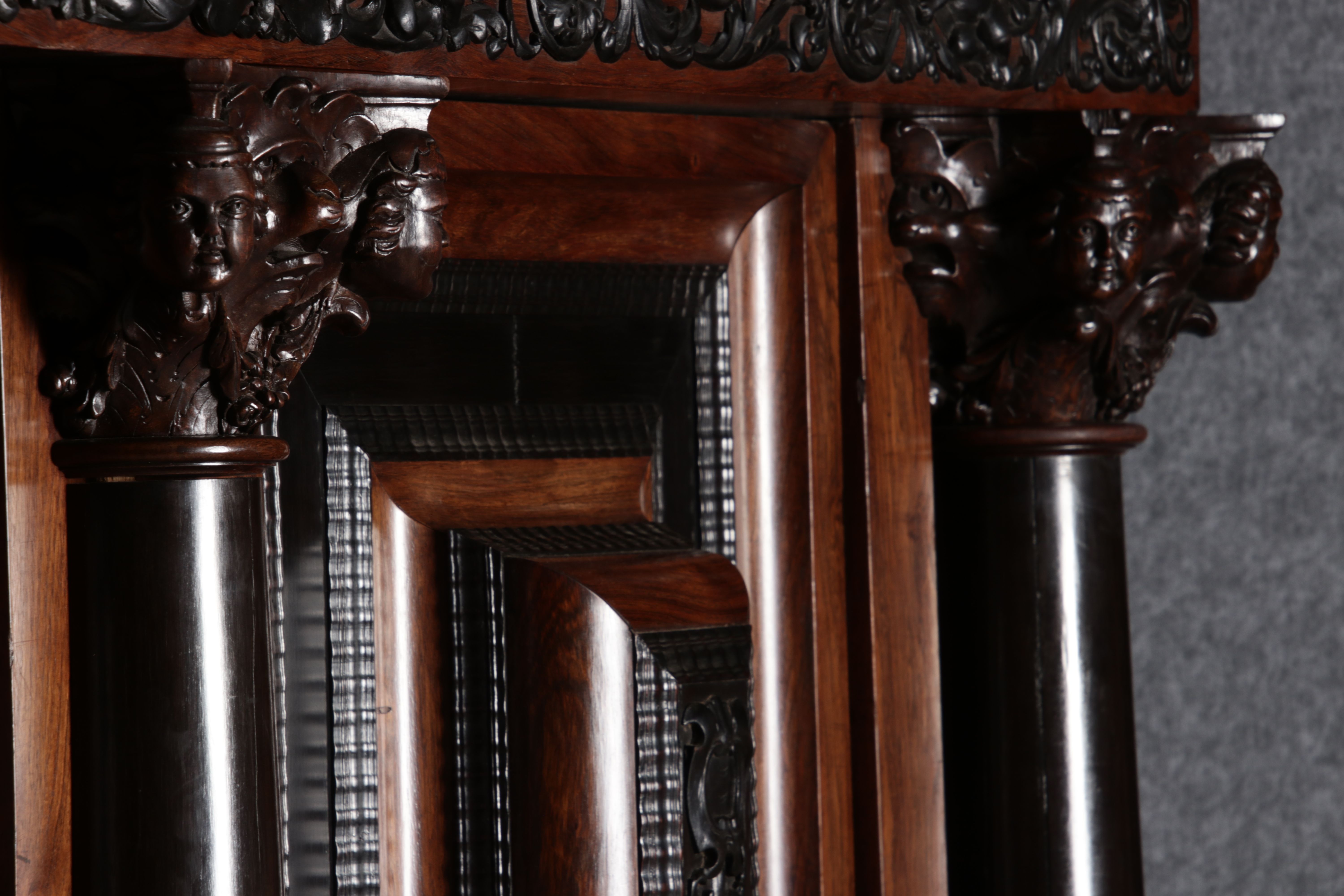 Antiker Barockschrank Amsterdamer Schapp, 5 ebonisierten Säulen, Kissenfüllungen, geschnitzte Kapitele - Türen - Gesimse, Geheimfach, auf hohen Füßen |