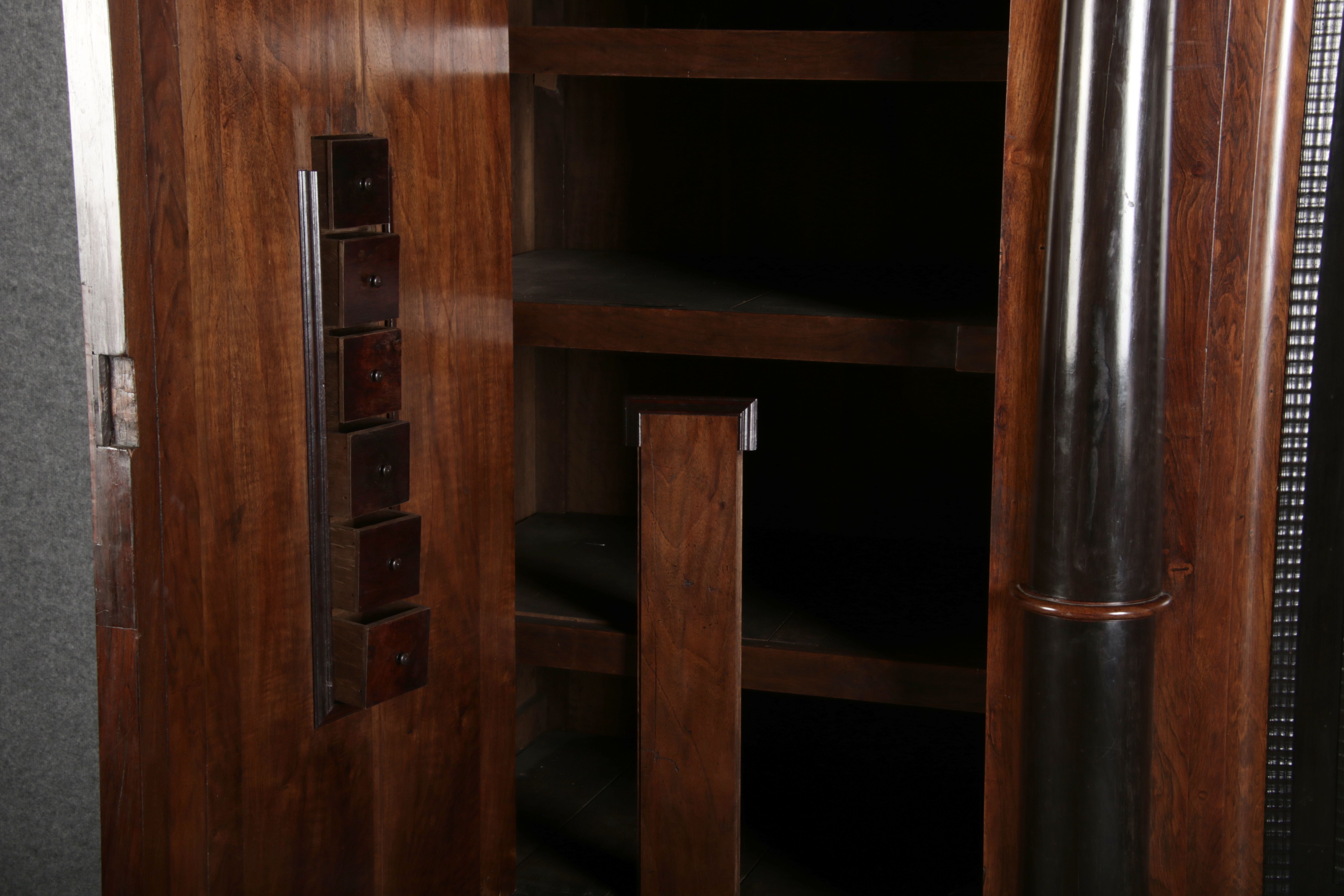 Nussbaum Kirschbaum Mahagoni Klassizismus Vitrine Schrank Säulen