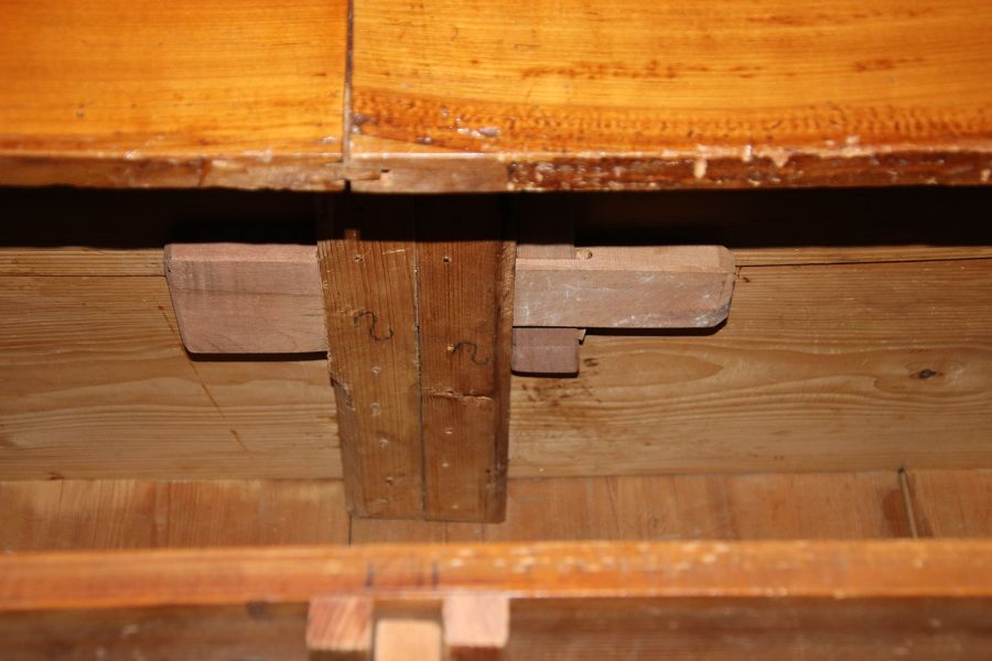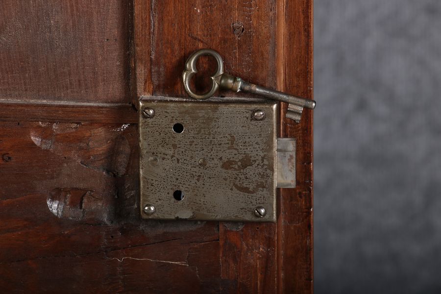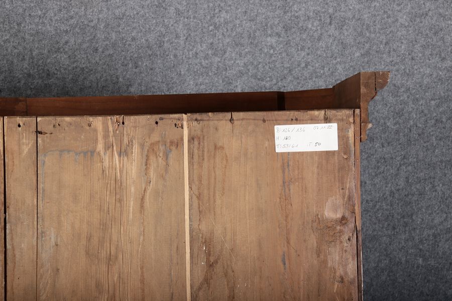 Konstruktion/construction: Der Schrank ist ein Spaltschrank und besteht aus vier Teilen, Kleinteilen und der Inneneinteilung