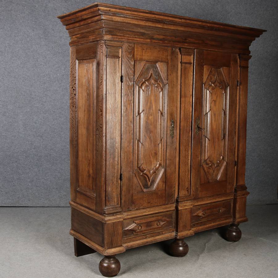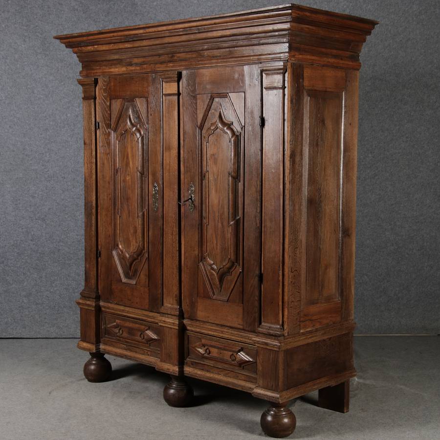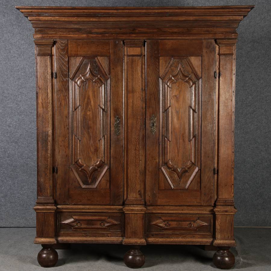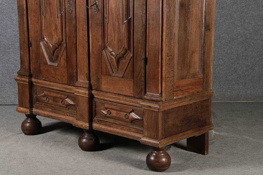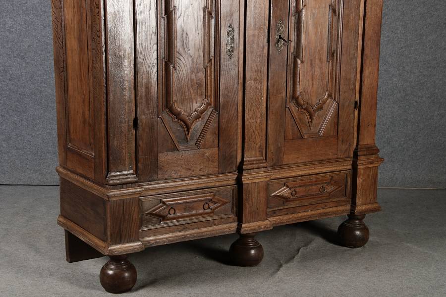 Antiker Barockschrank Ostfriesland mit Bastionsfüllungen erste Hälfte 18 Jh. um 1730, Eiche Massiv. |
