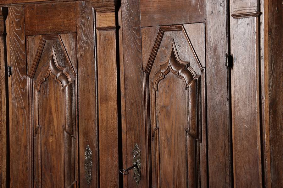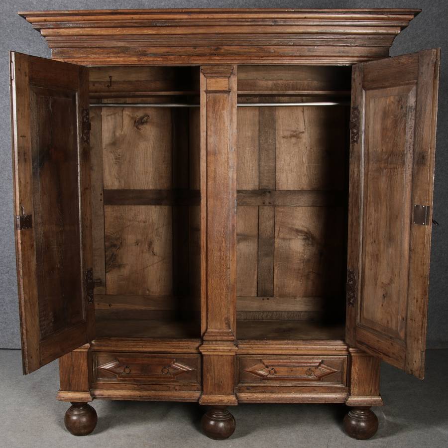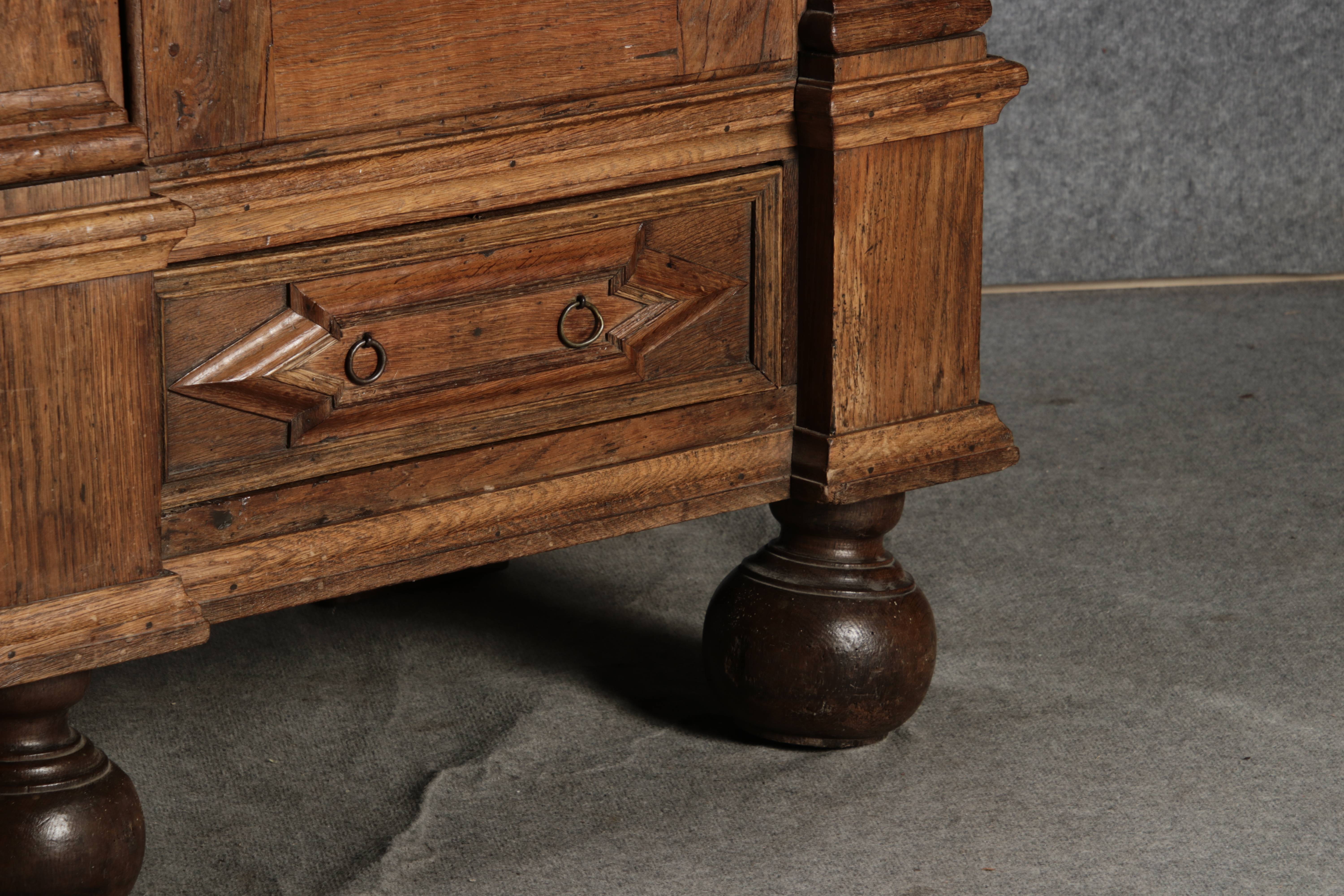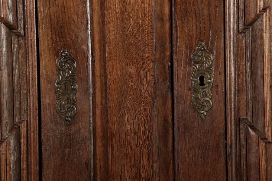Antiker Barockschrank Ostfriesland mit Bastionsfüllungen erste Hälfte 18 Jh. um 1730, Eiche Massiv. |