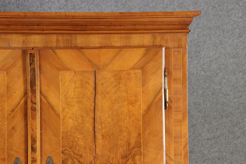 Masse/dimensions: Höhe/Height ca. 74/190 cm, Breite Korpus/Broad Boda ca. 118 cm, Breite Gesims/Broad cornice ca. 131 cm, Tiefe Korpus/Deep body ca. 30 cm, Tiefe Gesims/Deep cornice ca. 42 cm, Holz, Schlüssel/wood,