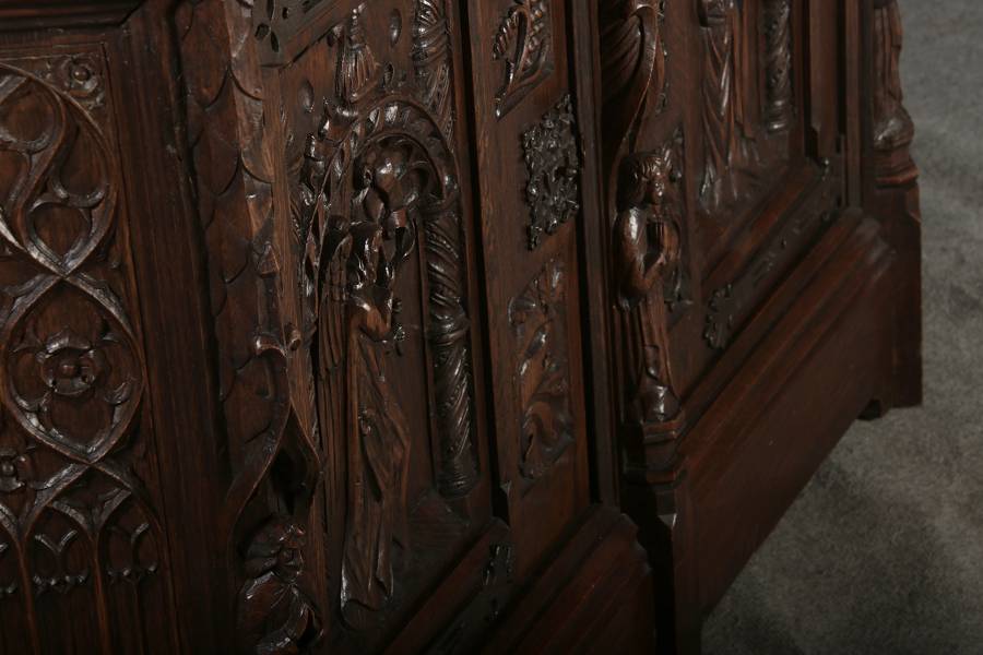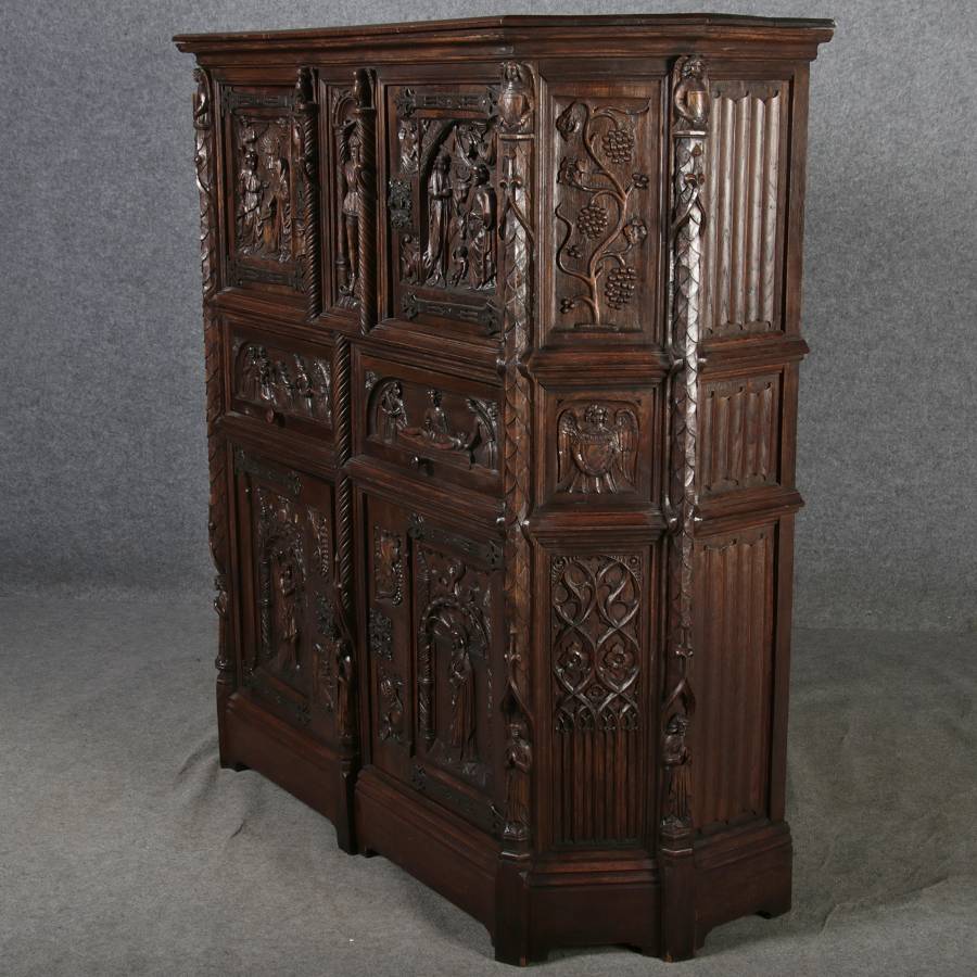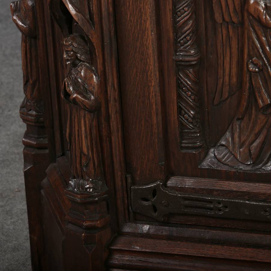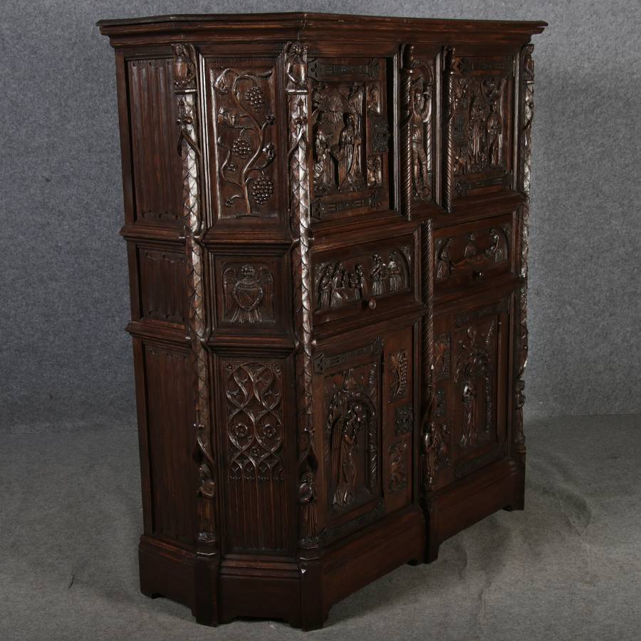 | Antiker Historismus Schrank im Gotischen Stil Schnitzwerk Eiche Massiv |