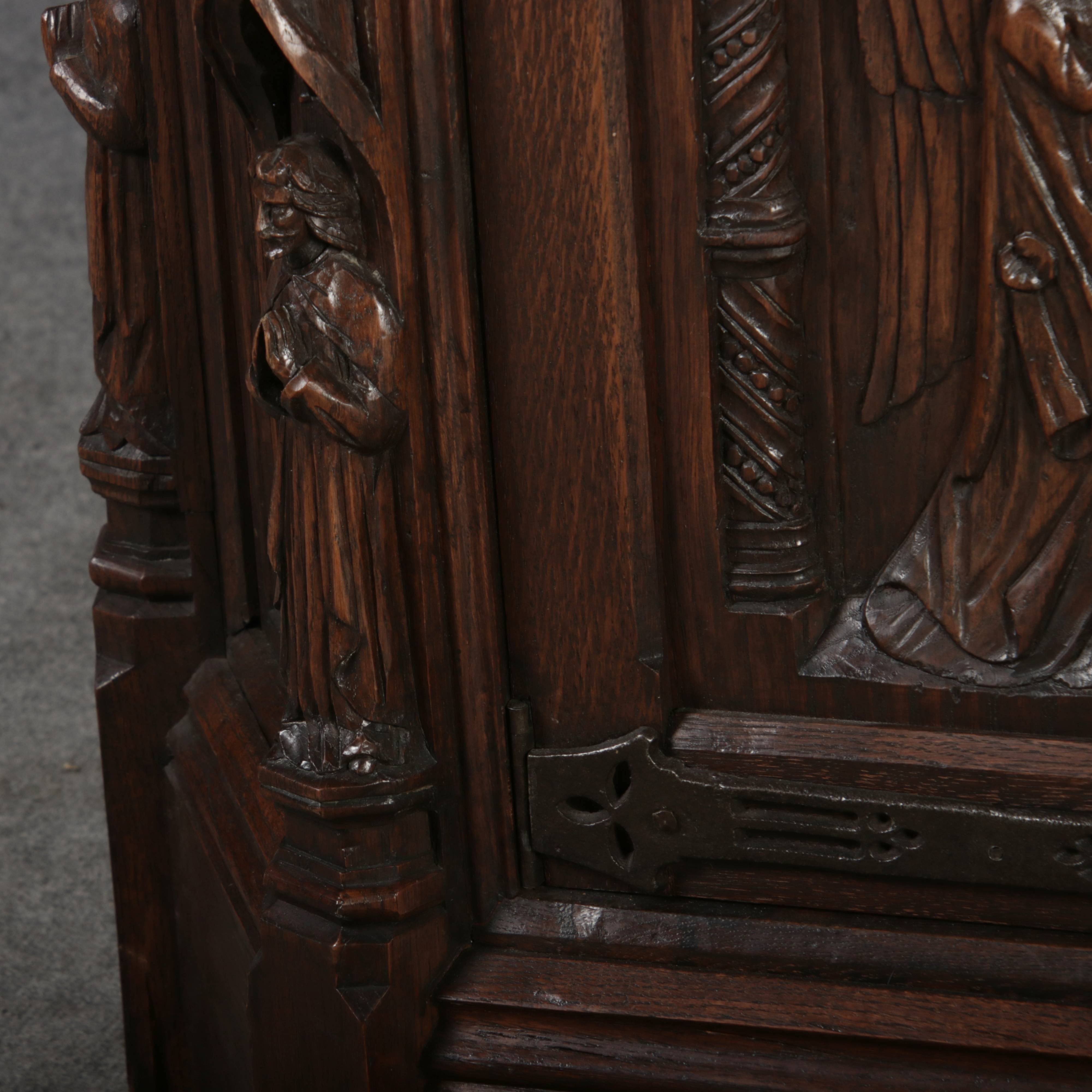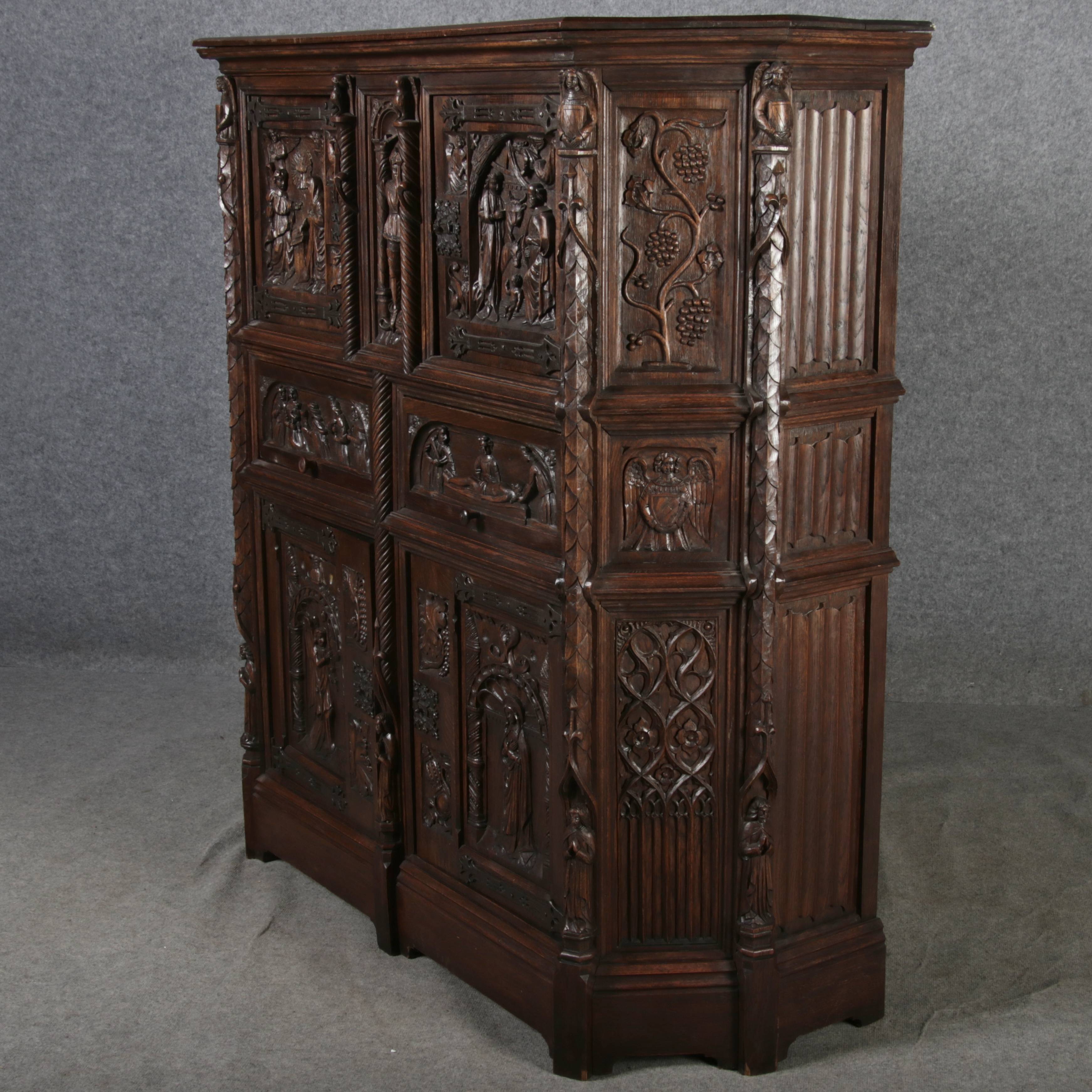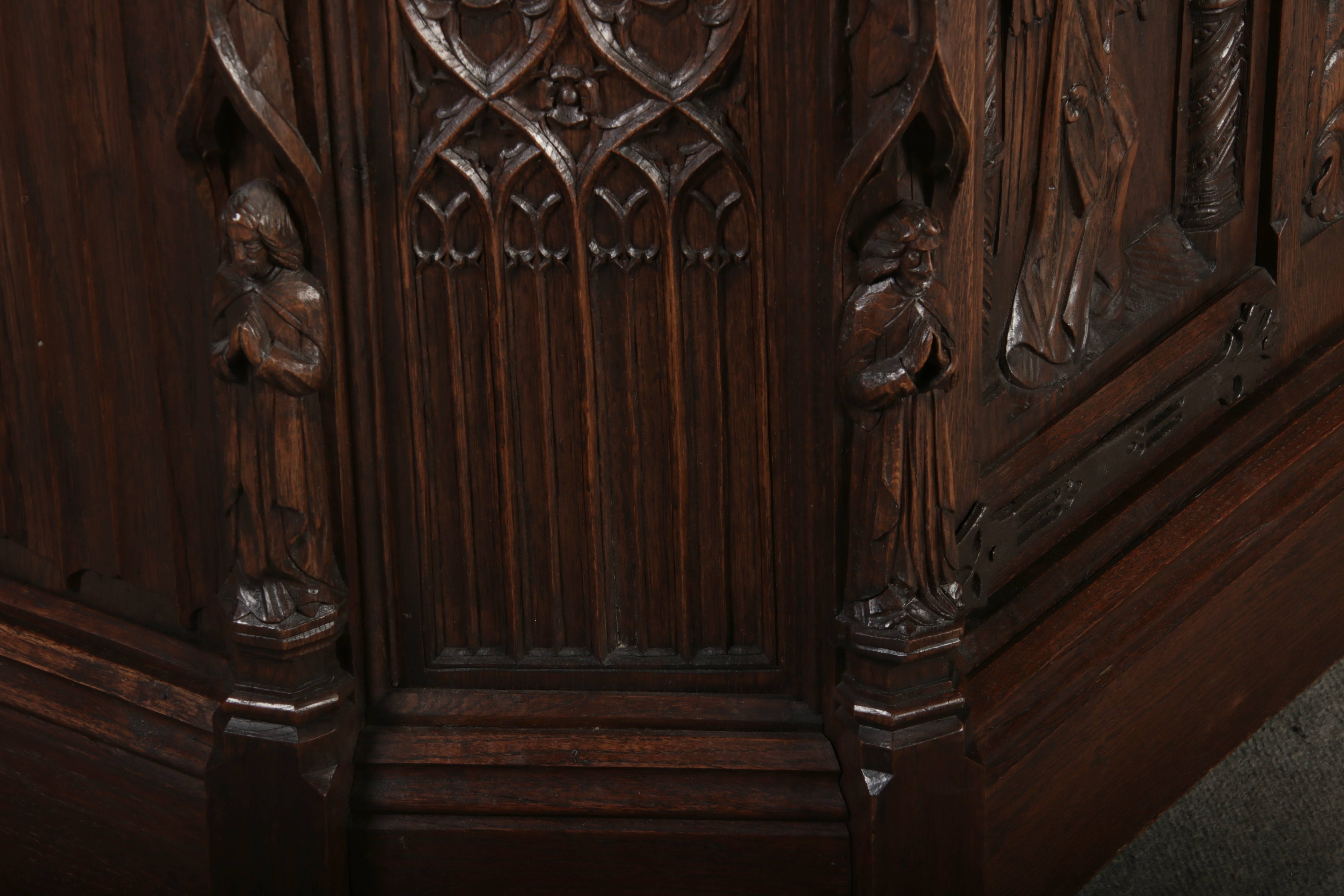 | Antiker Historismus Schrank im Gotischen Stil Schnitzwerk Eiche Massiv |