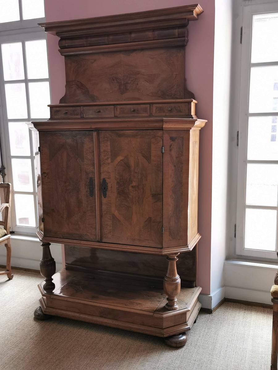 | Antiker Barock Stollenschrank Schrank Nussbaum mit Einlegearbeiten um 1720-50 |