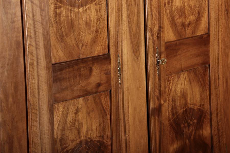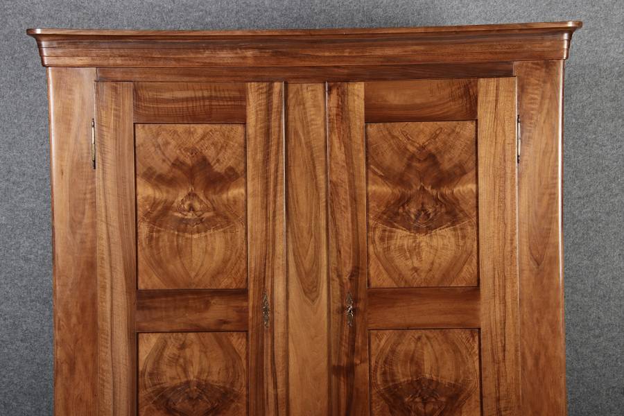 | Antiker Biedermeier Schrank aus Nussbaum, um 1830 | ||