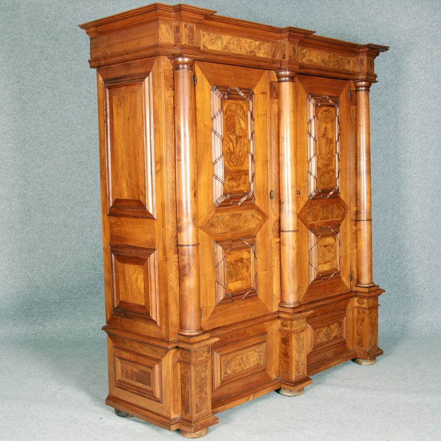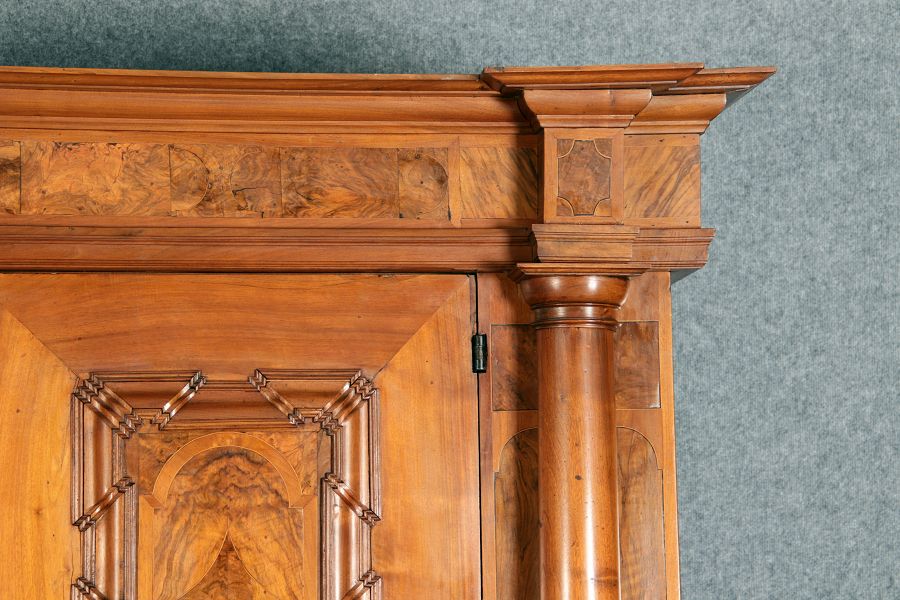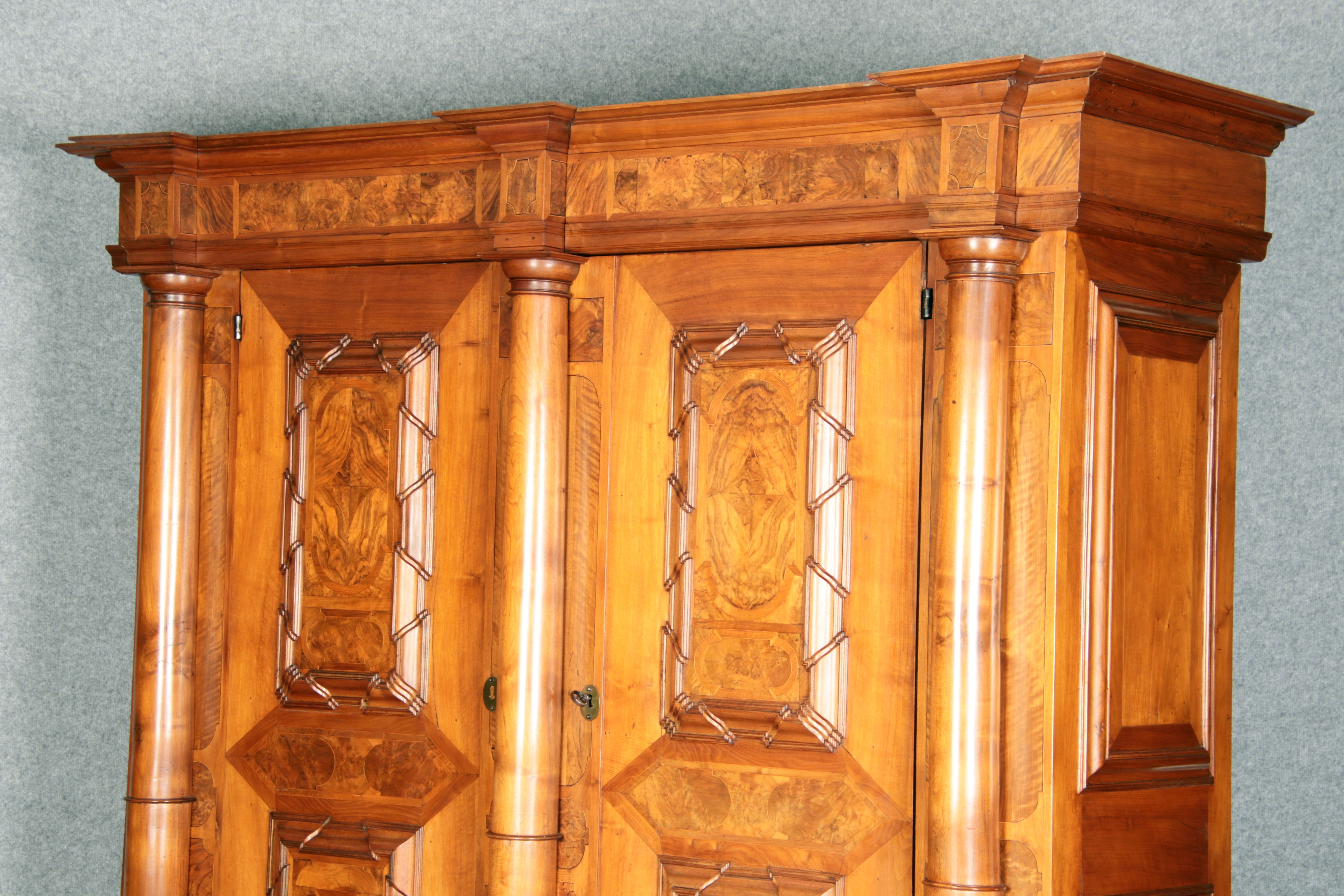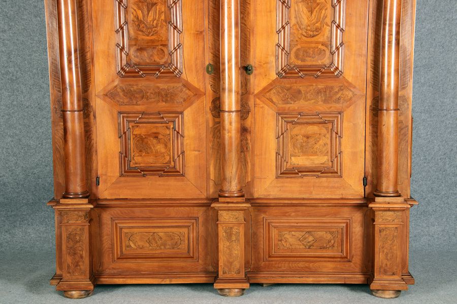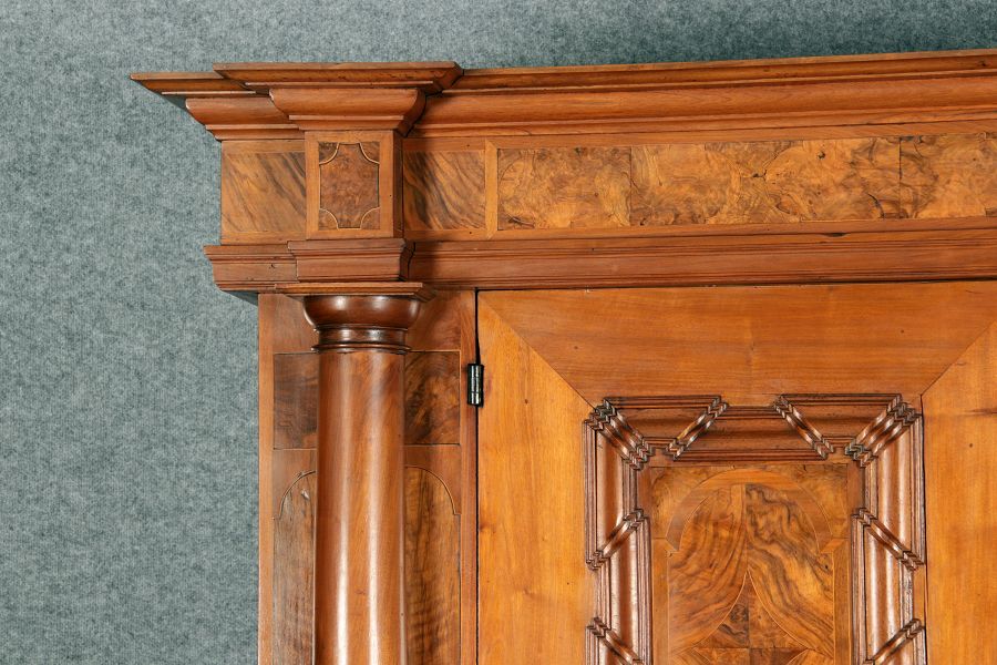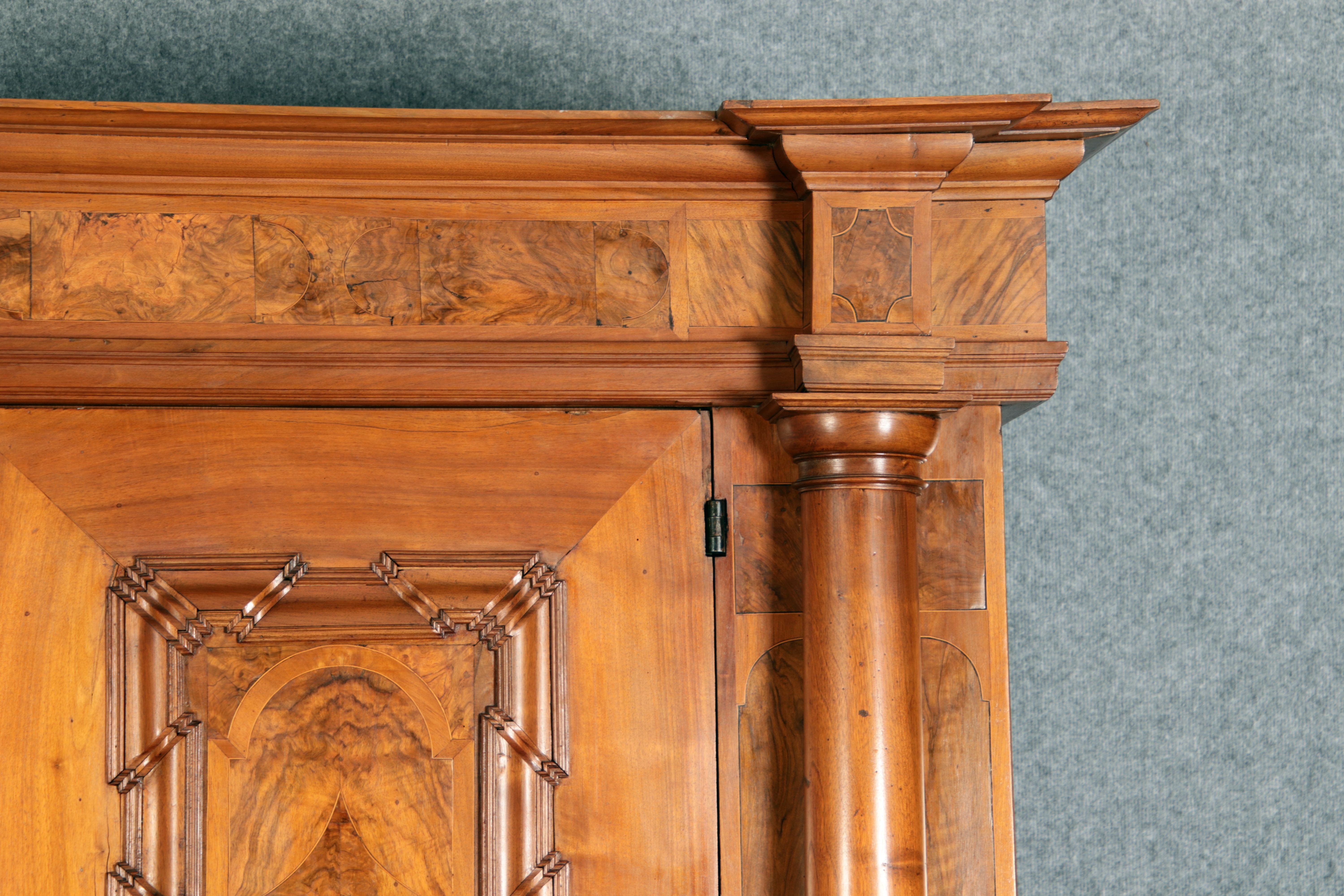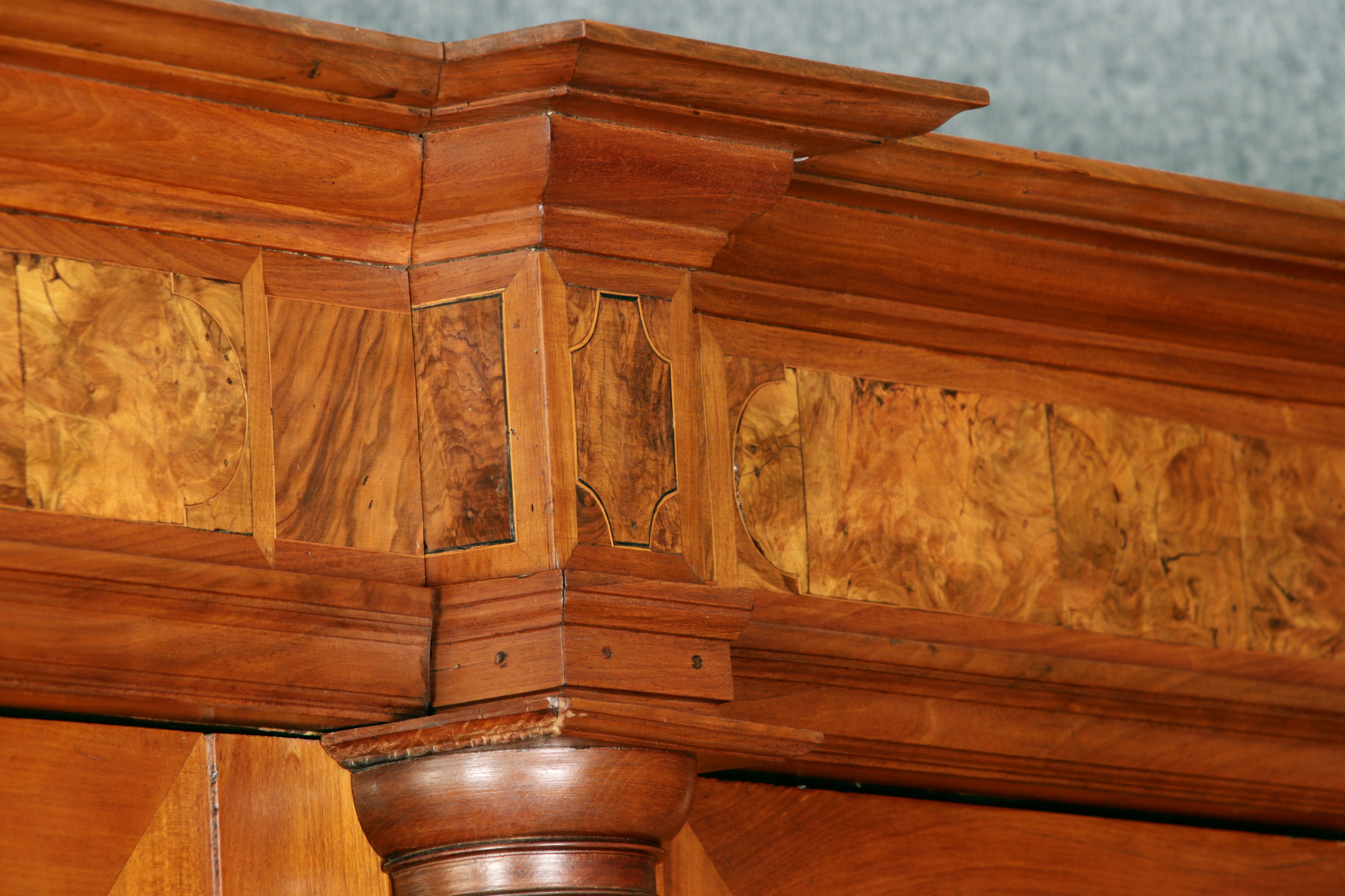 Großer Basler Barockschrank um 1720, Nussbaum furniert