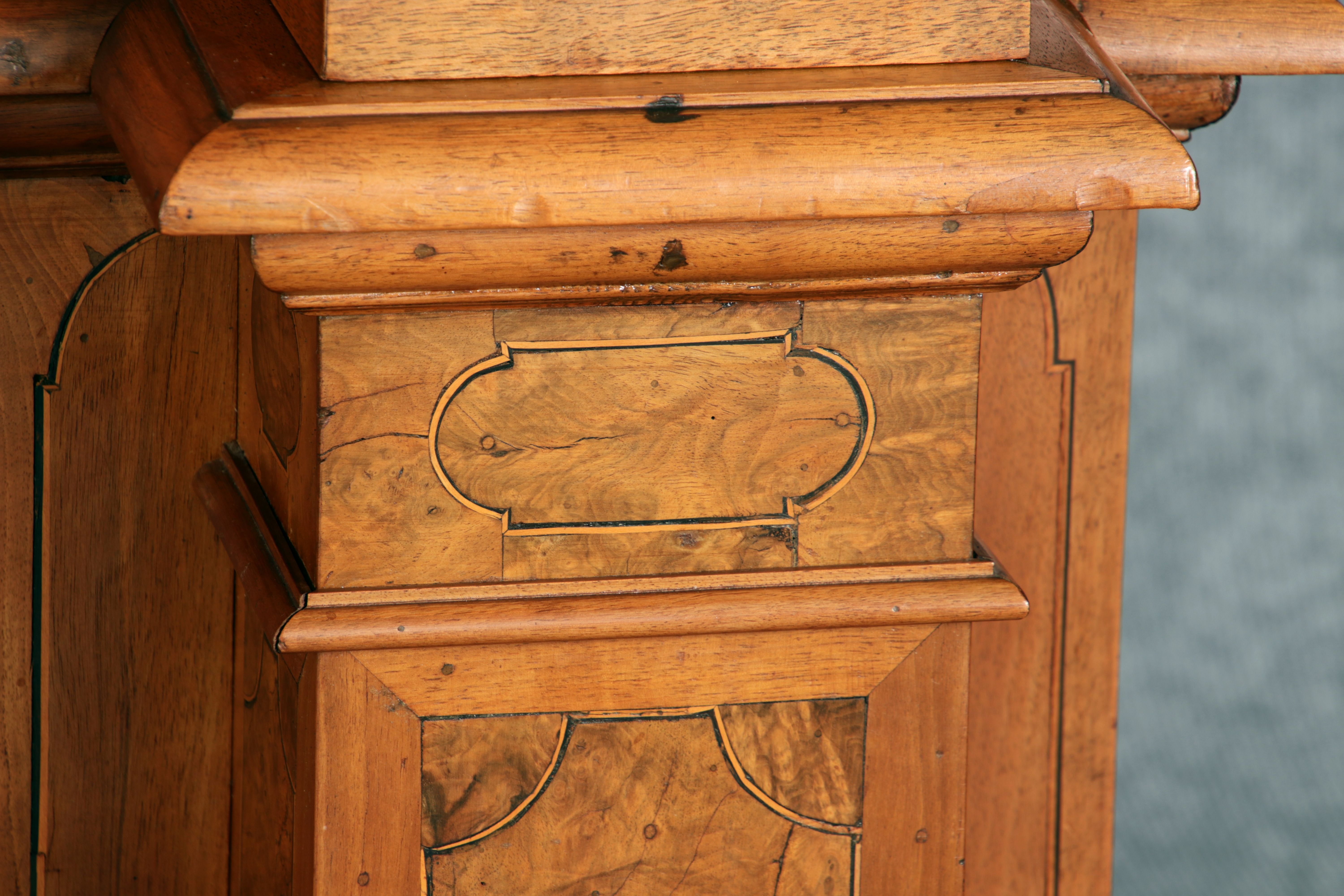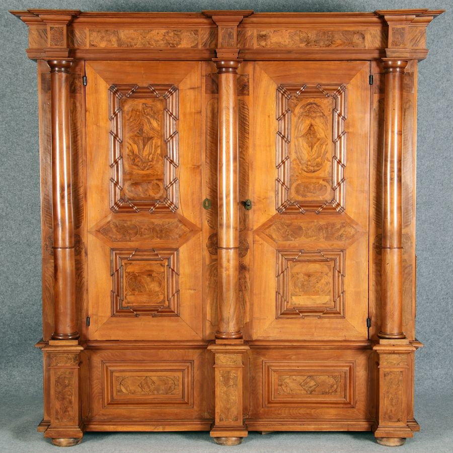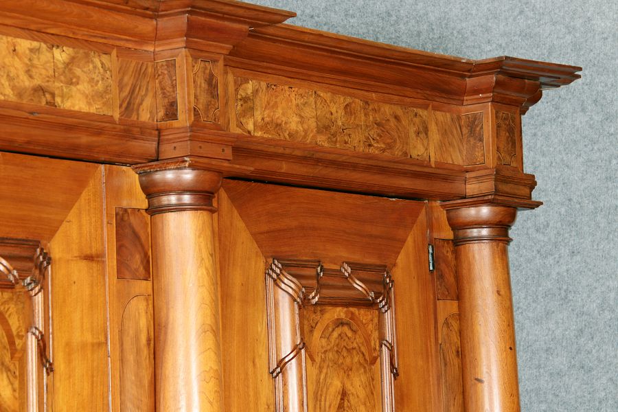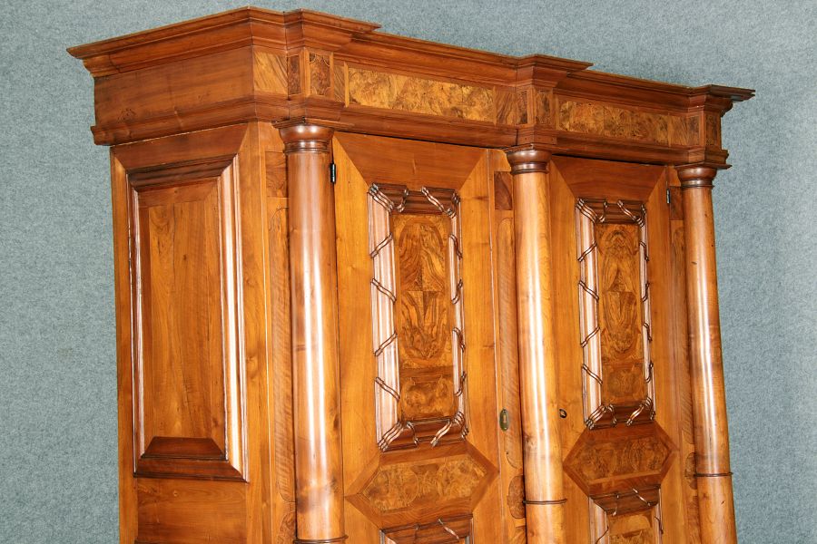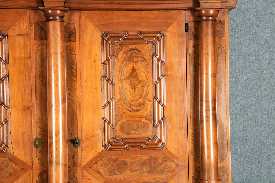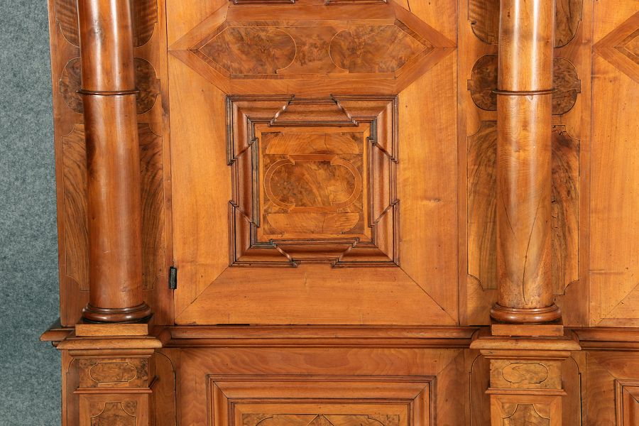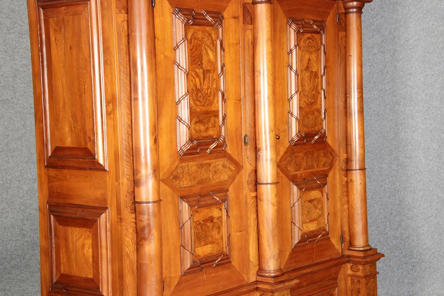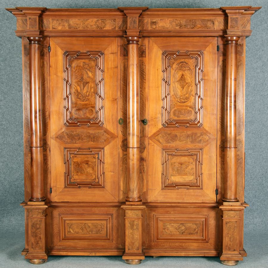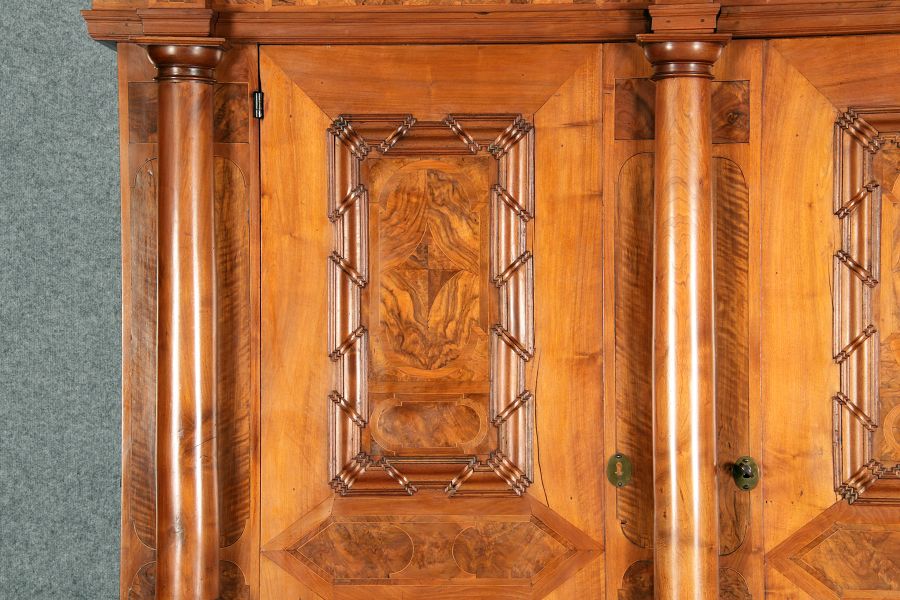 Großer Basler Barockschrank um 1720, Nussbaum furniert