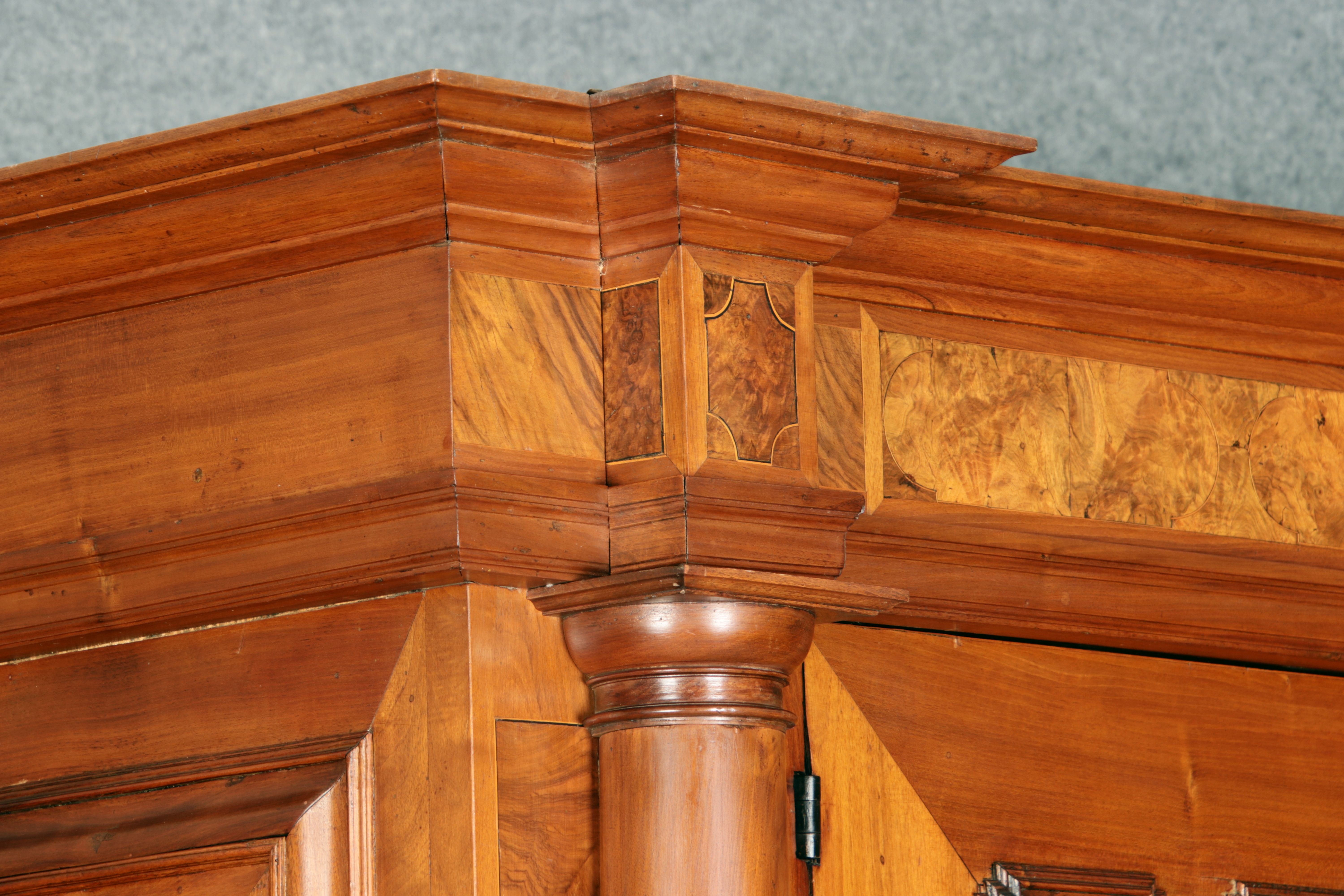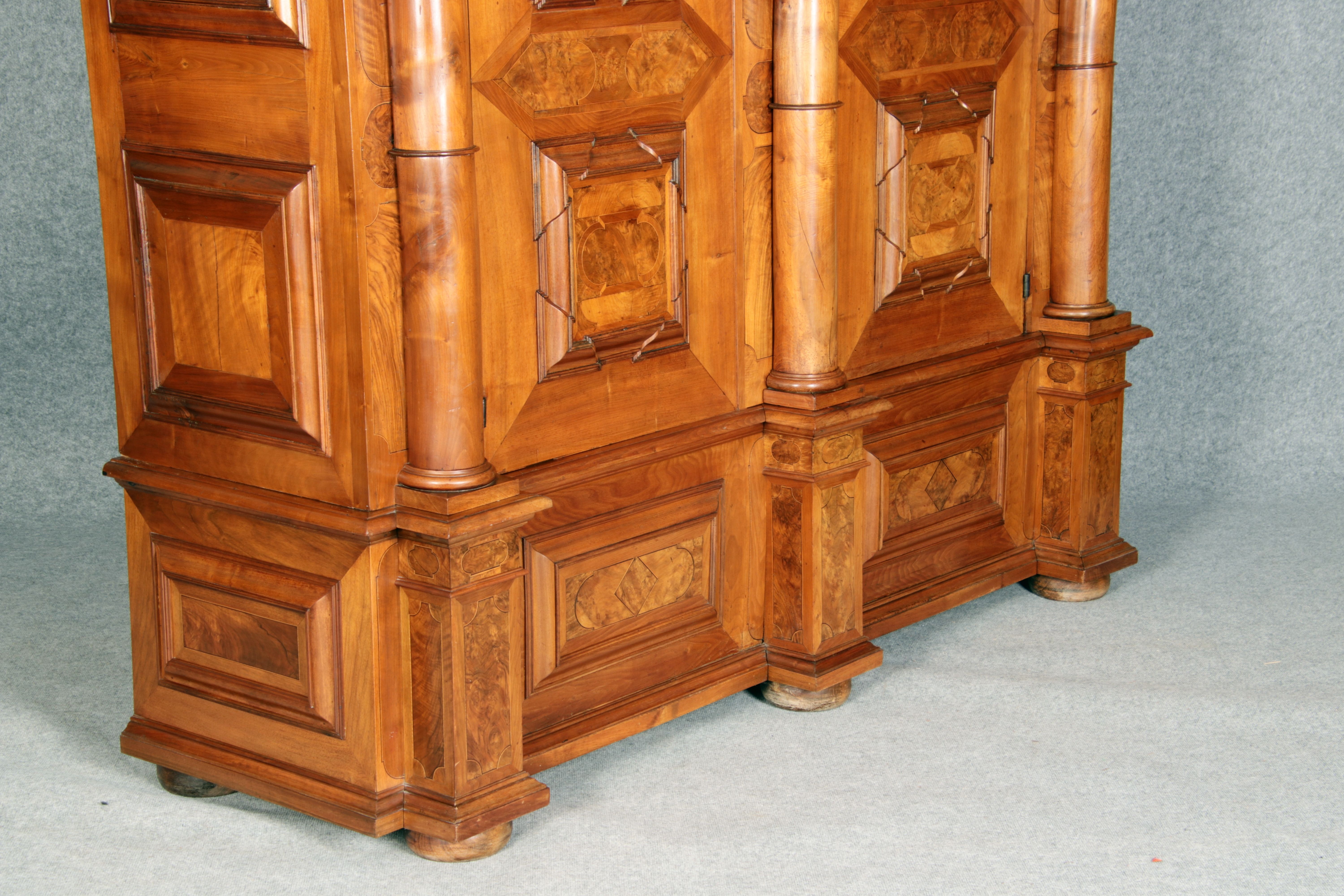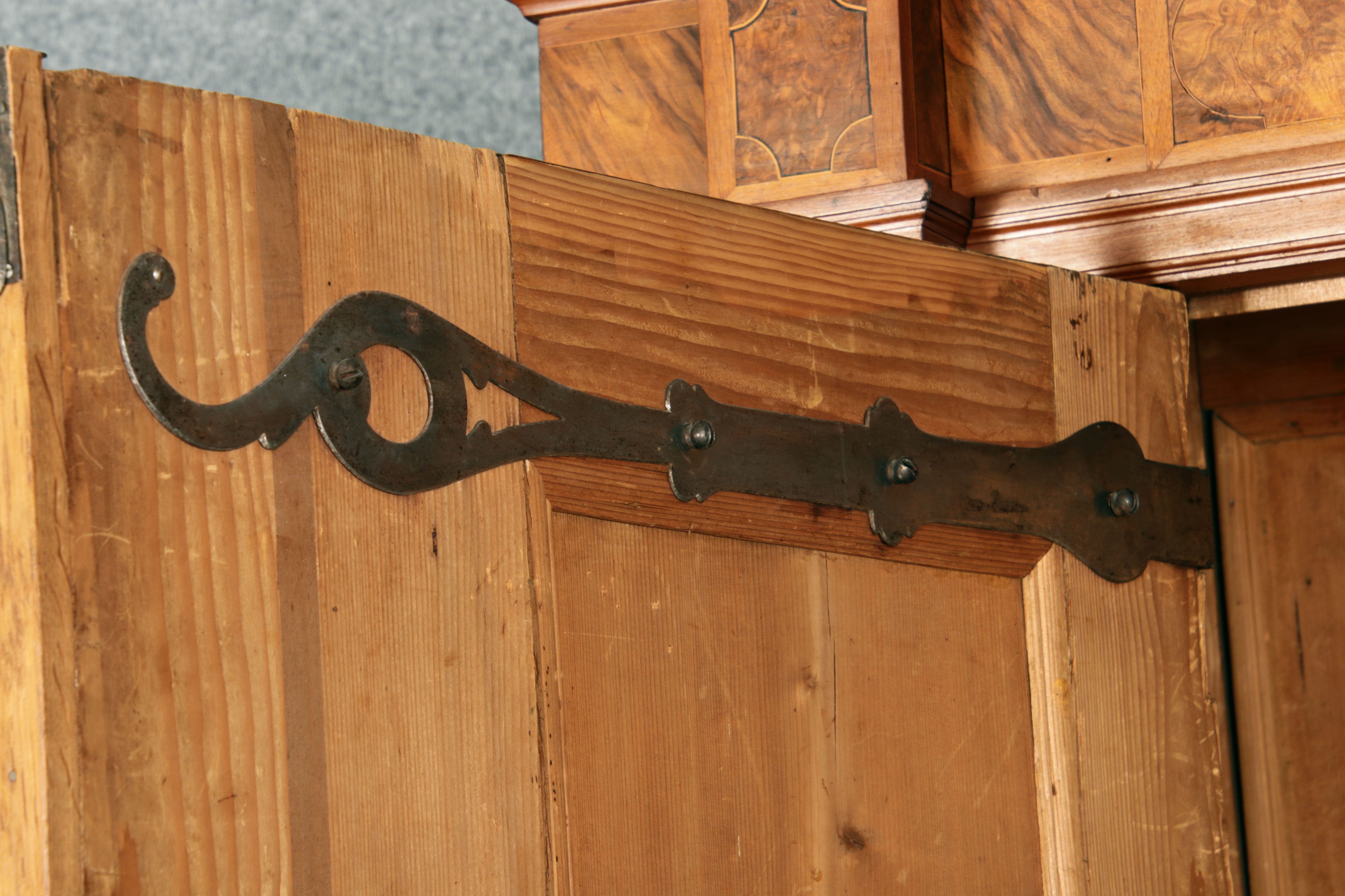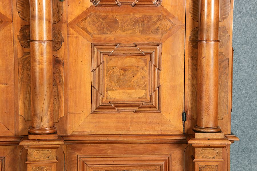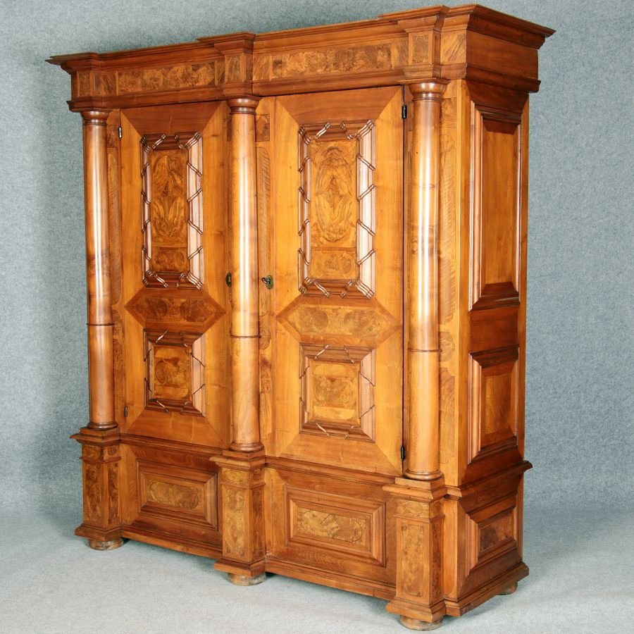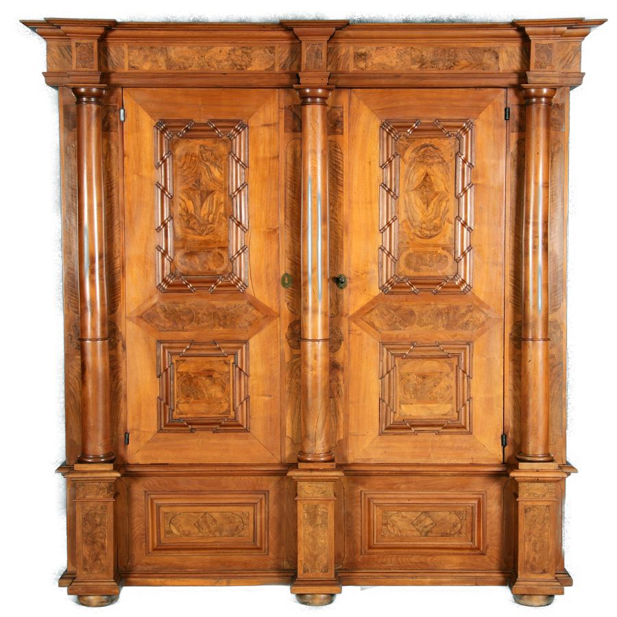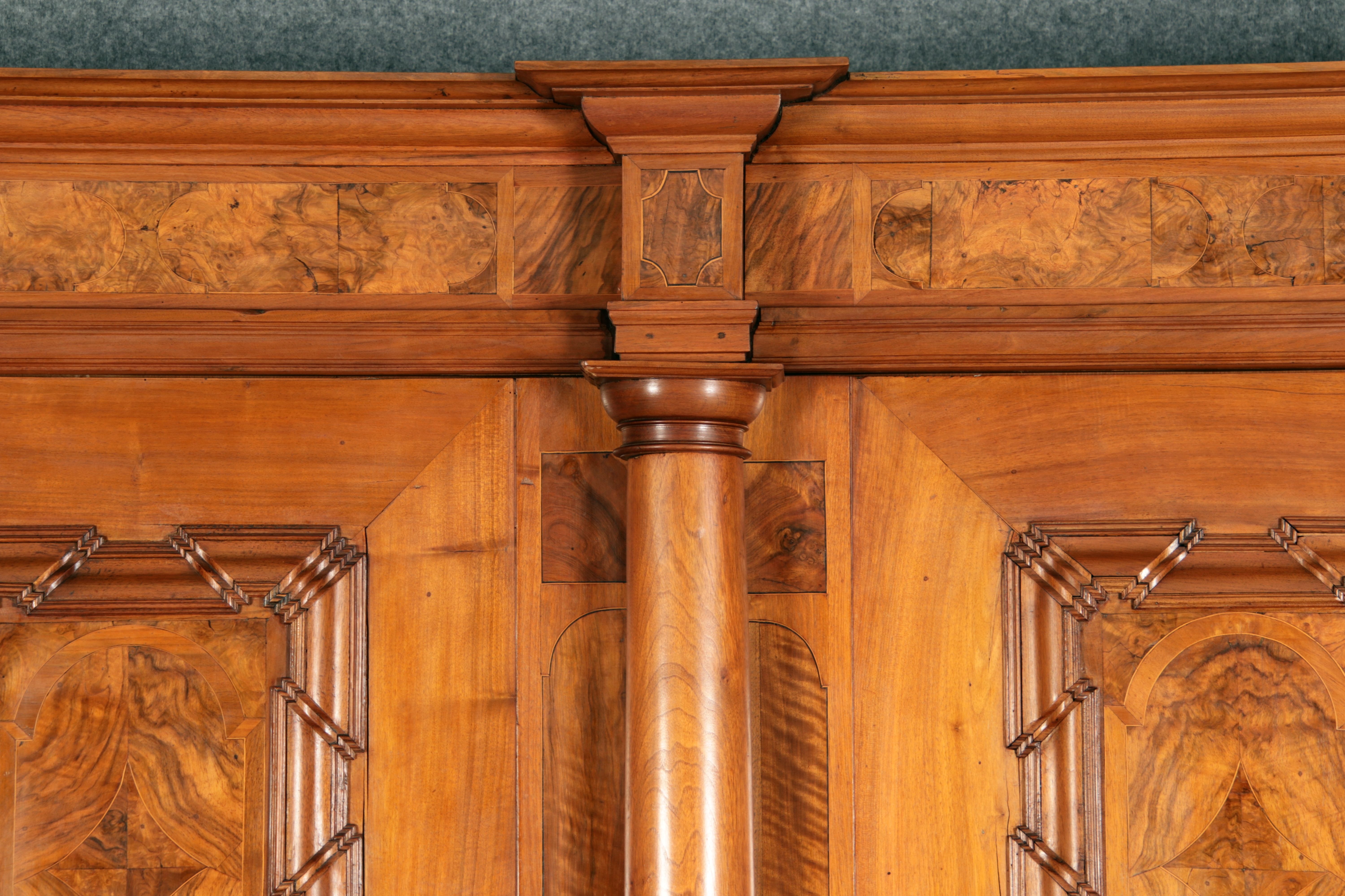 Großer Basler Barockschrank um 1720, Nussbaum furniert