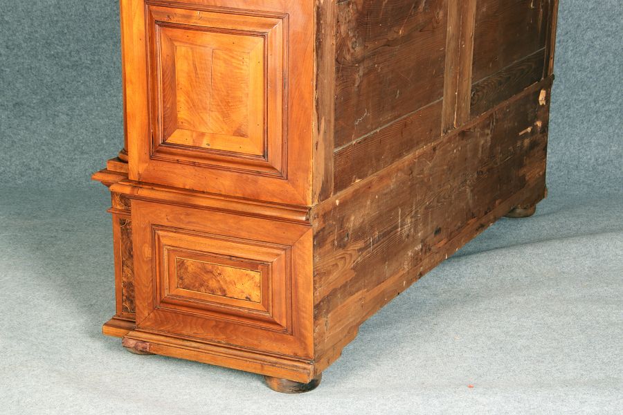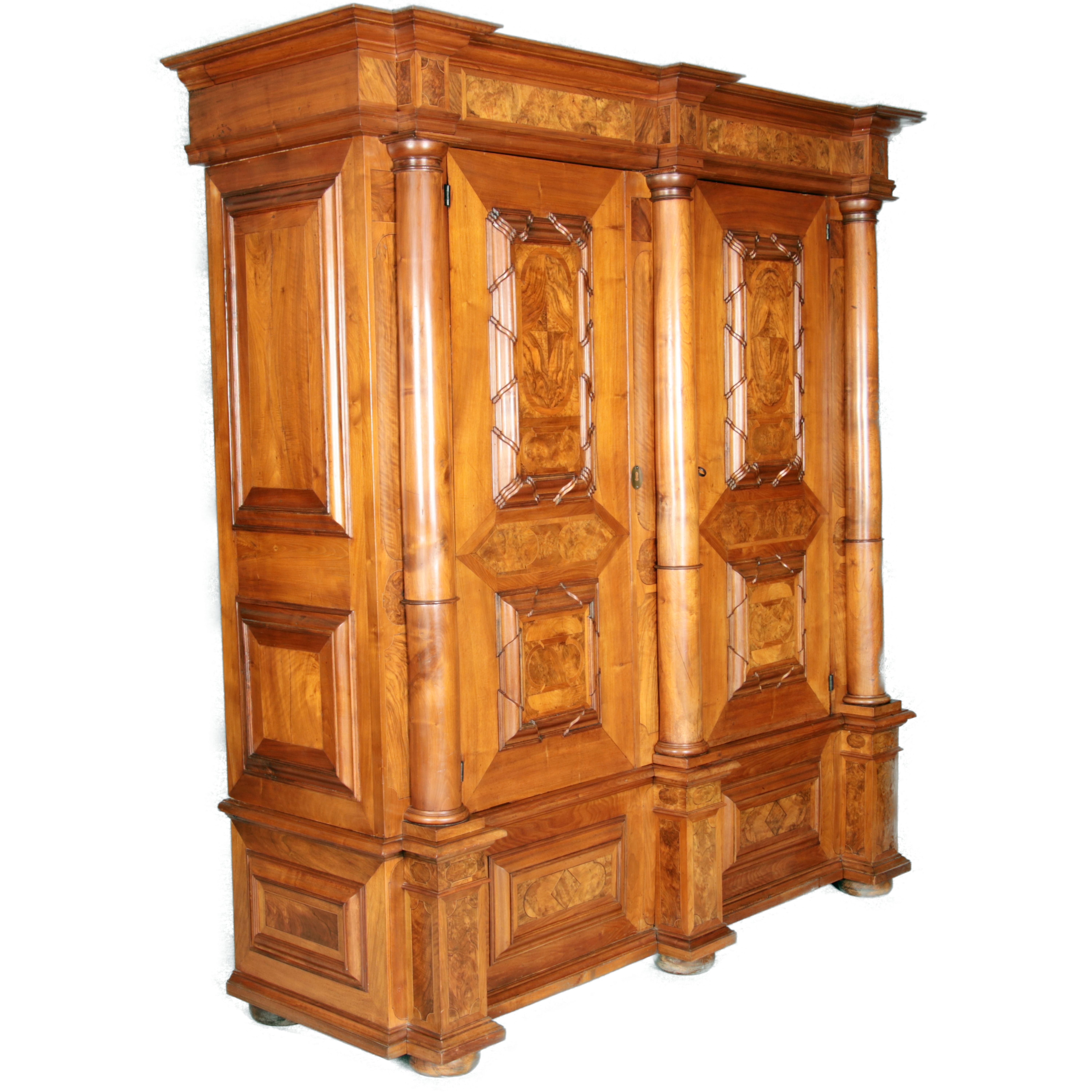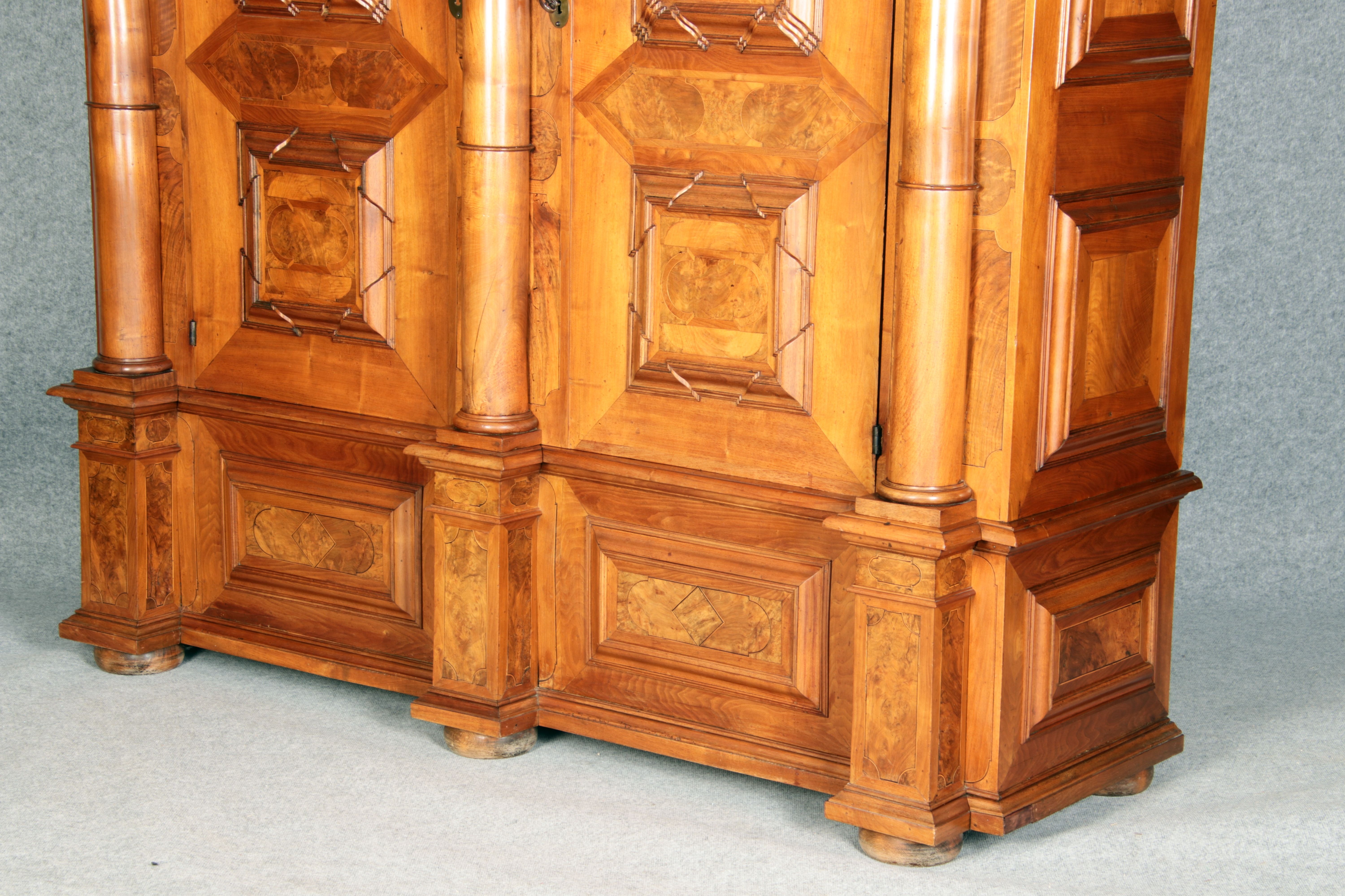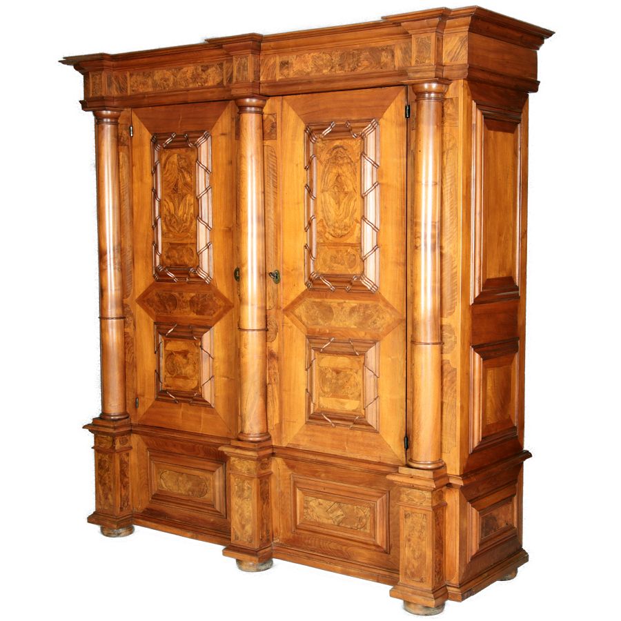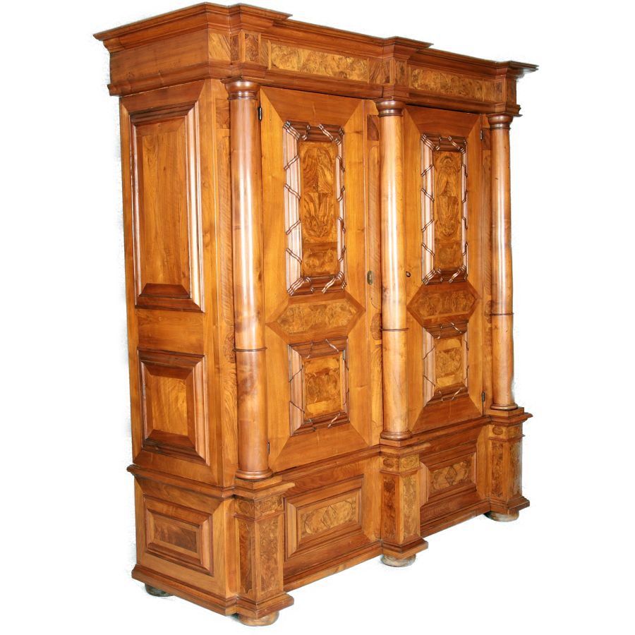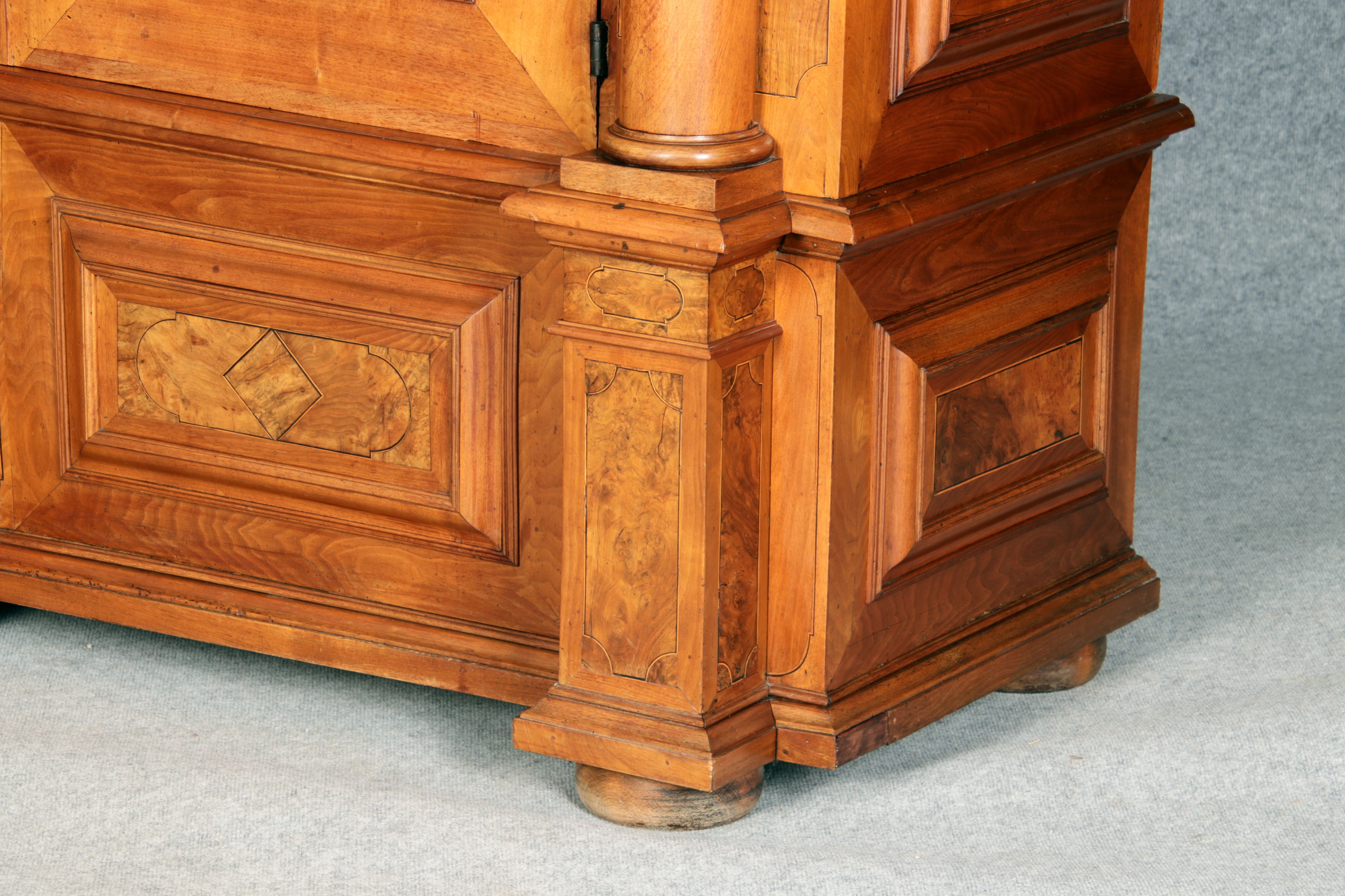 Großer Basler Barockschrank um 1720, Nussbaum furniert