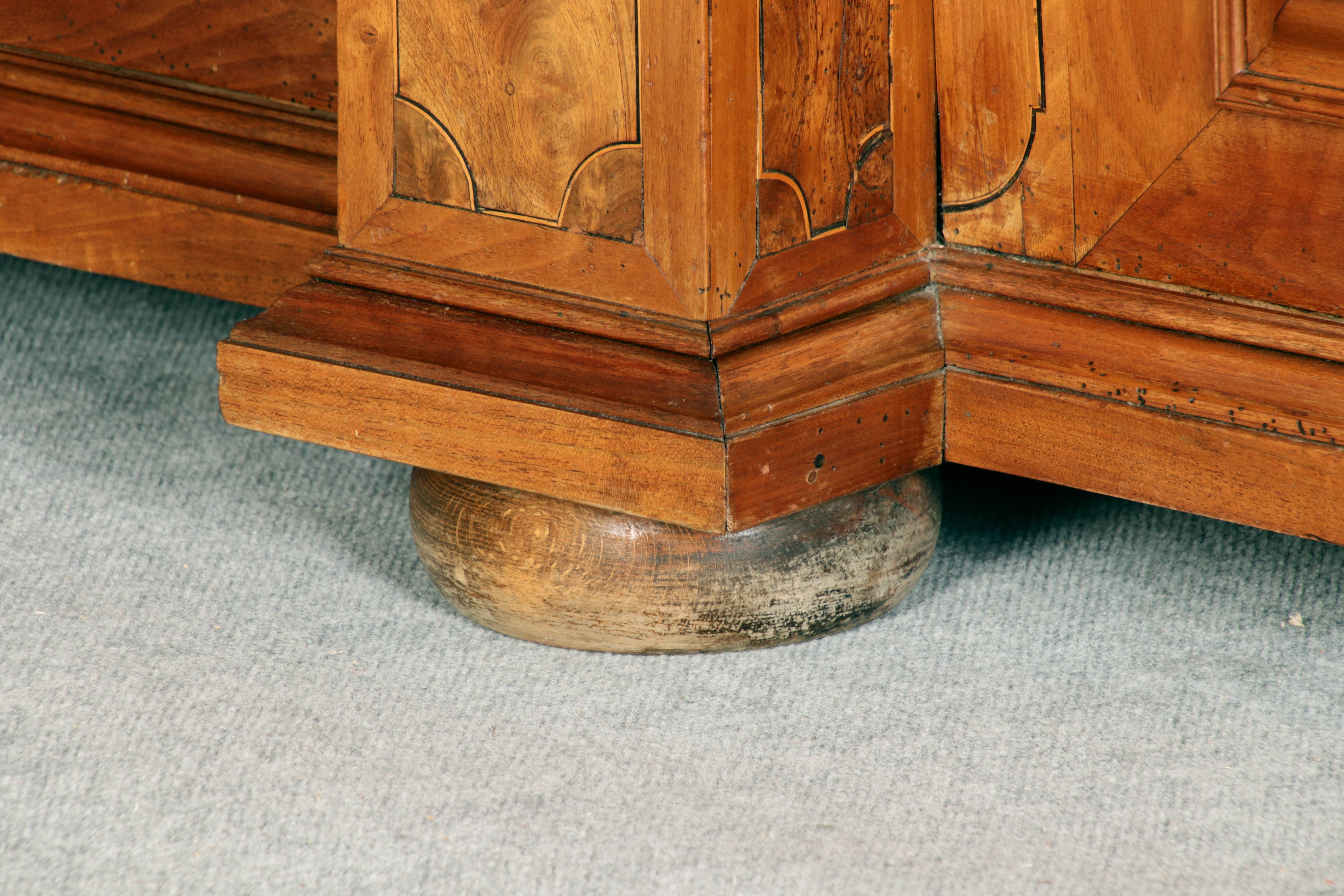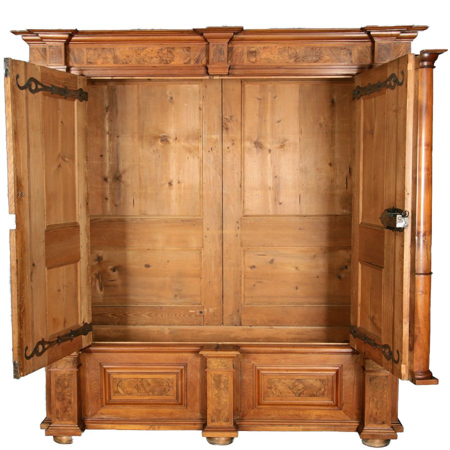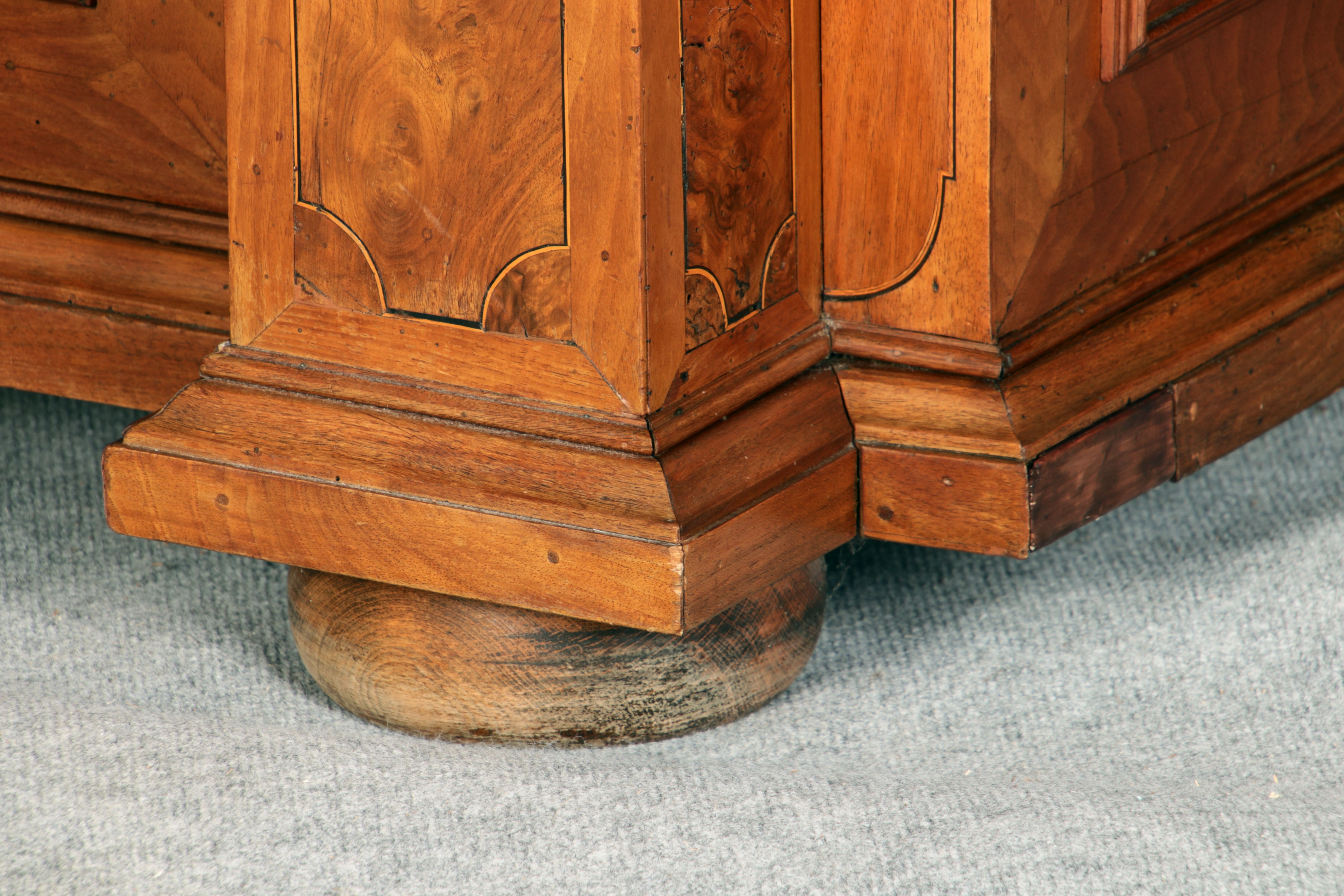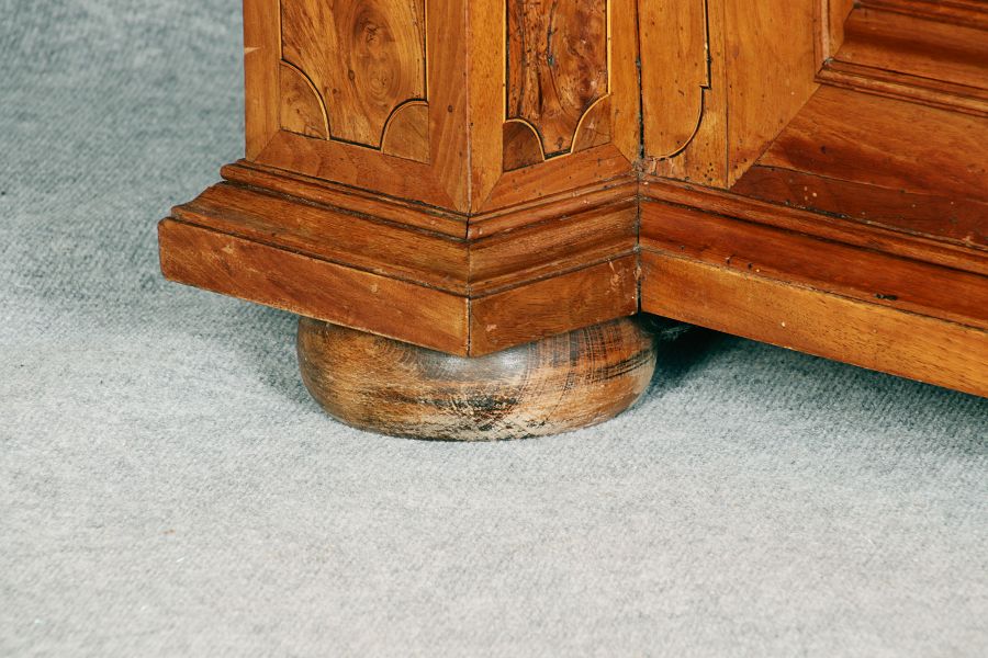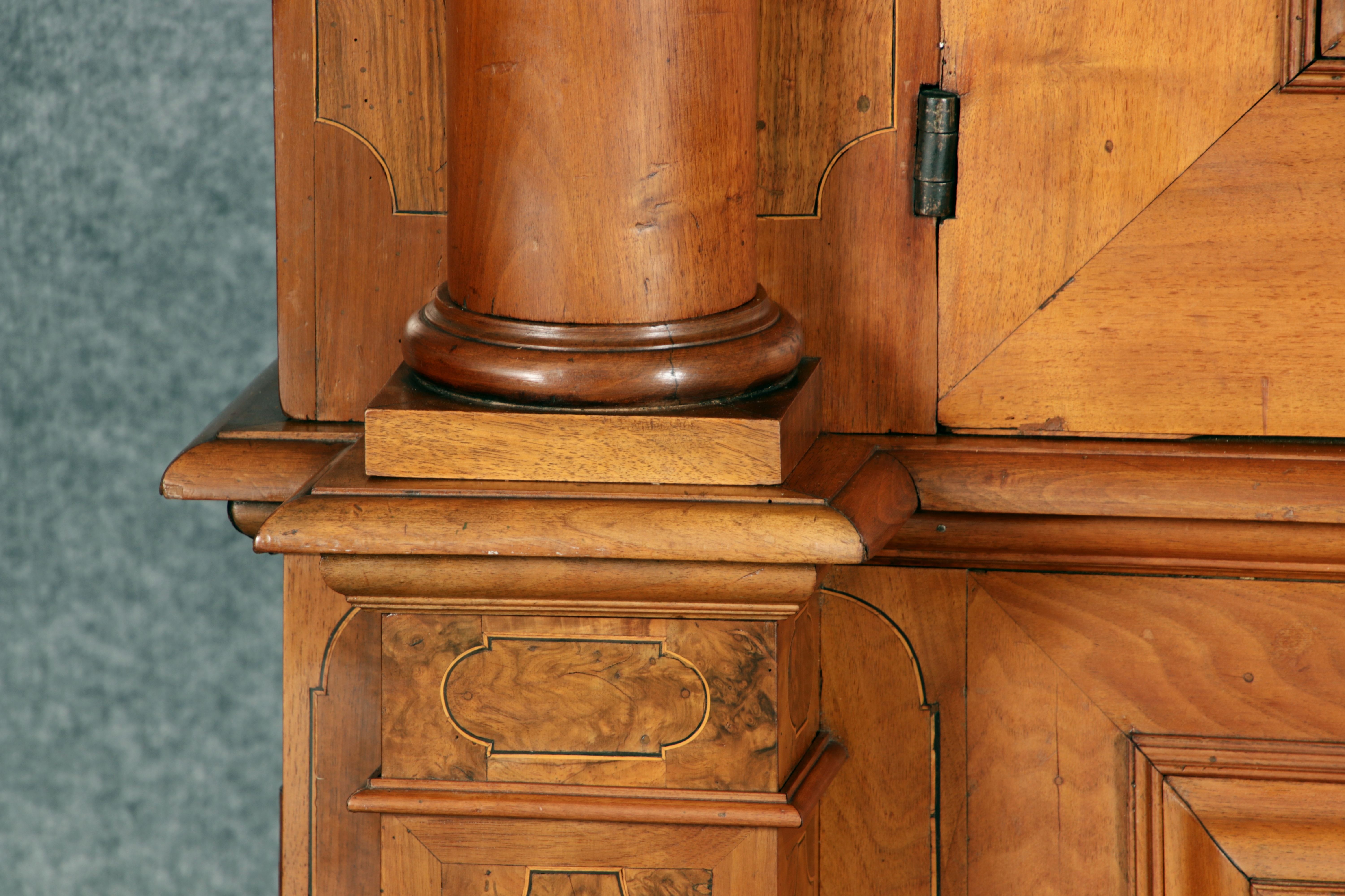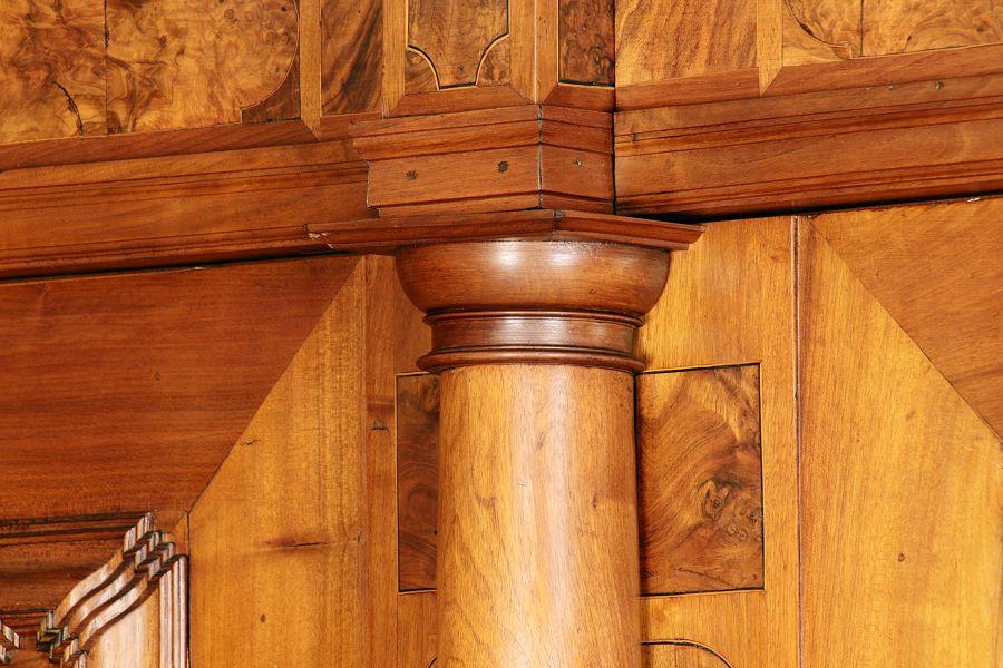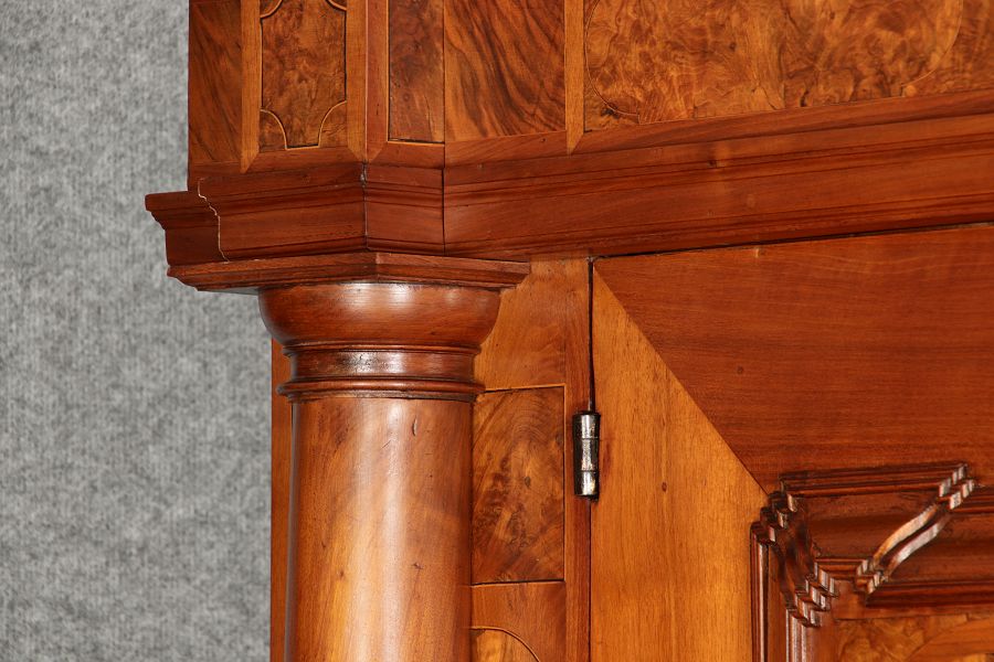 Großer Basler Barockschrank um 1720, Nussbaum furniert