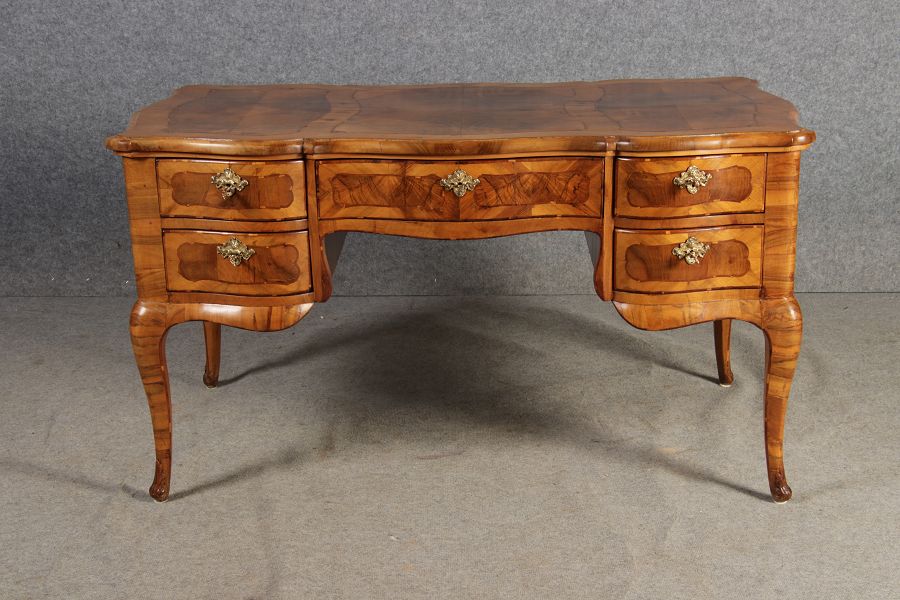 | Antiker Barock Schreibtisch 18 Jh. Nussbaum Intarsien | ||