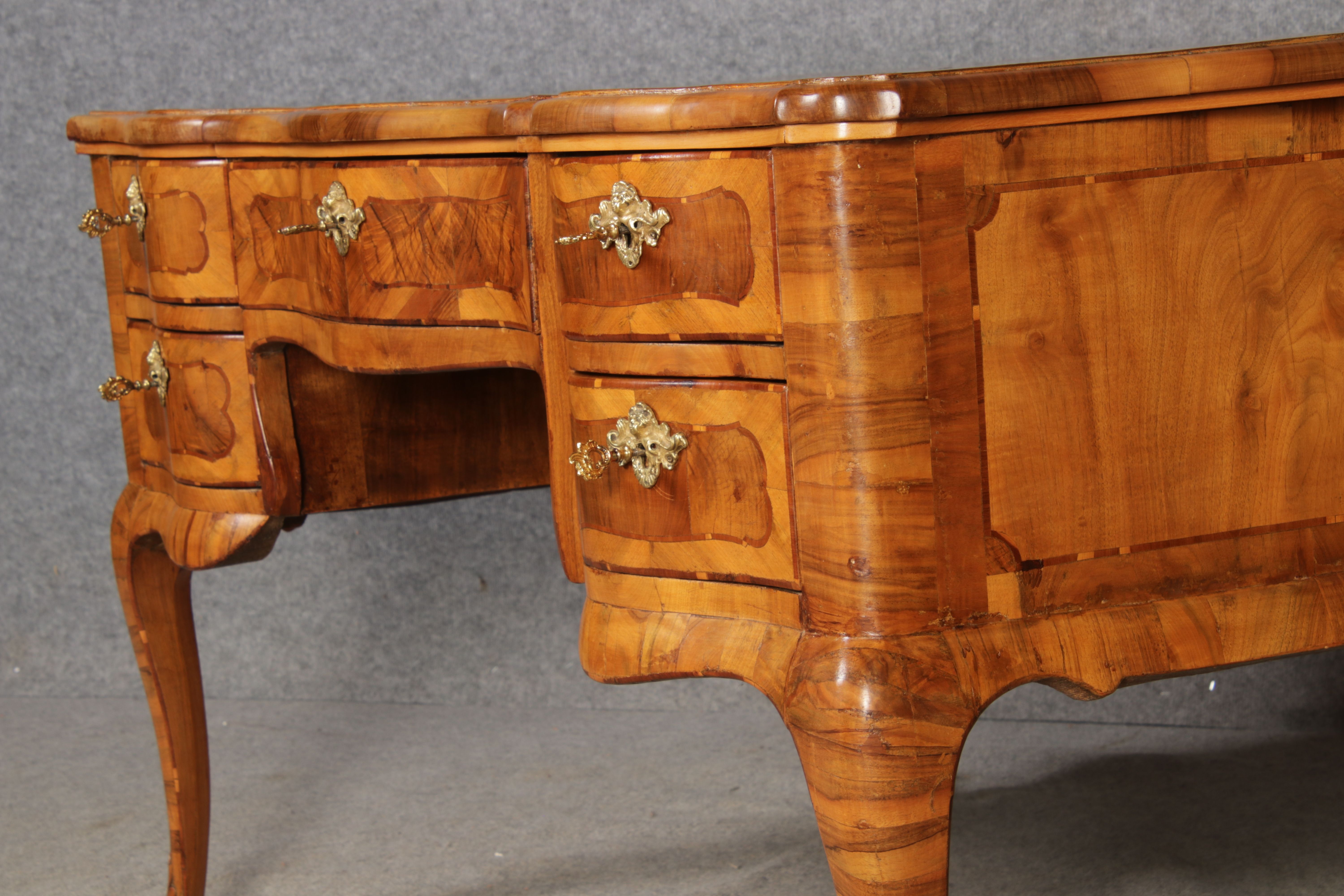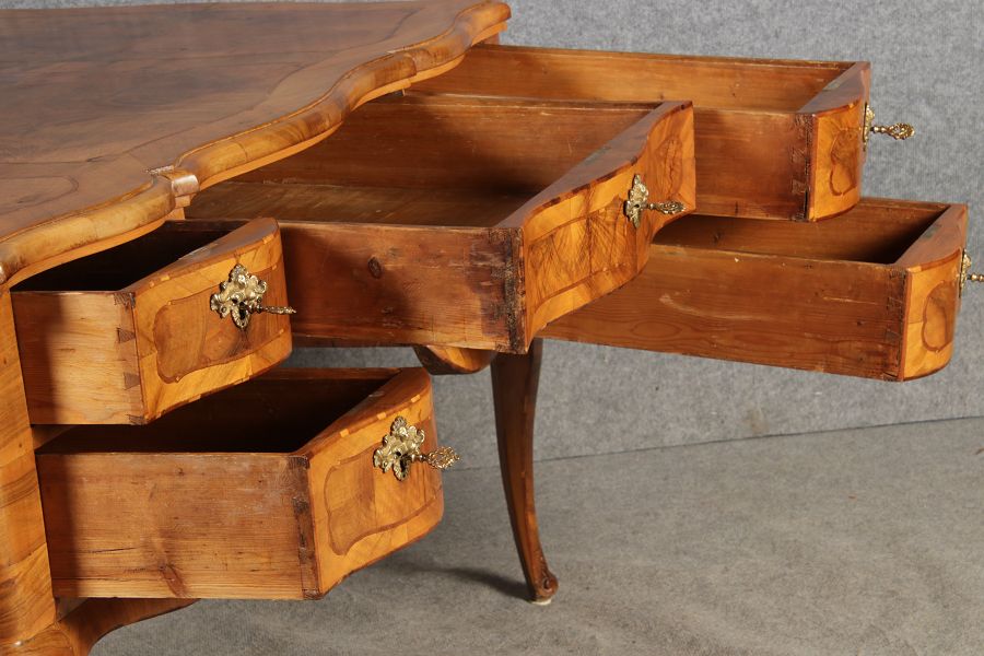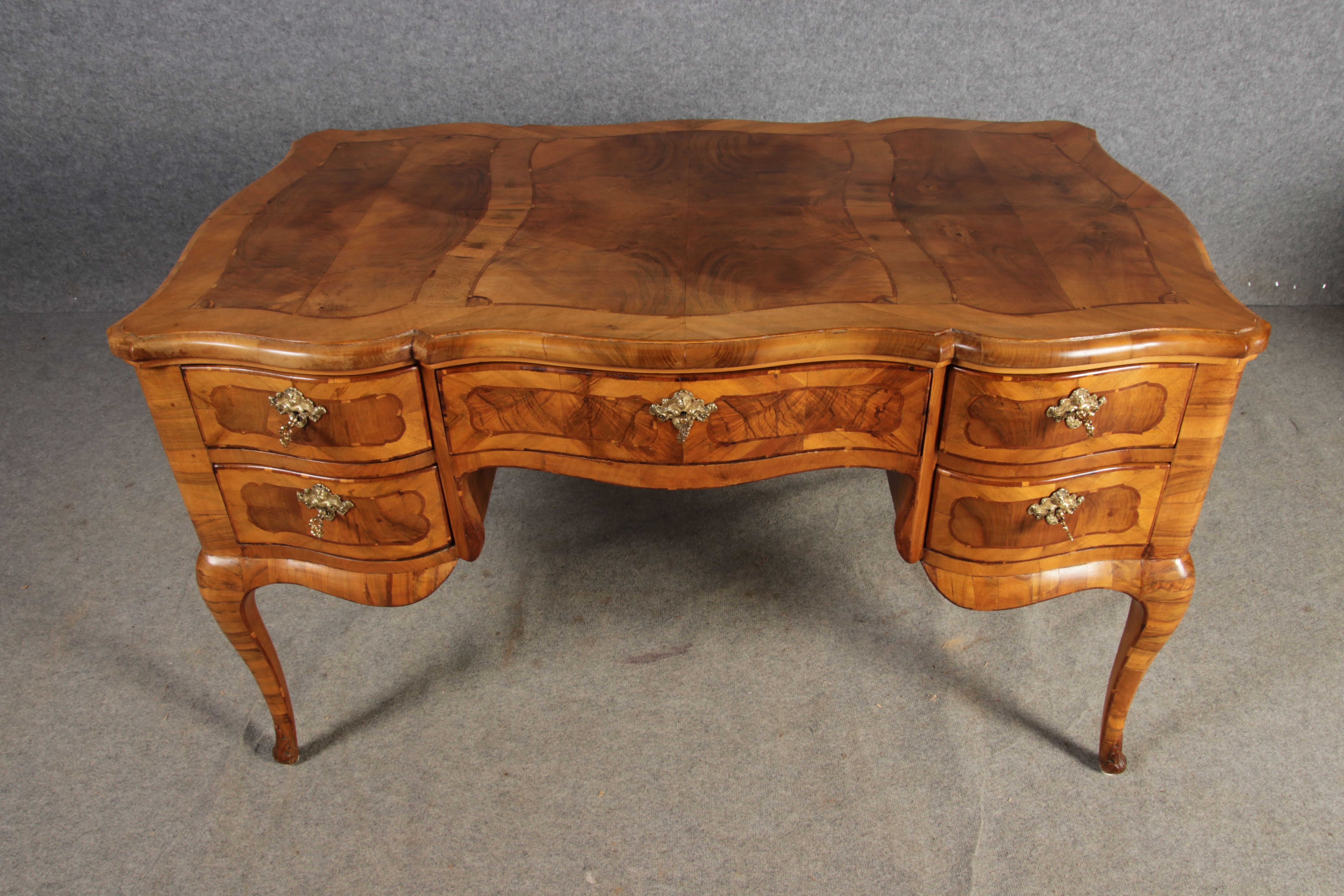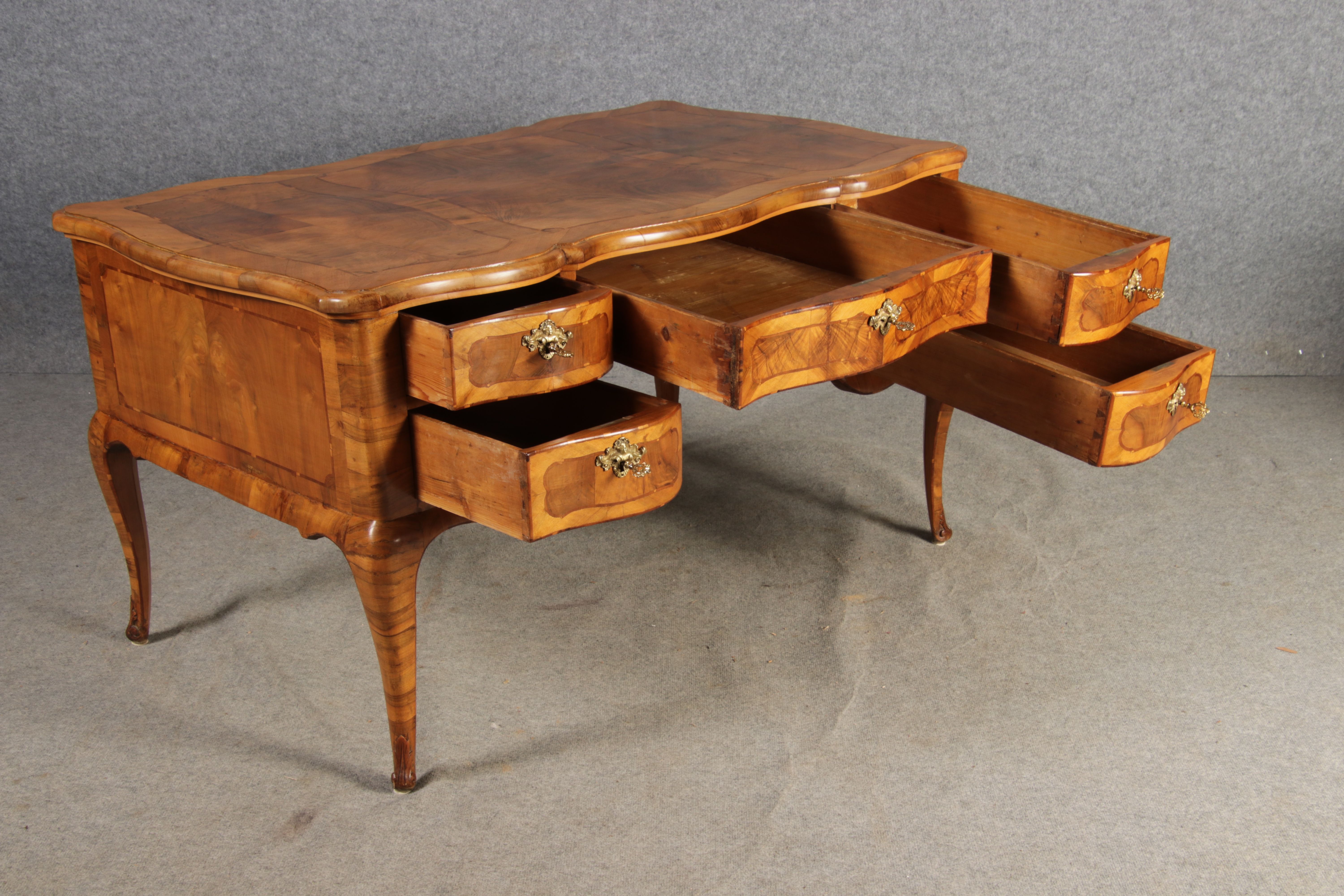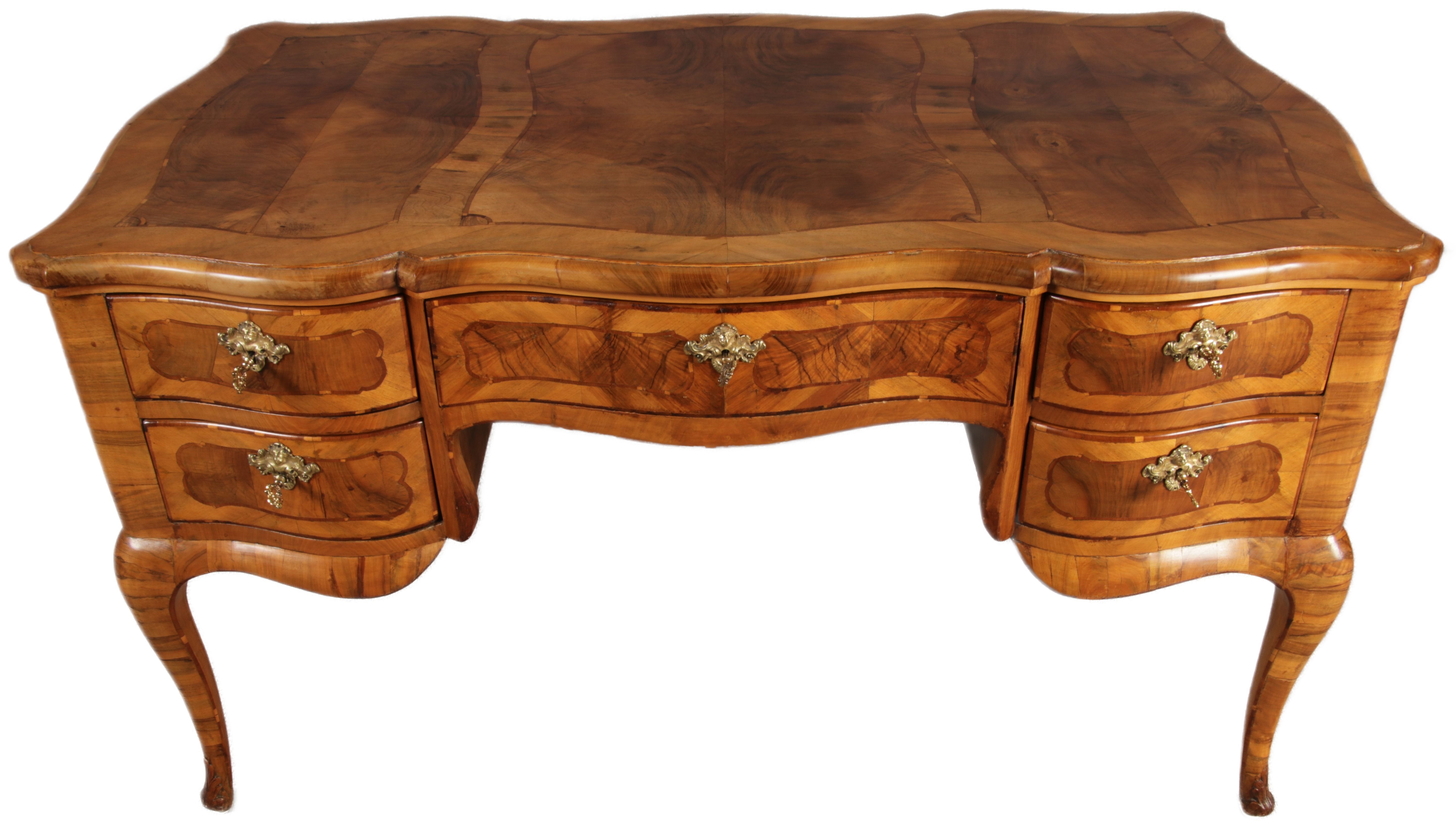 Antiker Barock Schreibtisch 18 Jh. Nussbaum Intarsien |