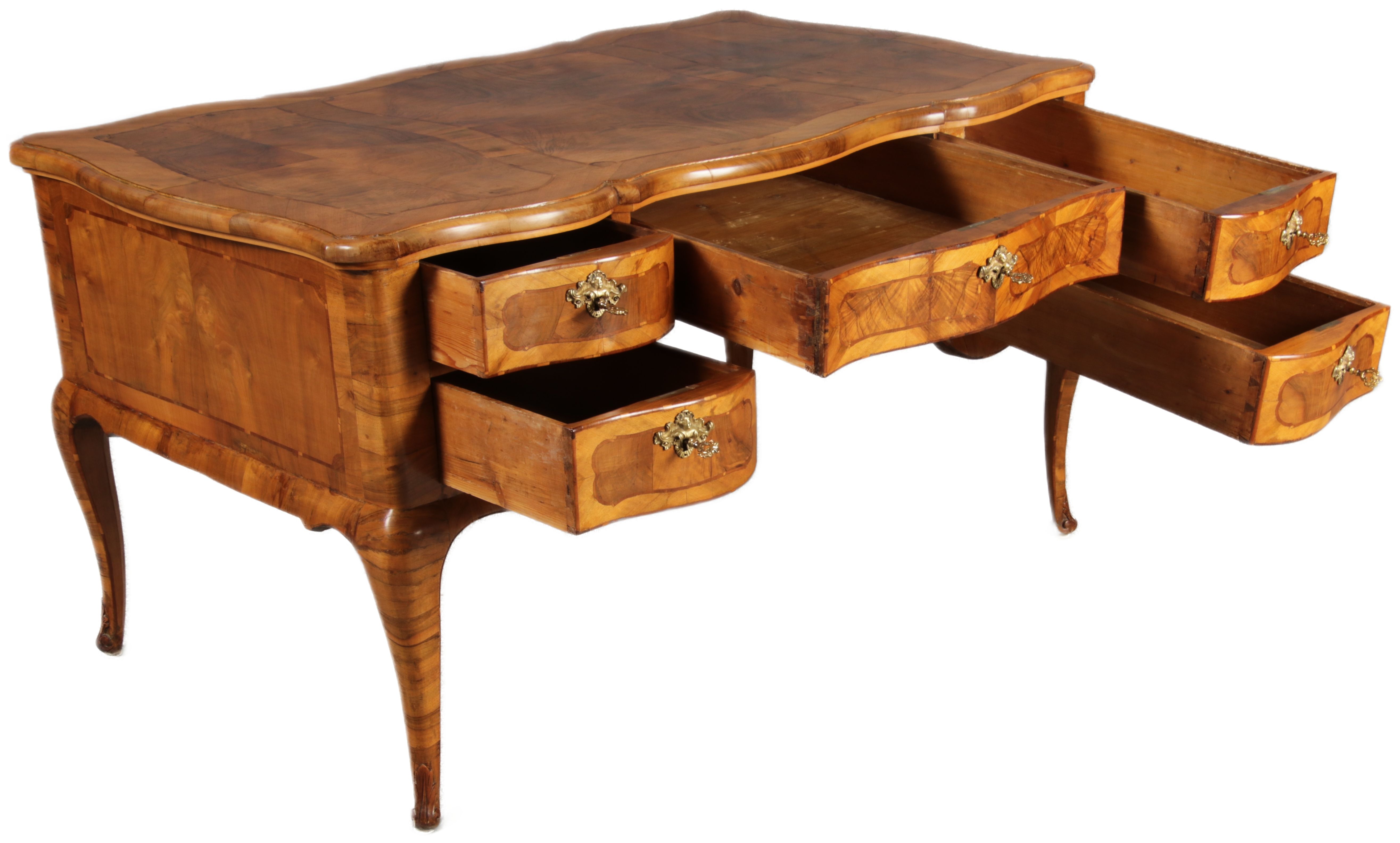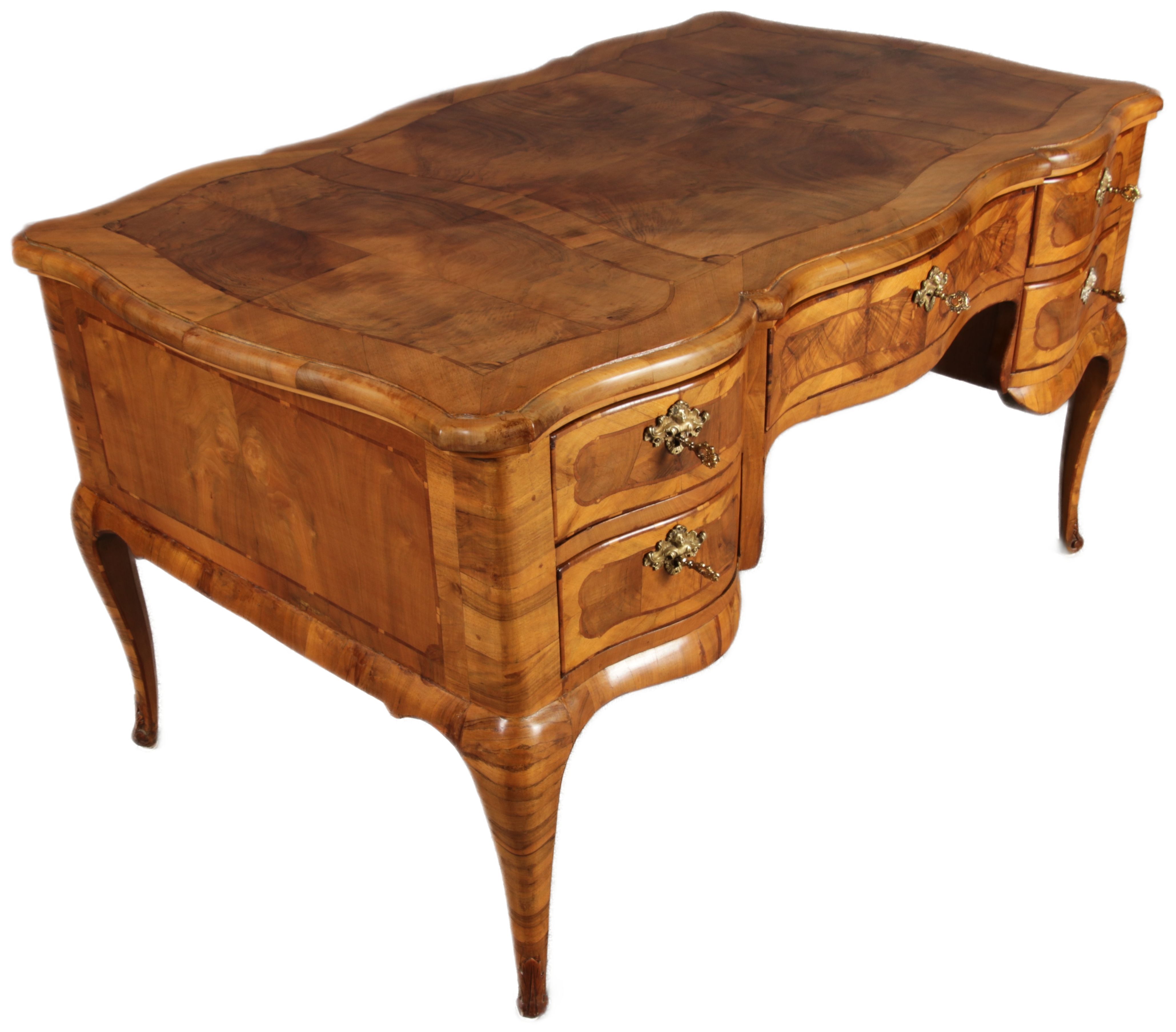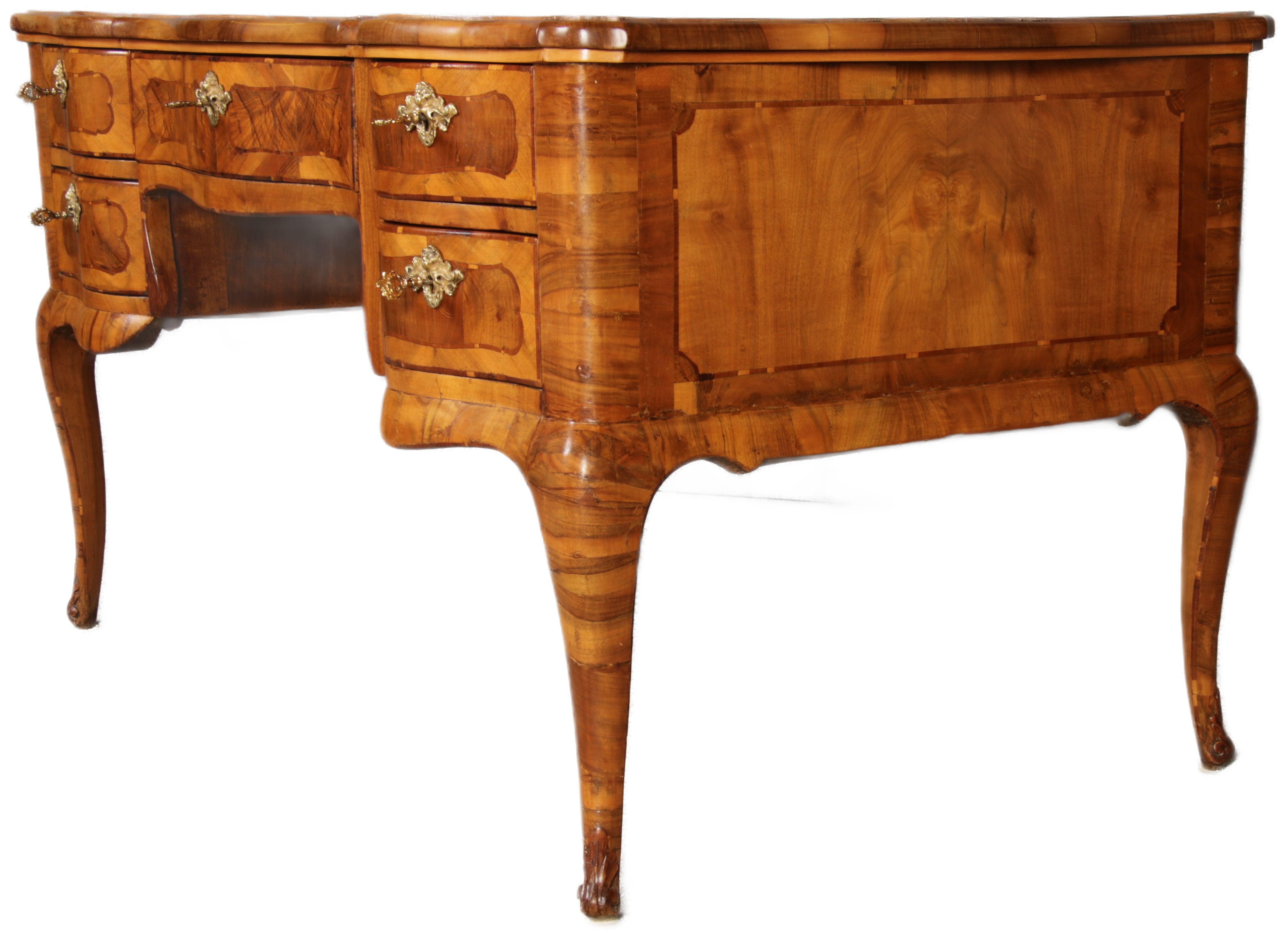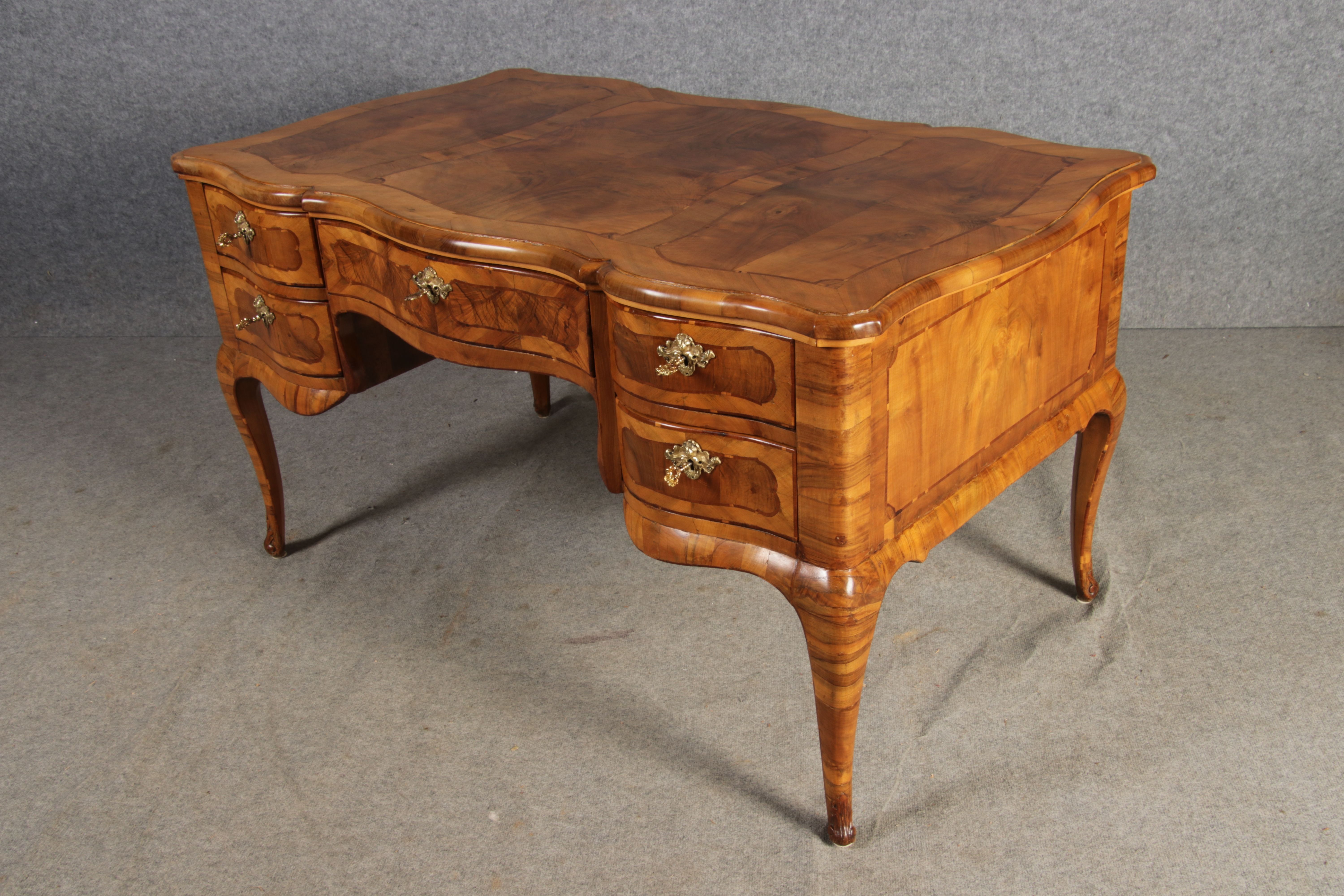 Antiker Barock Schreibtisch 18 Jh. Nussbaum Intarsien |