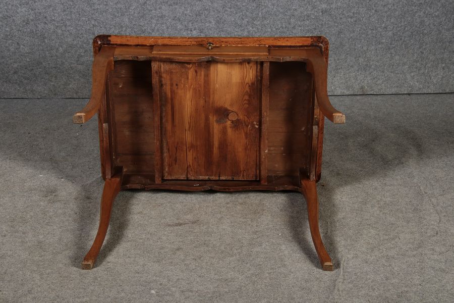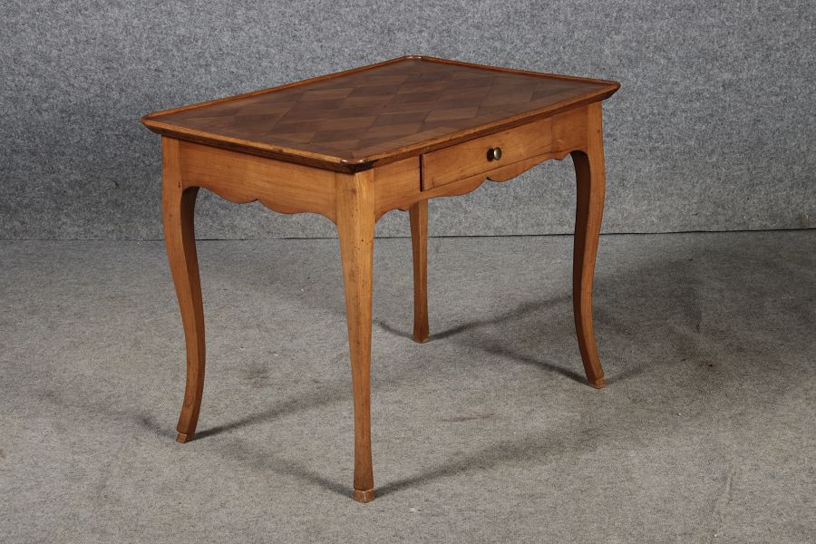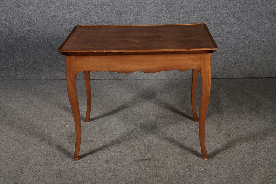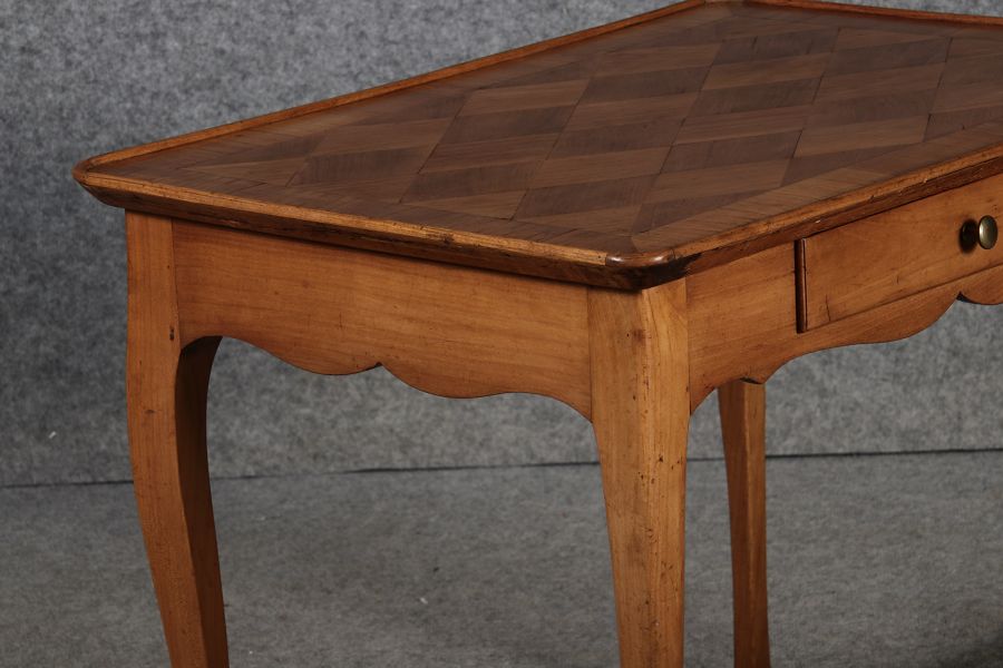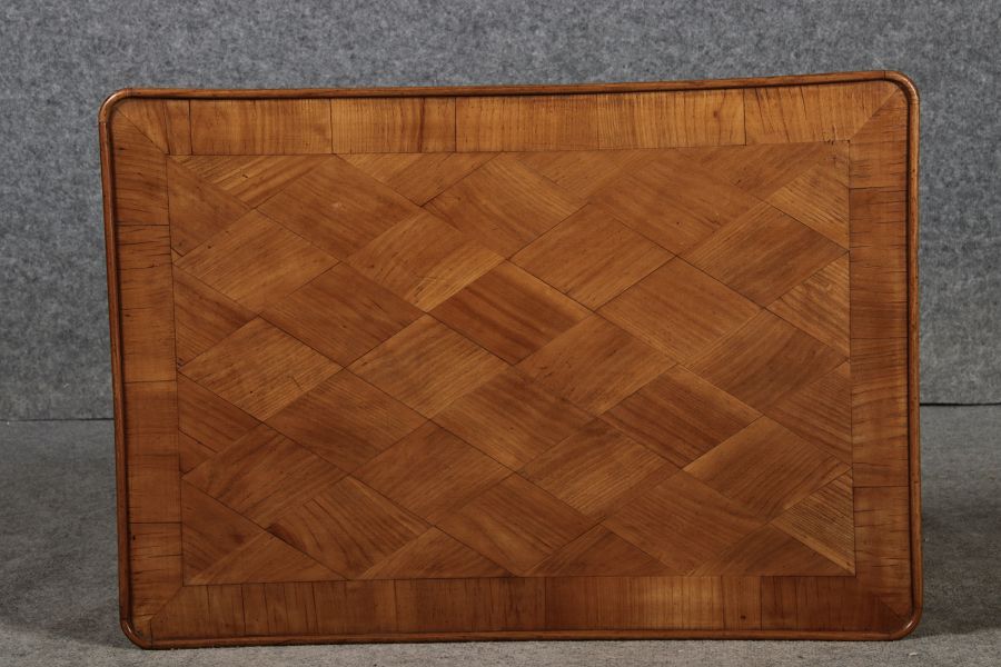 | Antiker Kleiner Damenschreibtisch Beistelltisch um 1760 Nussbaum Rauten Makerterie | ||