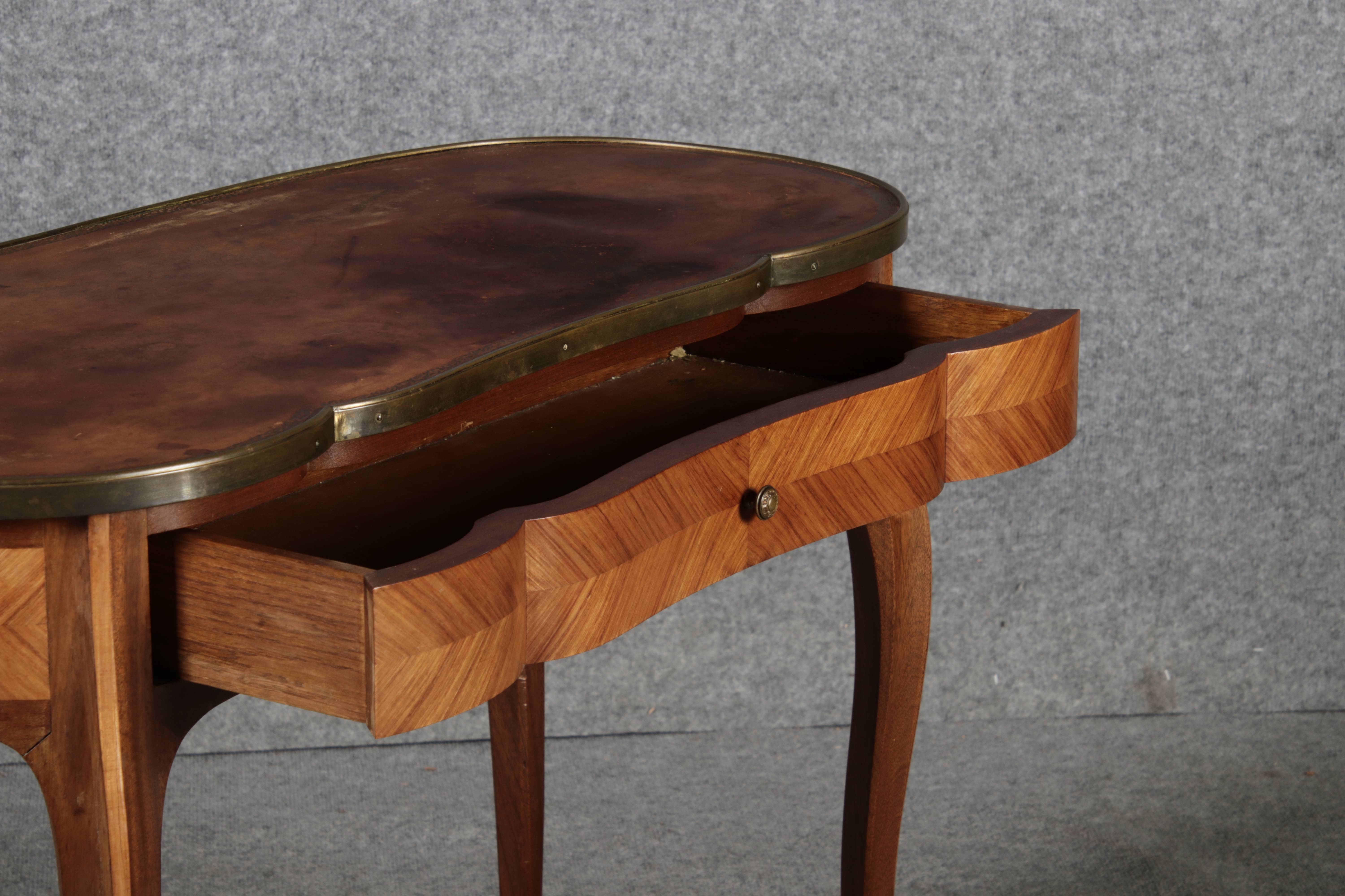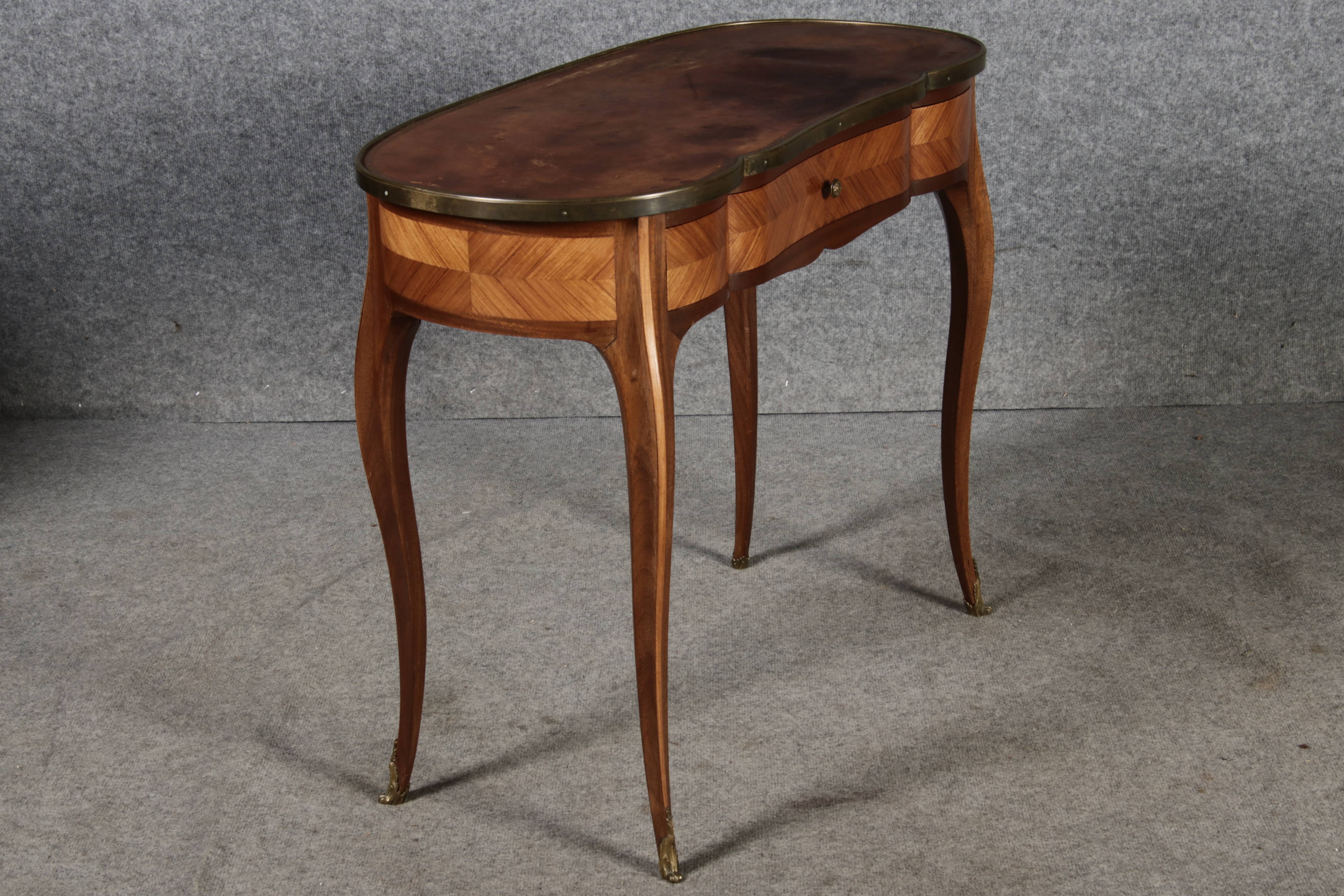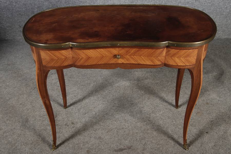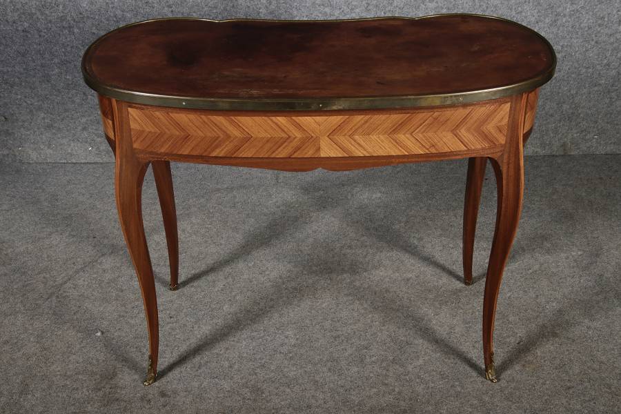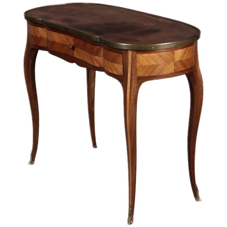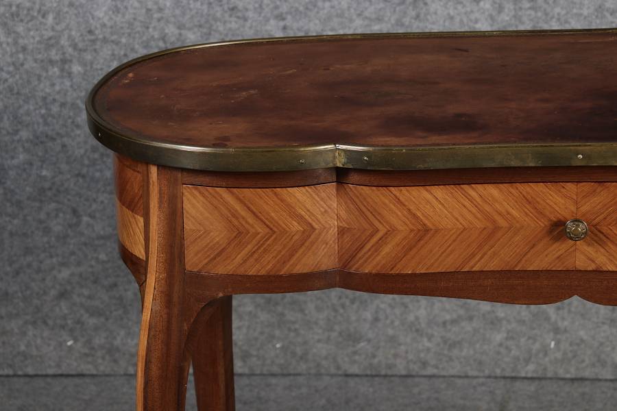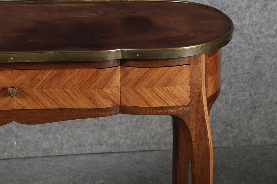 Antiker Kleiner Damenschreibtisch Nussbaum Messing Lederplatte um 1920 |