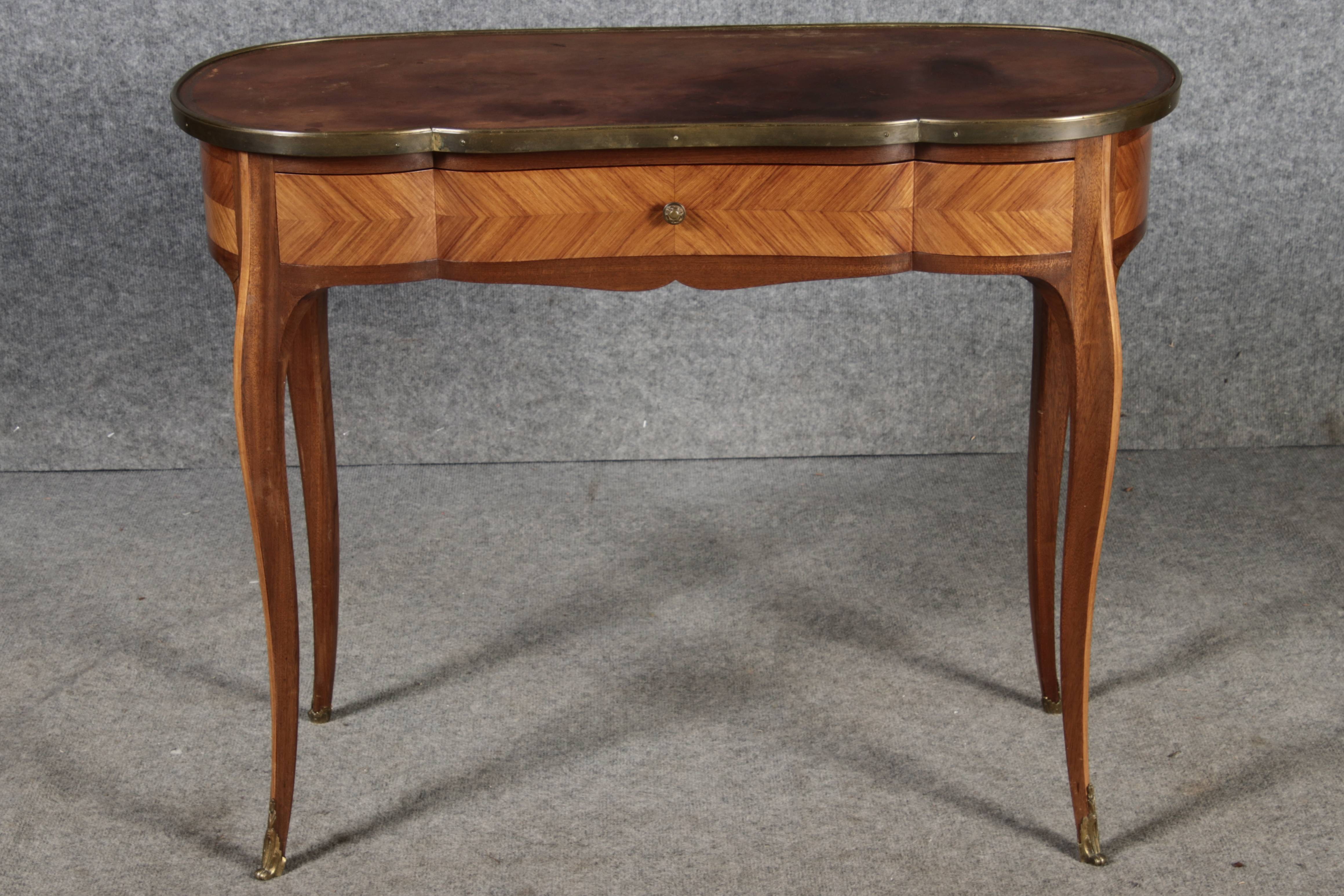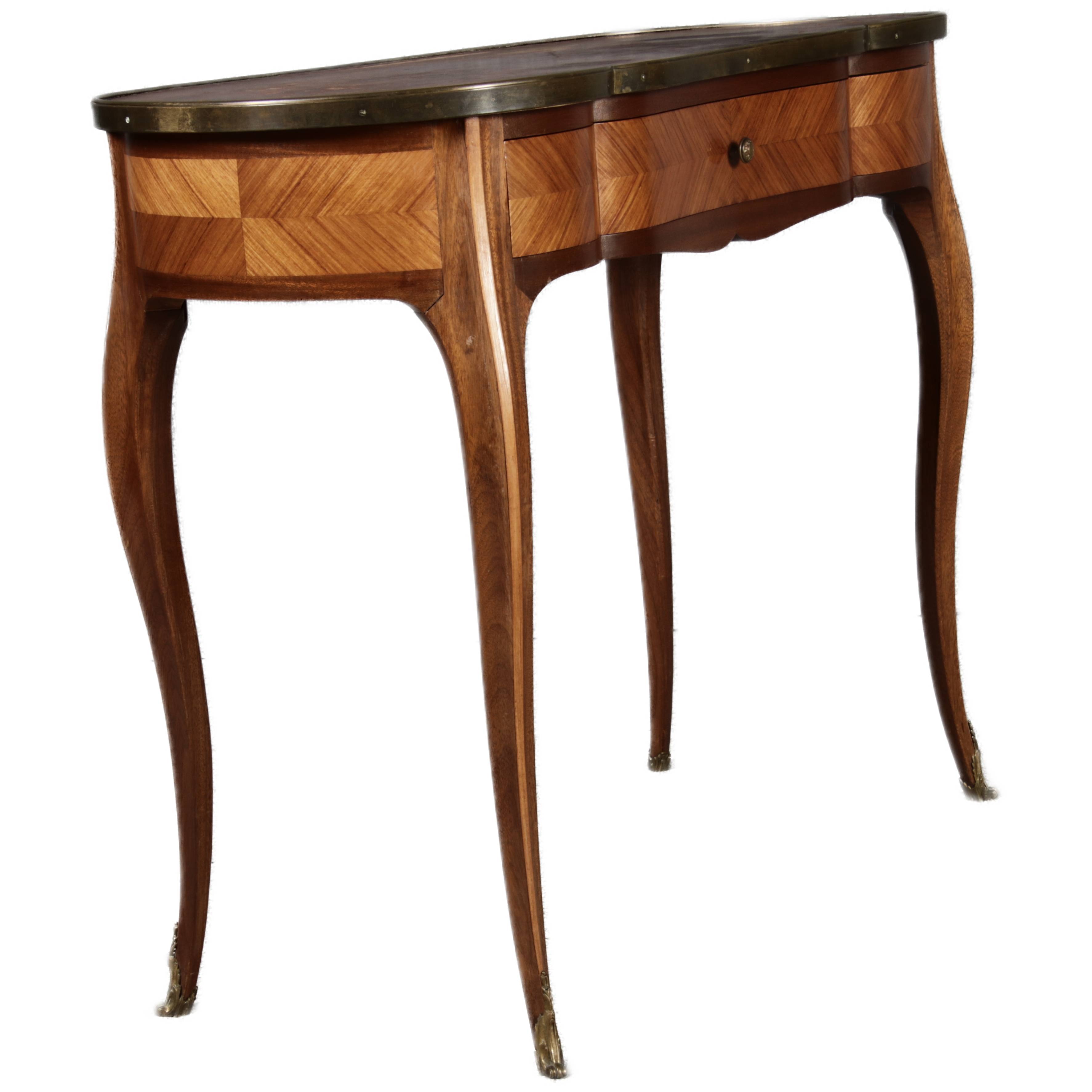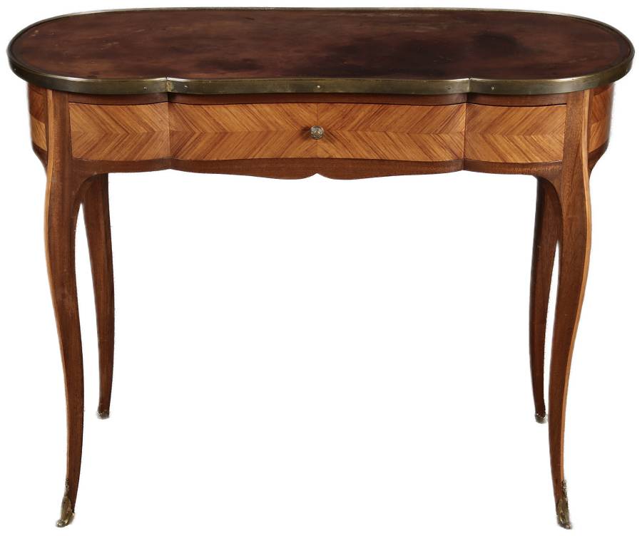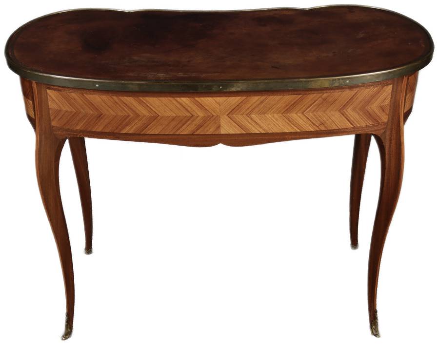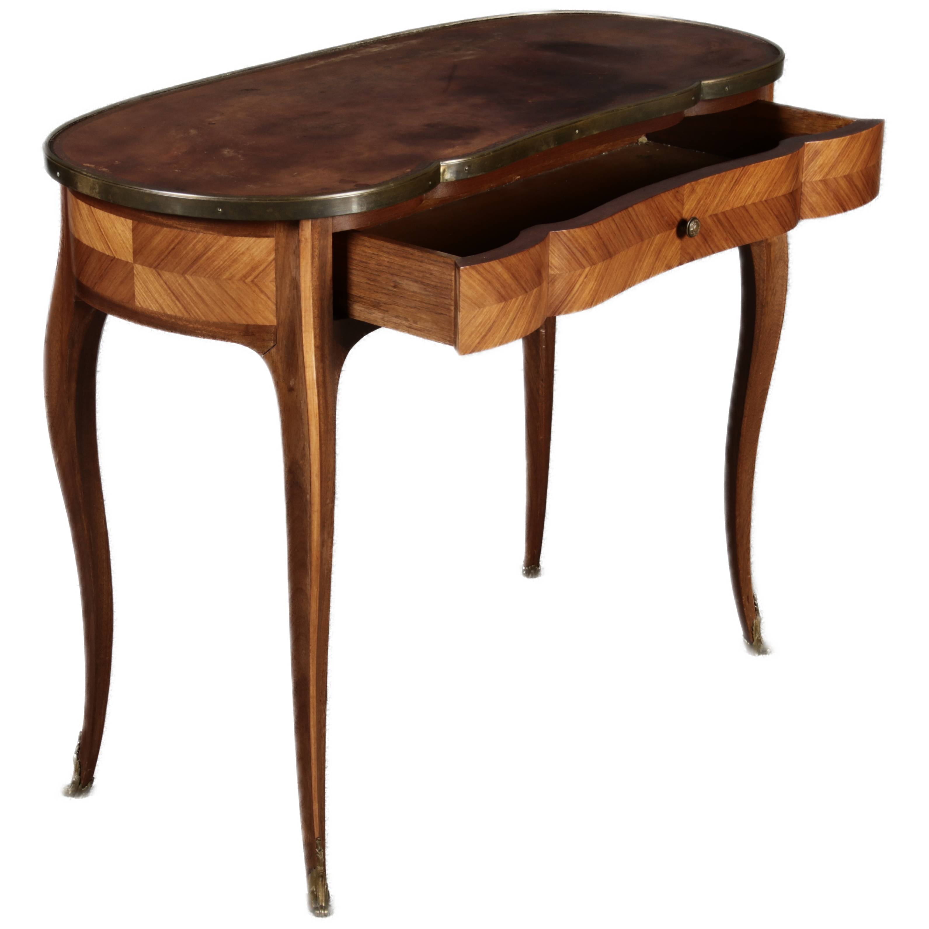 Antiker Kleiner Damenschreibtisch Nussbaum Messing Lederplatte um 1920 |