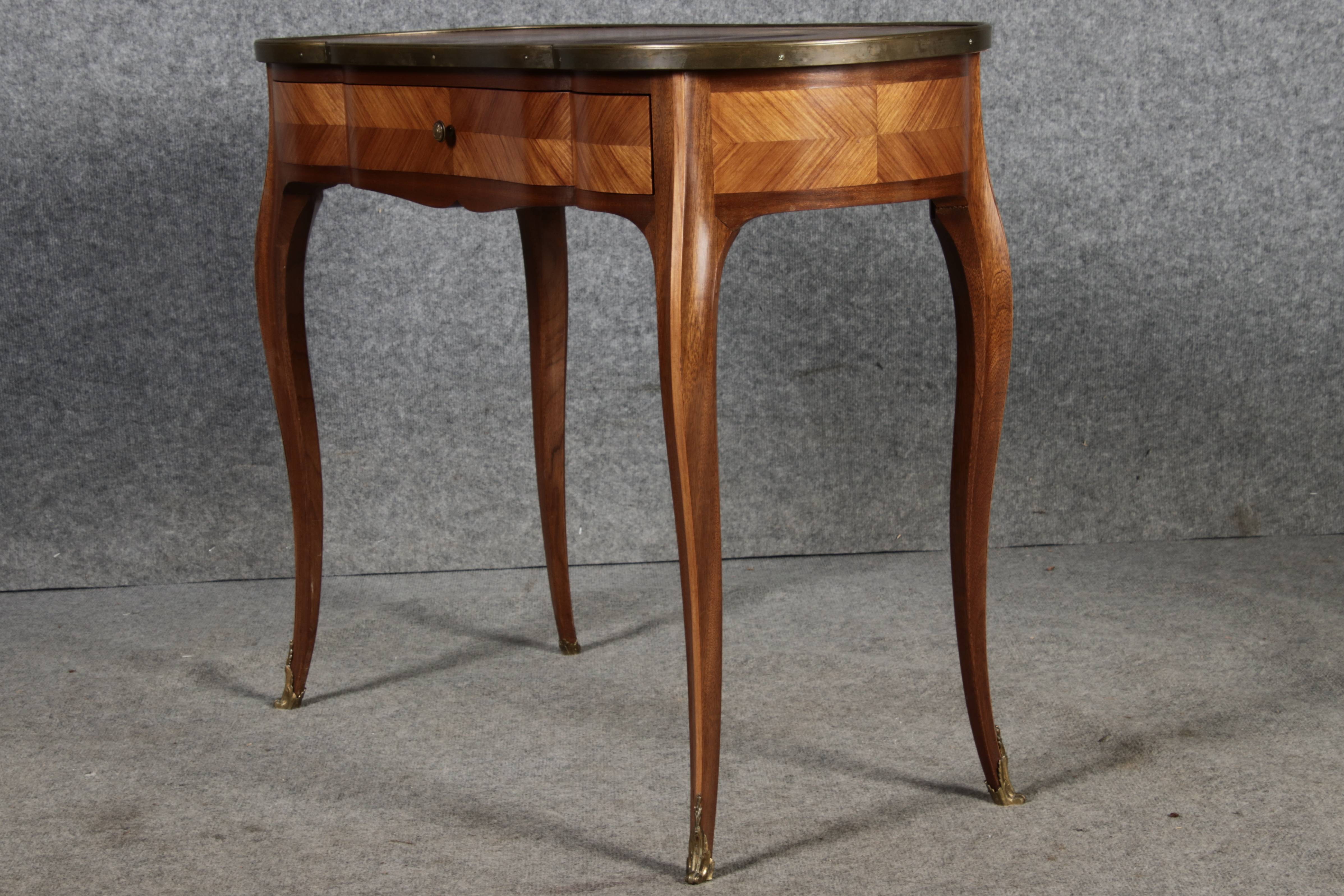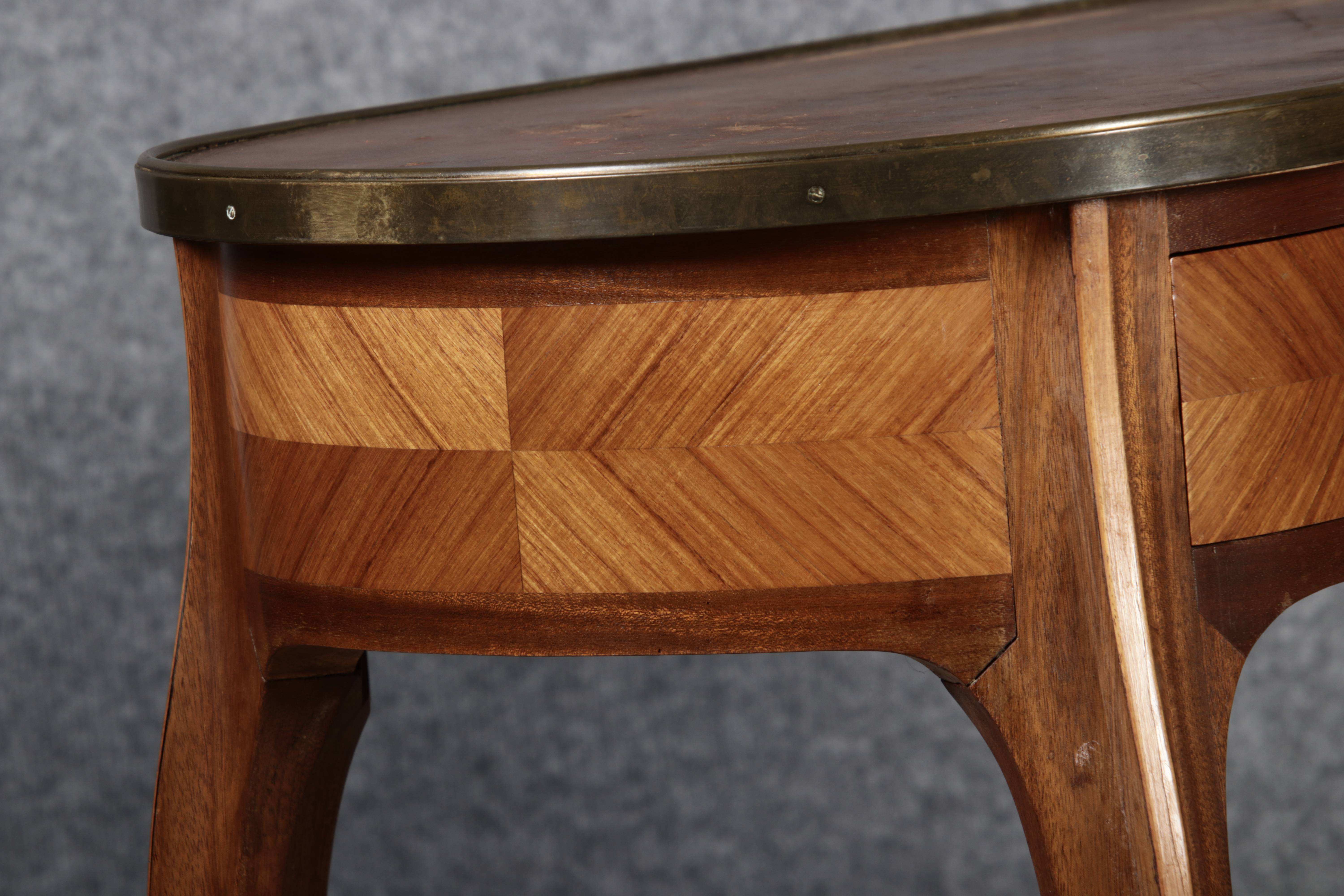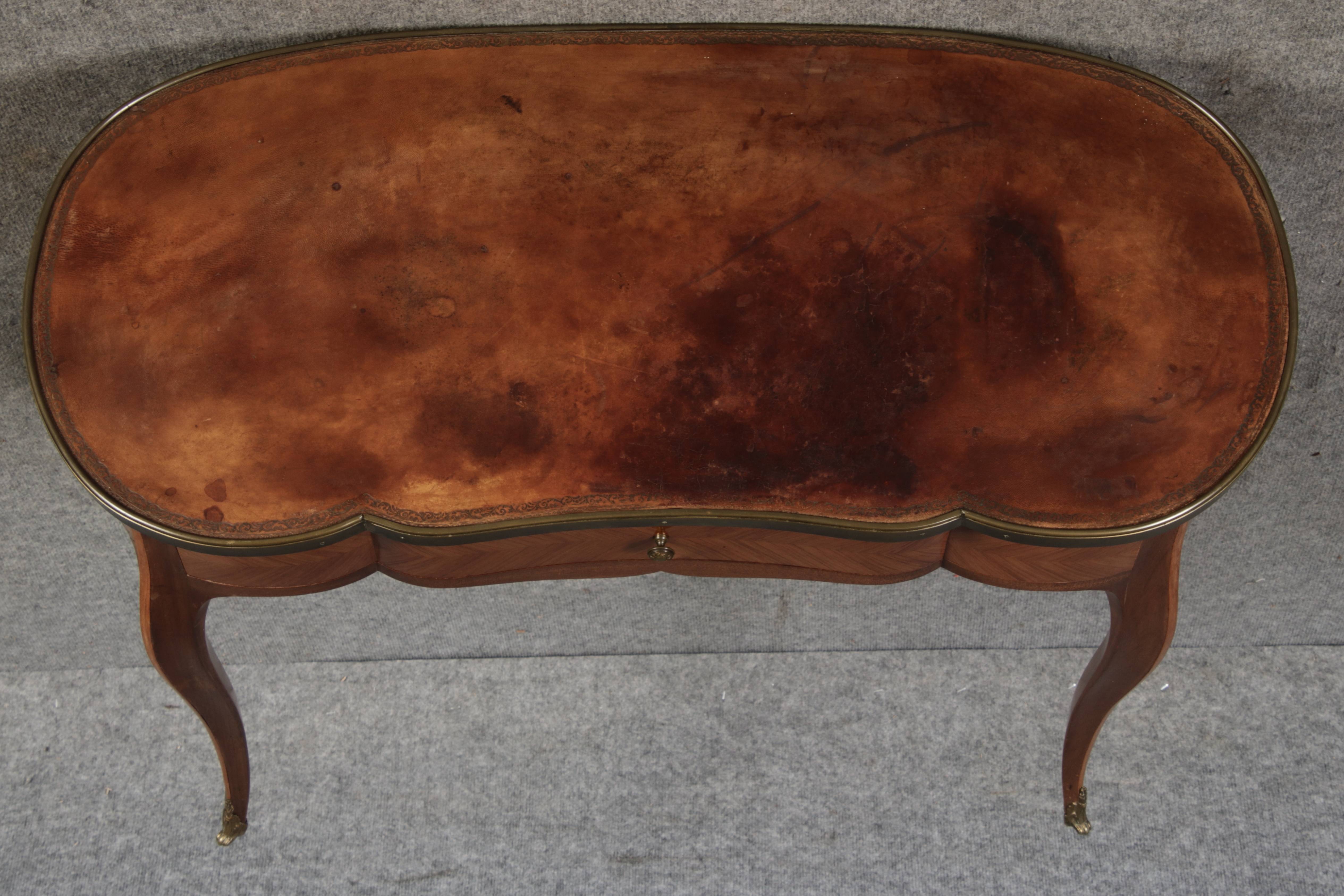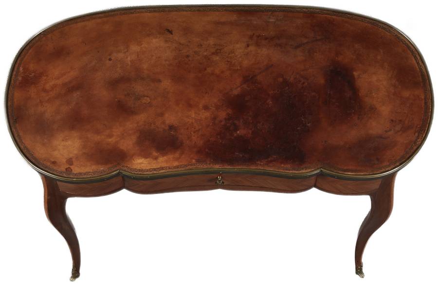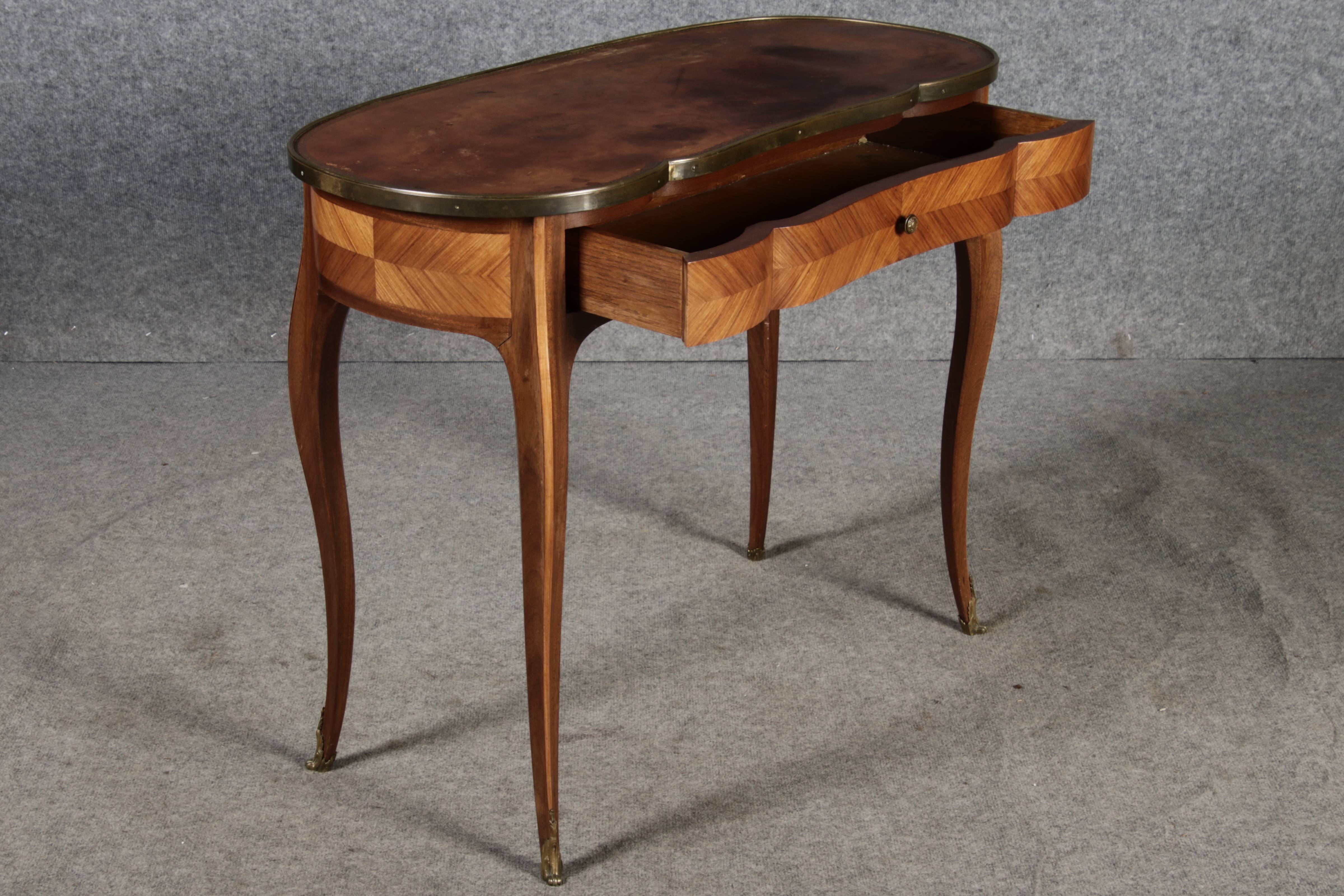 Antiker Kleiner Damenschreibtisch Nussbaum Messing Lederplatte um 1920 |