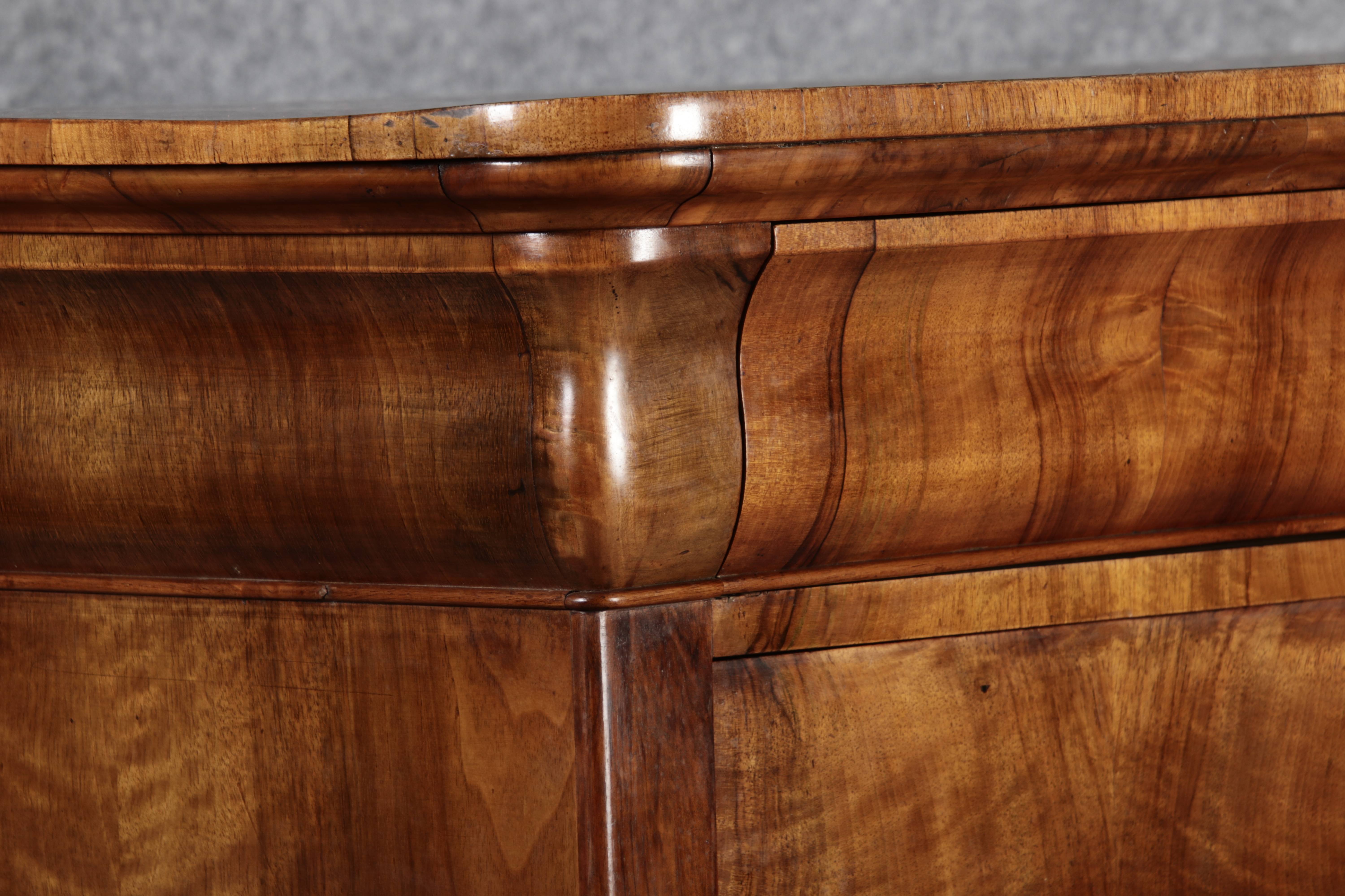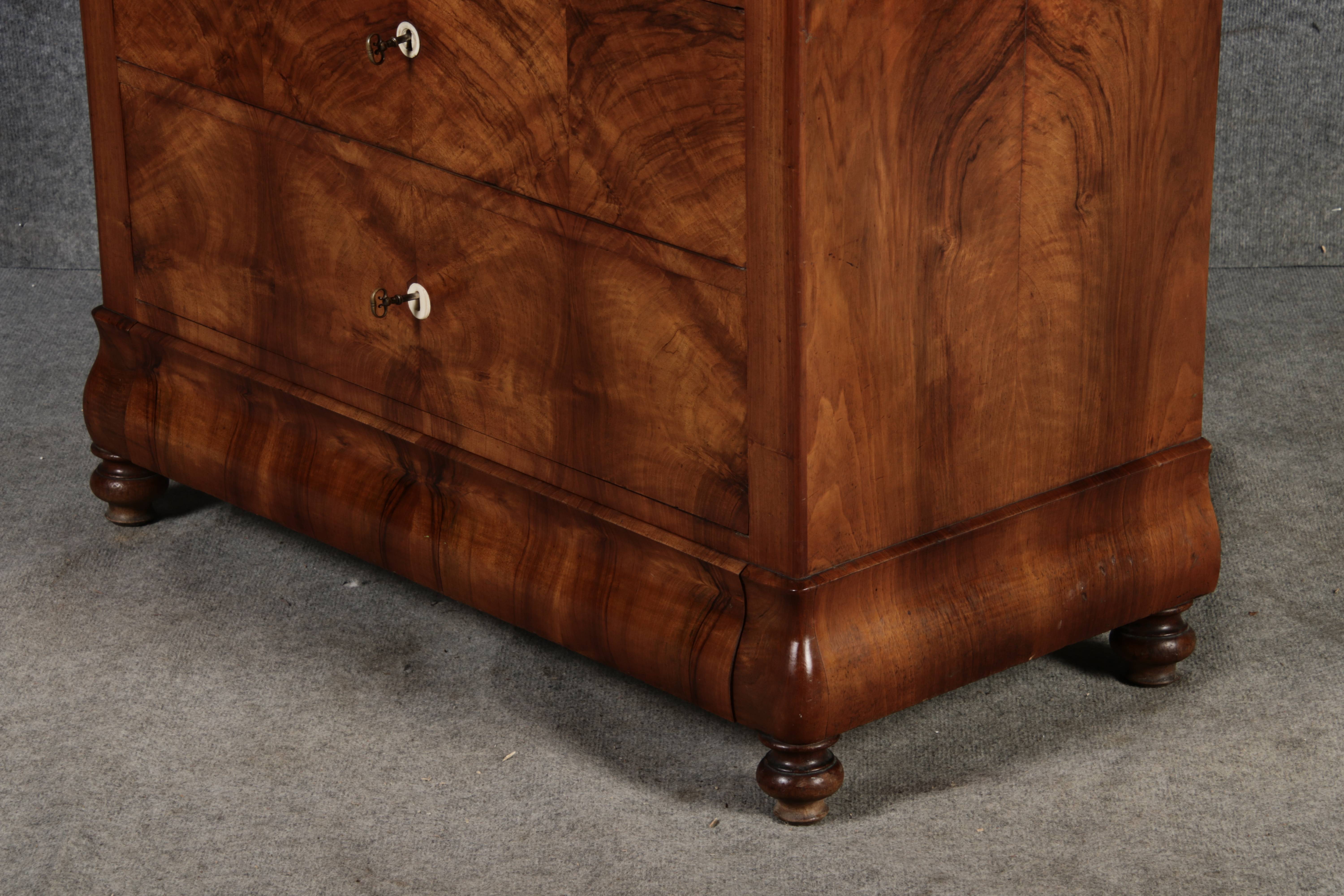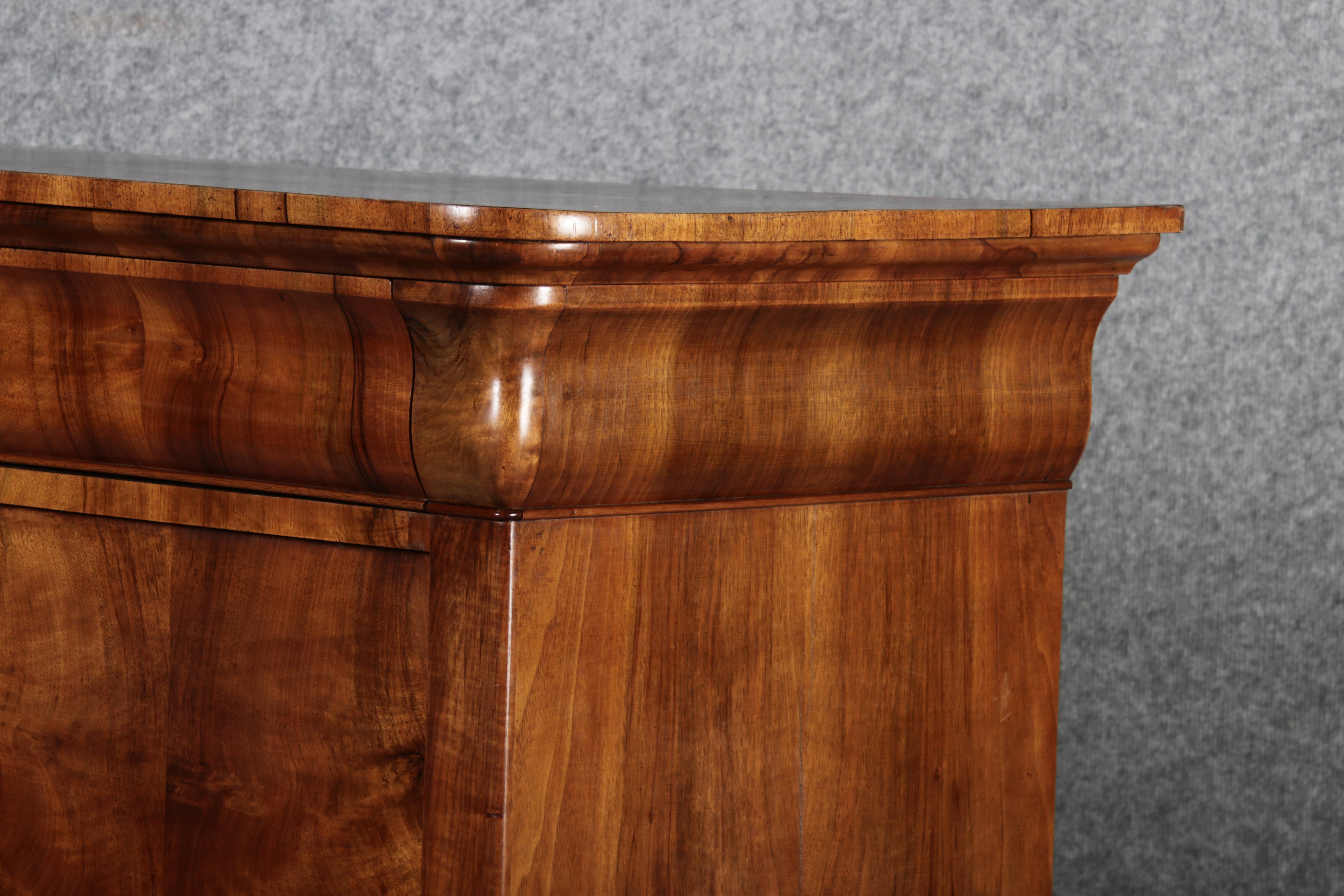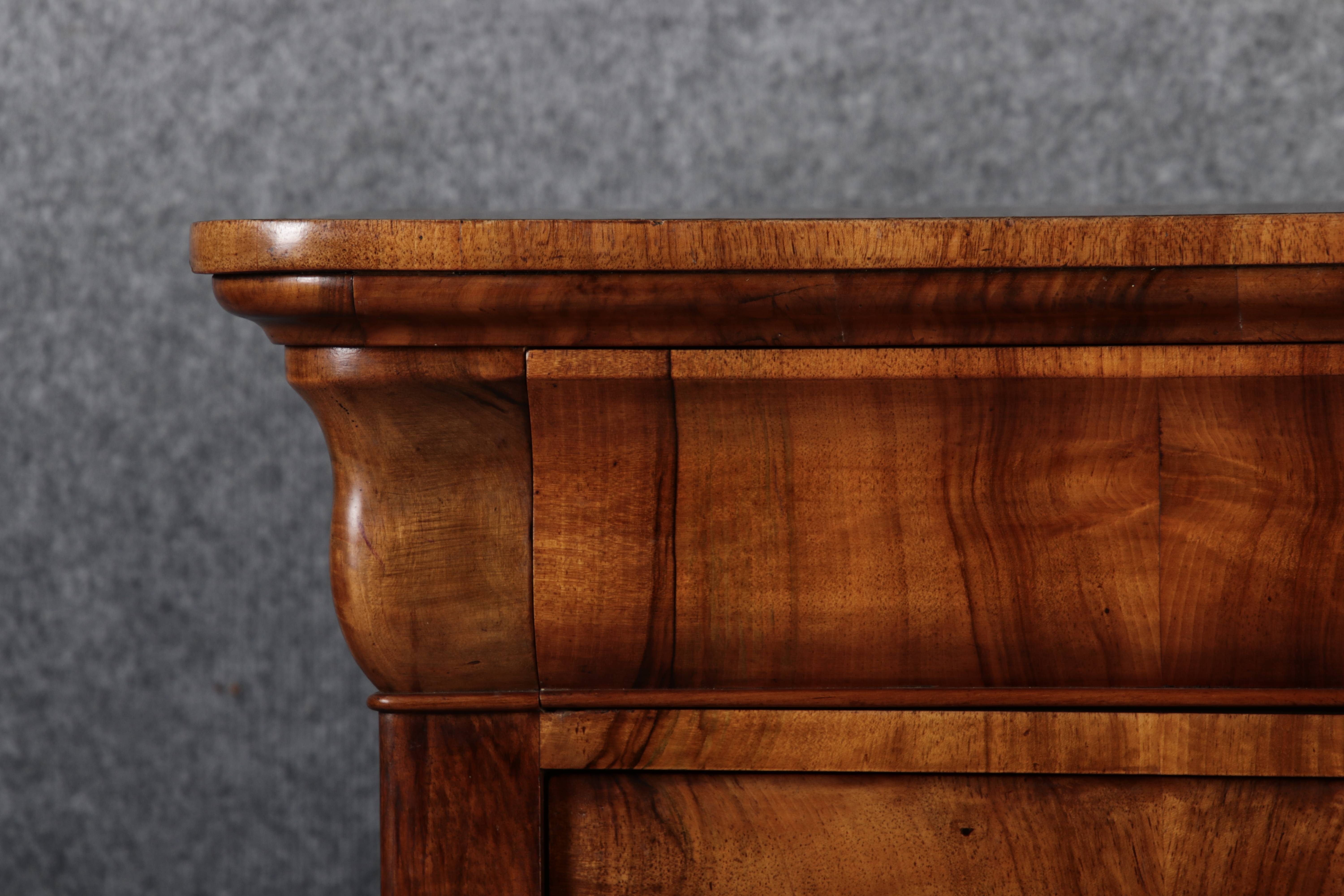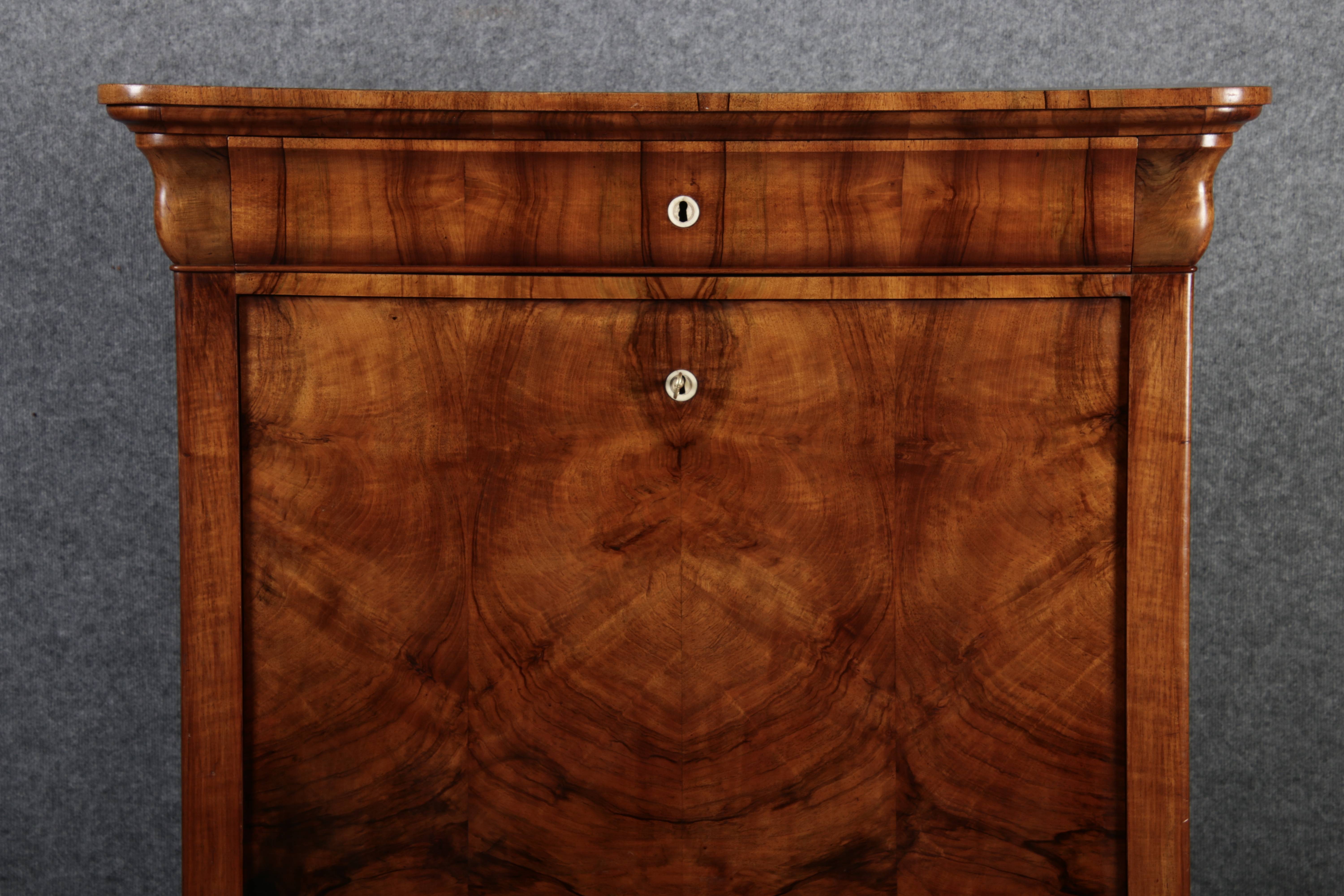 Beschreibung/description: Dieser elegante Sekretär stammt aus der Louis-Philippe-Epoche (ca. 1830–1860) und besticht durch seine edle Nussbaumholz-Oberfläche mit aufwendig gespiegelt furnierten Flächen. Das Möbel vereint Funktionalität mit klassischer Ästhetik und repräsentiert den Stil dieser Zeit durch seine harmonischen Proportionen und warmen Holztöne. Beschreibung: