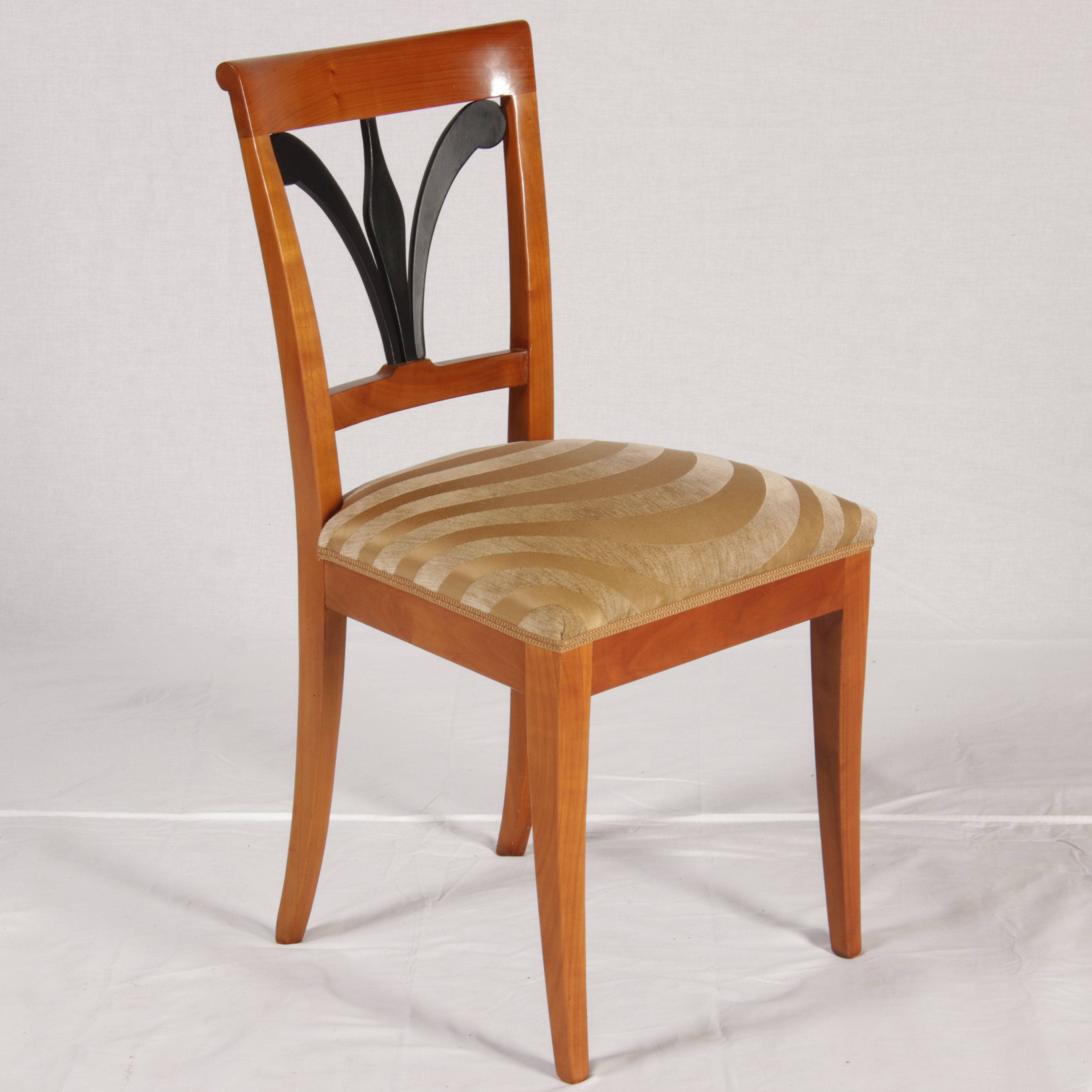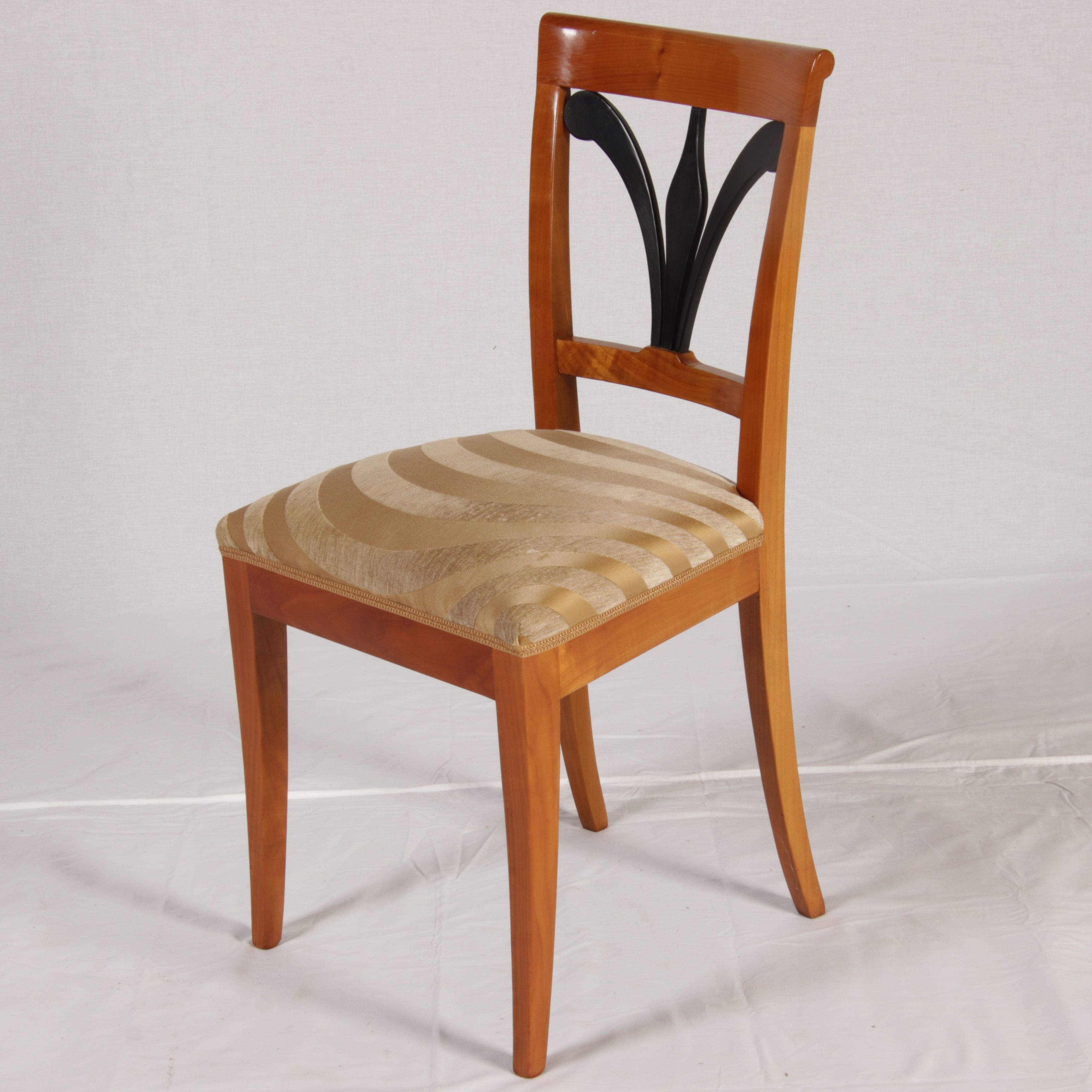 8 Antike Biedermeierstiel Stühle um 1920 Kirschbaum. Der Klassiker unter den Biedermeierstühlen. Die Stühle sind um 1920, aber ursprünglich ist der Stiel der Stühle 100 Jahre früher um 1820. |