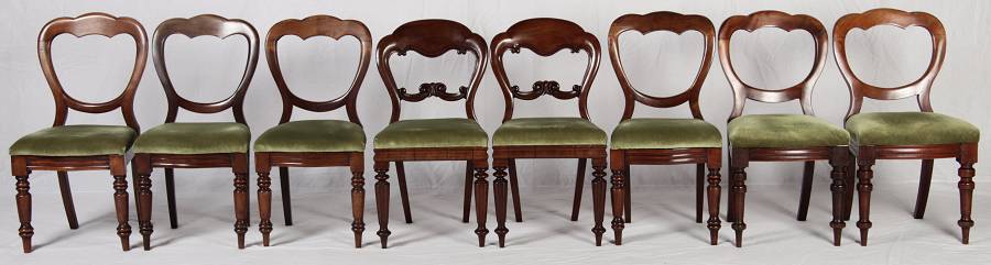 8 Antike viktorianische Stühle mit Ballonrücken aus Mahagoni 19 Jahrhundert. |