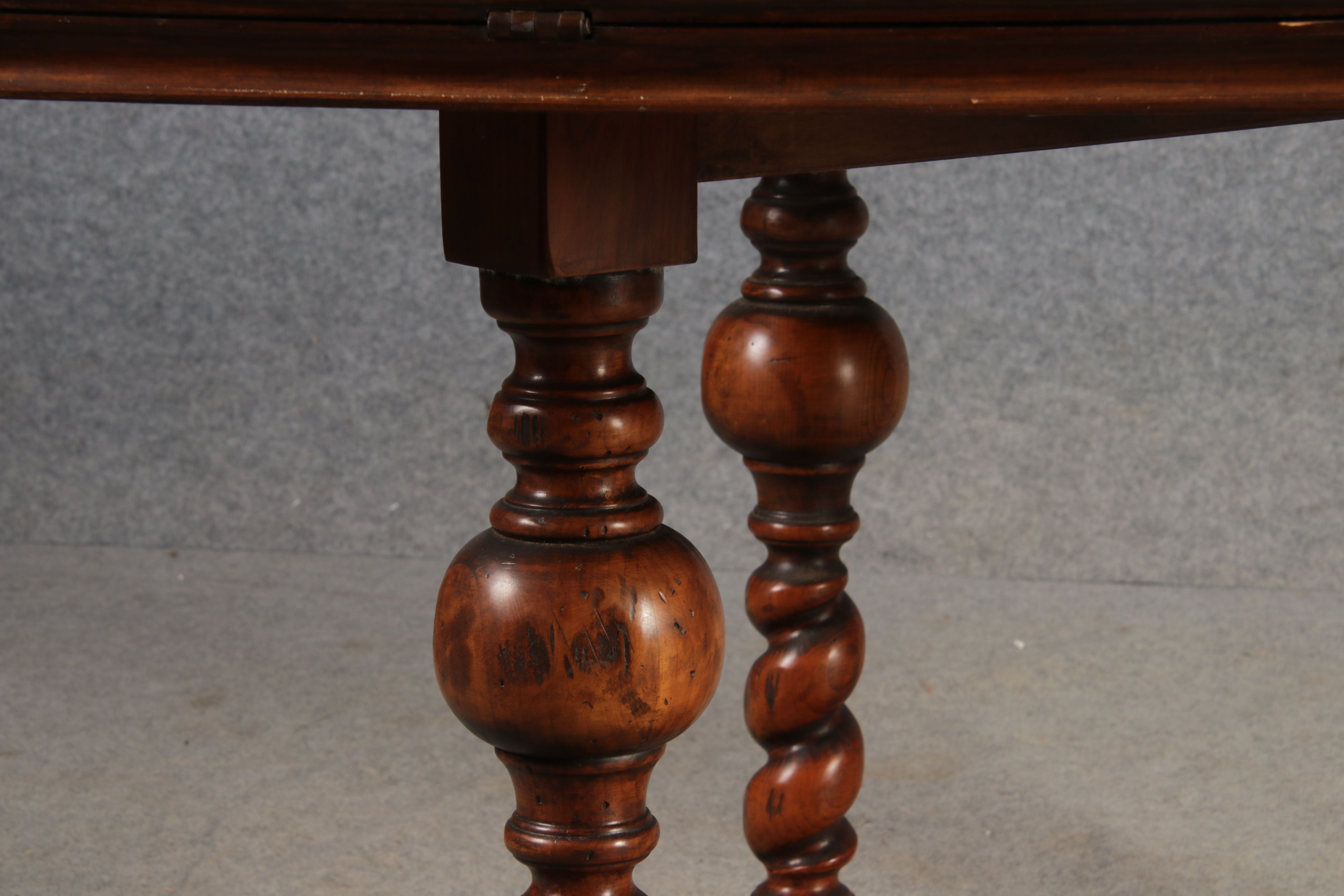 Masse/dimensions: Höhe/Height ca. 77,5 cm, Breite/Broad ca. 115 cm, Tiefe/depth ca.115 cm, Durchmesser ausgeklappt /Diameter unfolded ca. 163 cm. Holz, Schlüssel/wood,