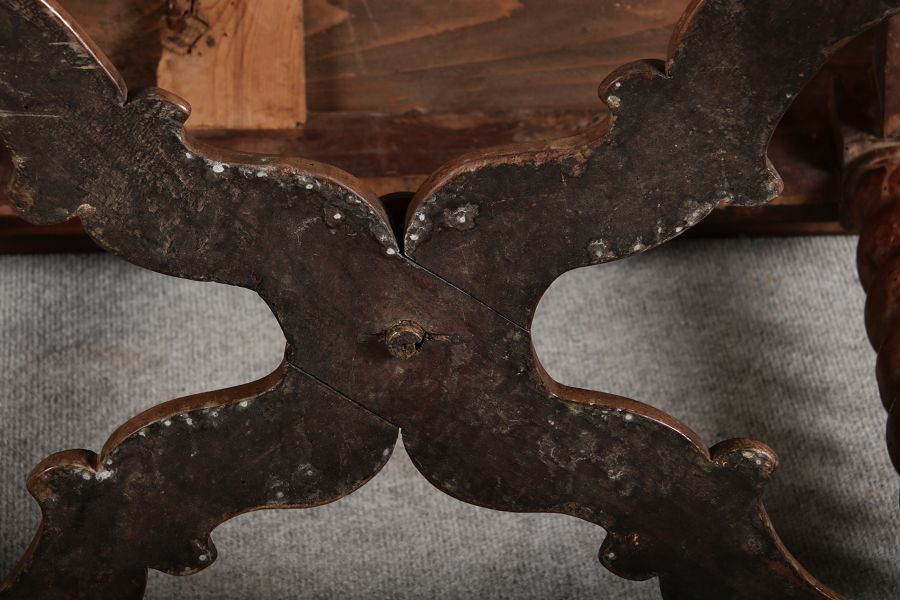Antiker Kleiner Barocktisch gedrehte Säulen Intarsien Nussbaum