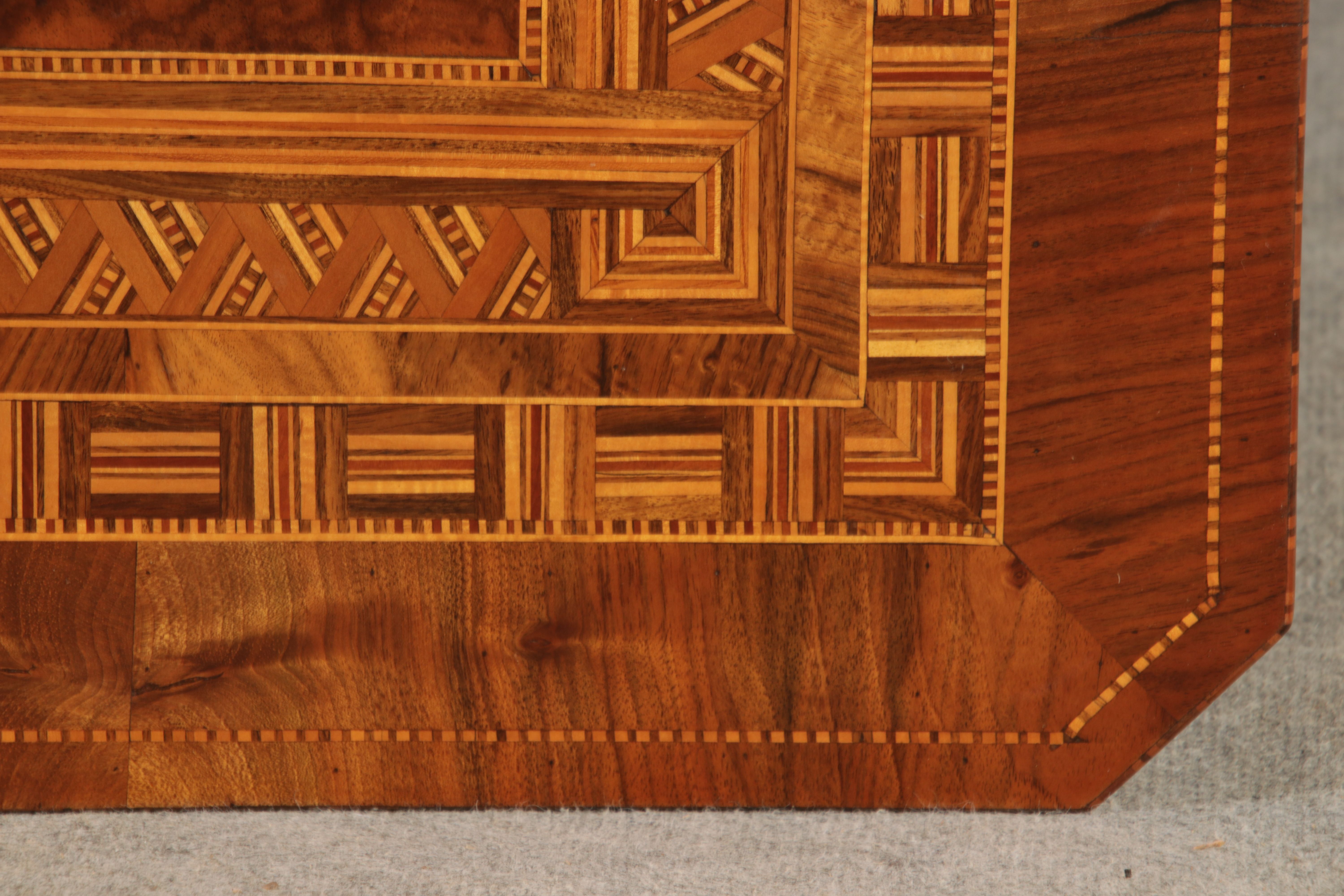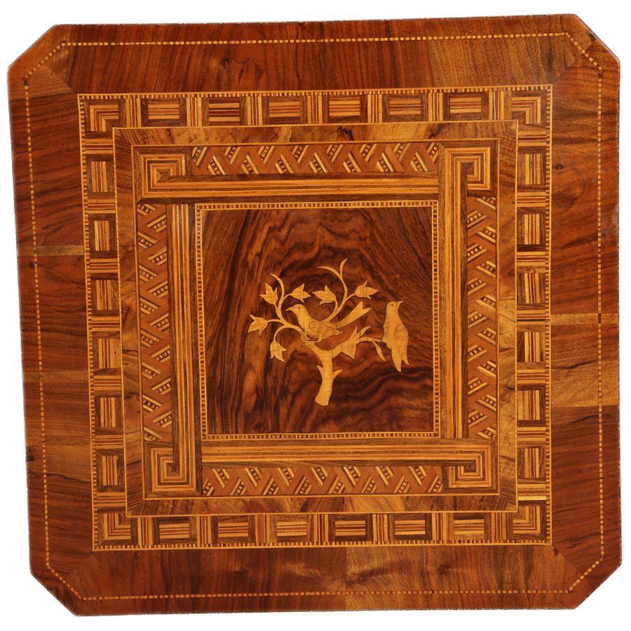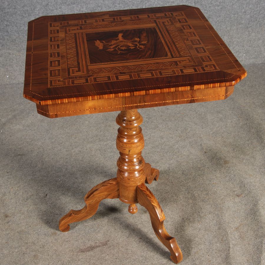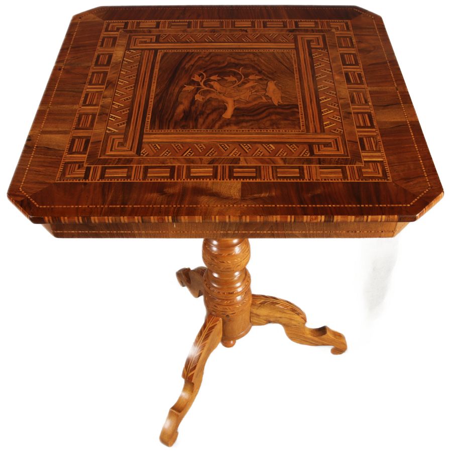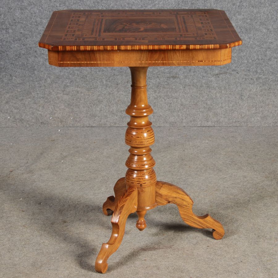 | Antiker Tarsia Rolo Tisch Nussbaum Italien 19. Jh Einlegearbeiten |