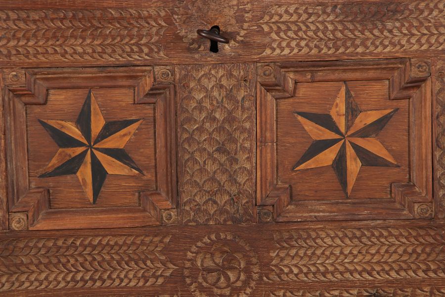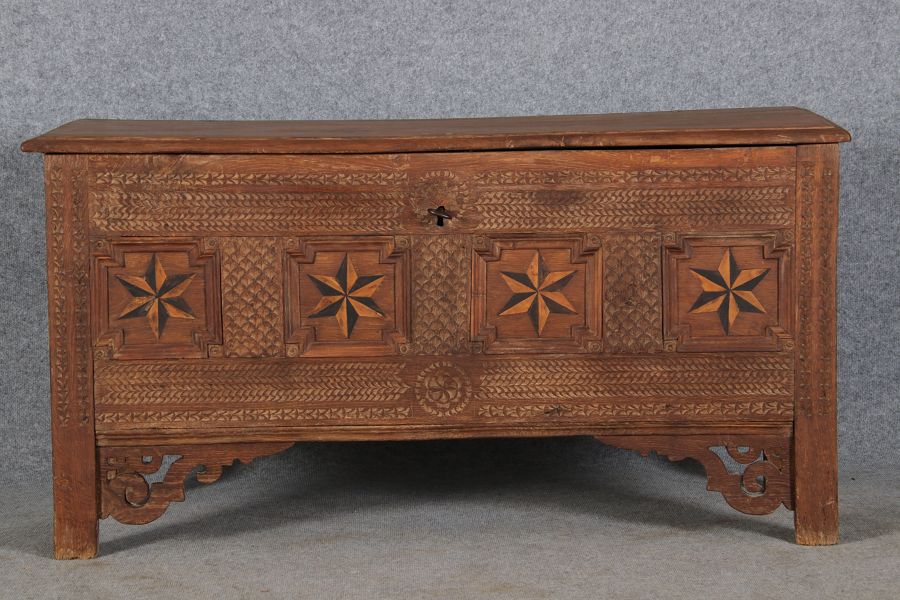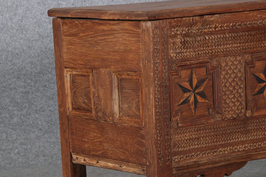 | Antike Barocktruhe mit Kerbschnitzereien und