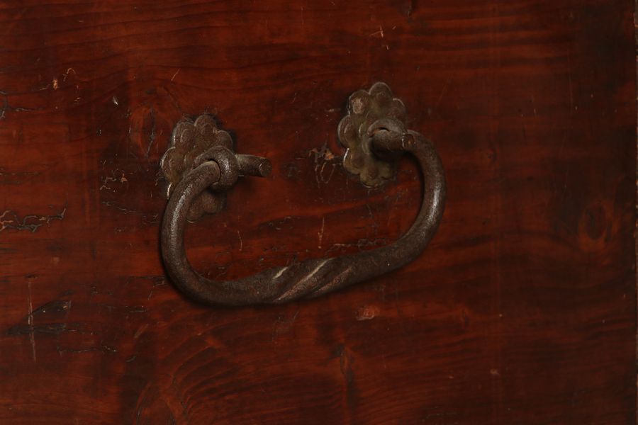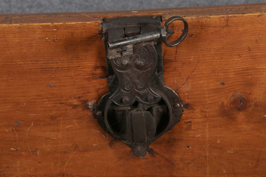 Antike 2 m lange Spät Renaissance früh Barock Truhe 17 Jh. Schwarz Malerei Eisenschloss |