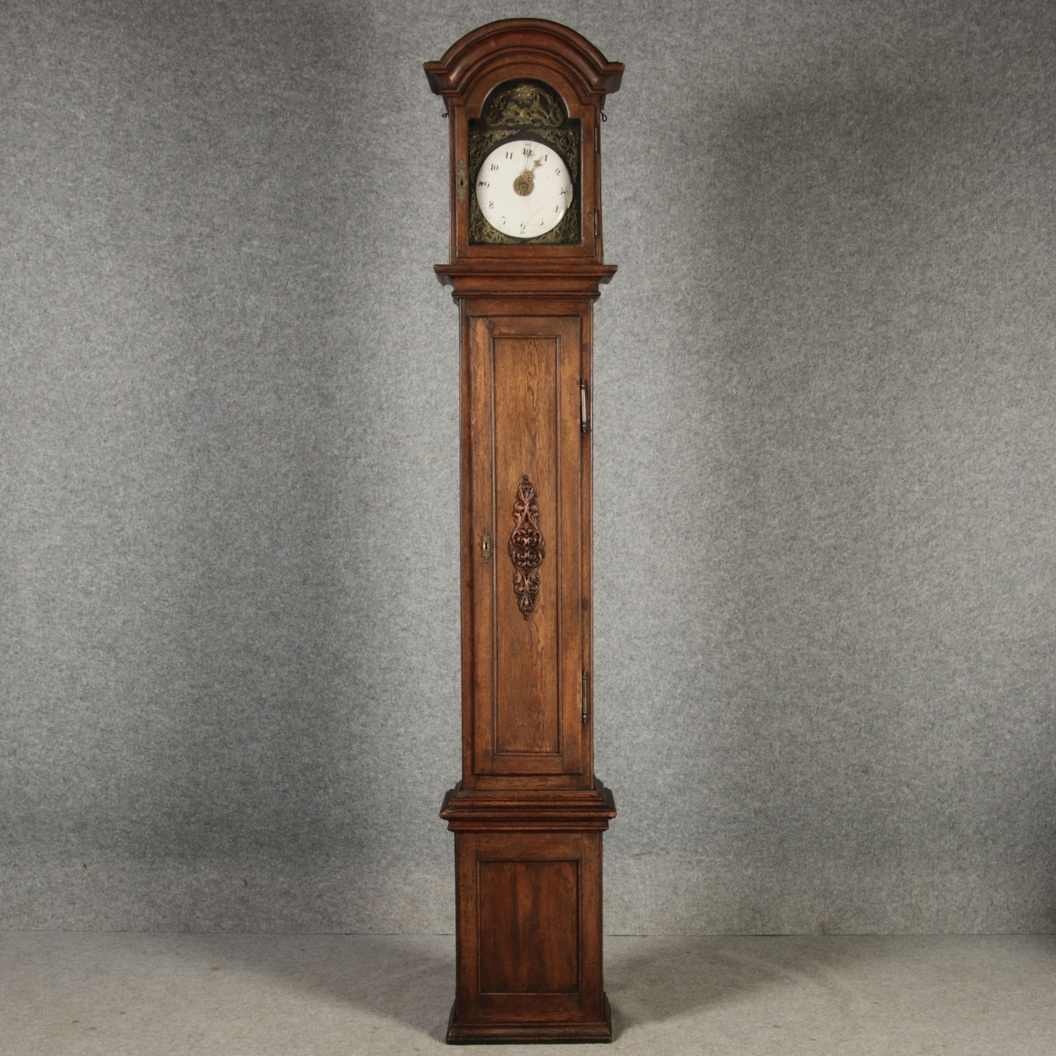| Antiker sehr große 263 cm hohe Barock Standuhr Eiche 18 Jh. |