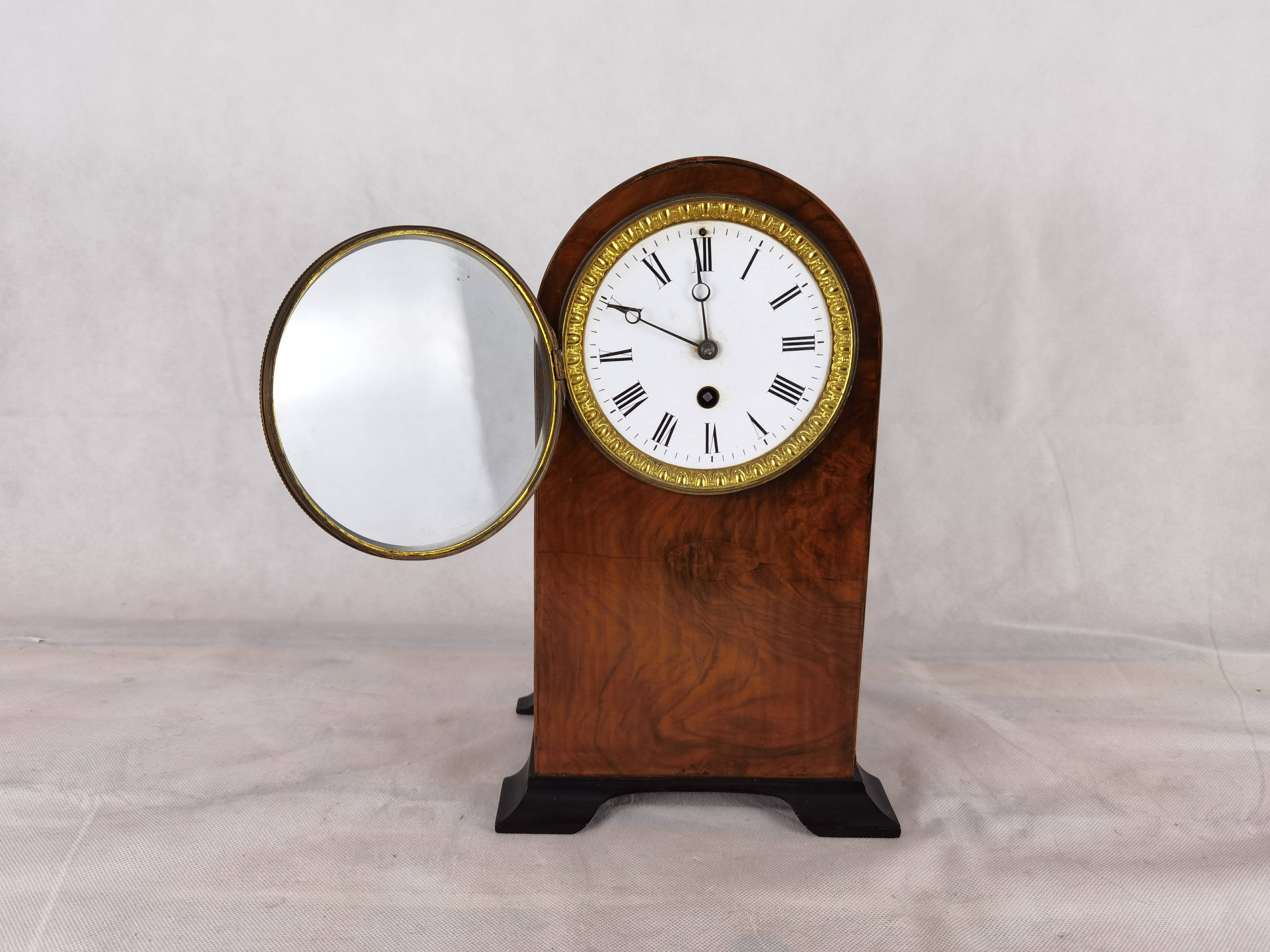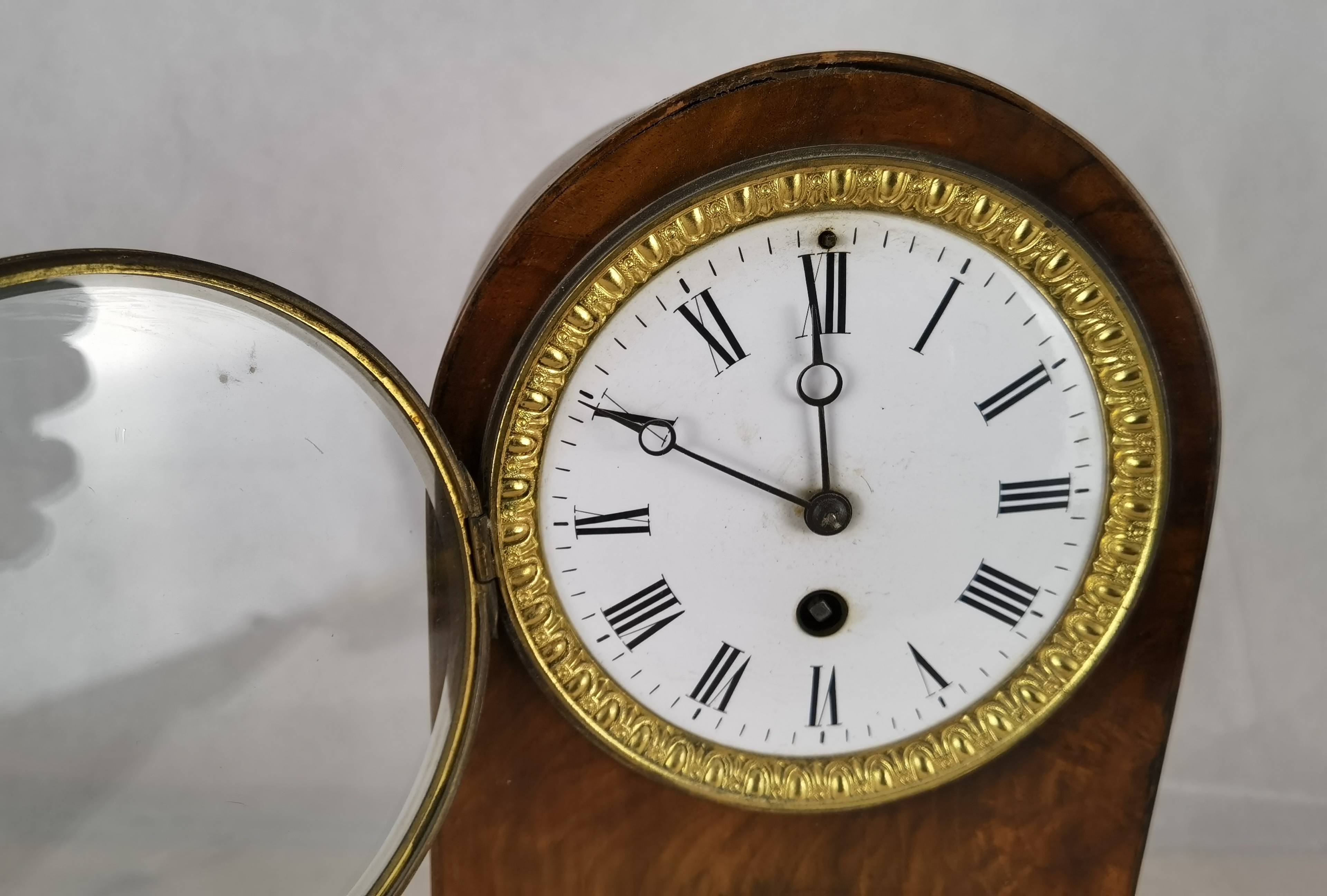 Antike Pendeluhr Kaminuhr um 1900 Nussbaum |