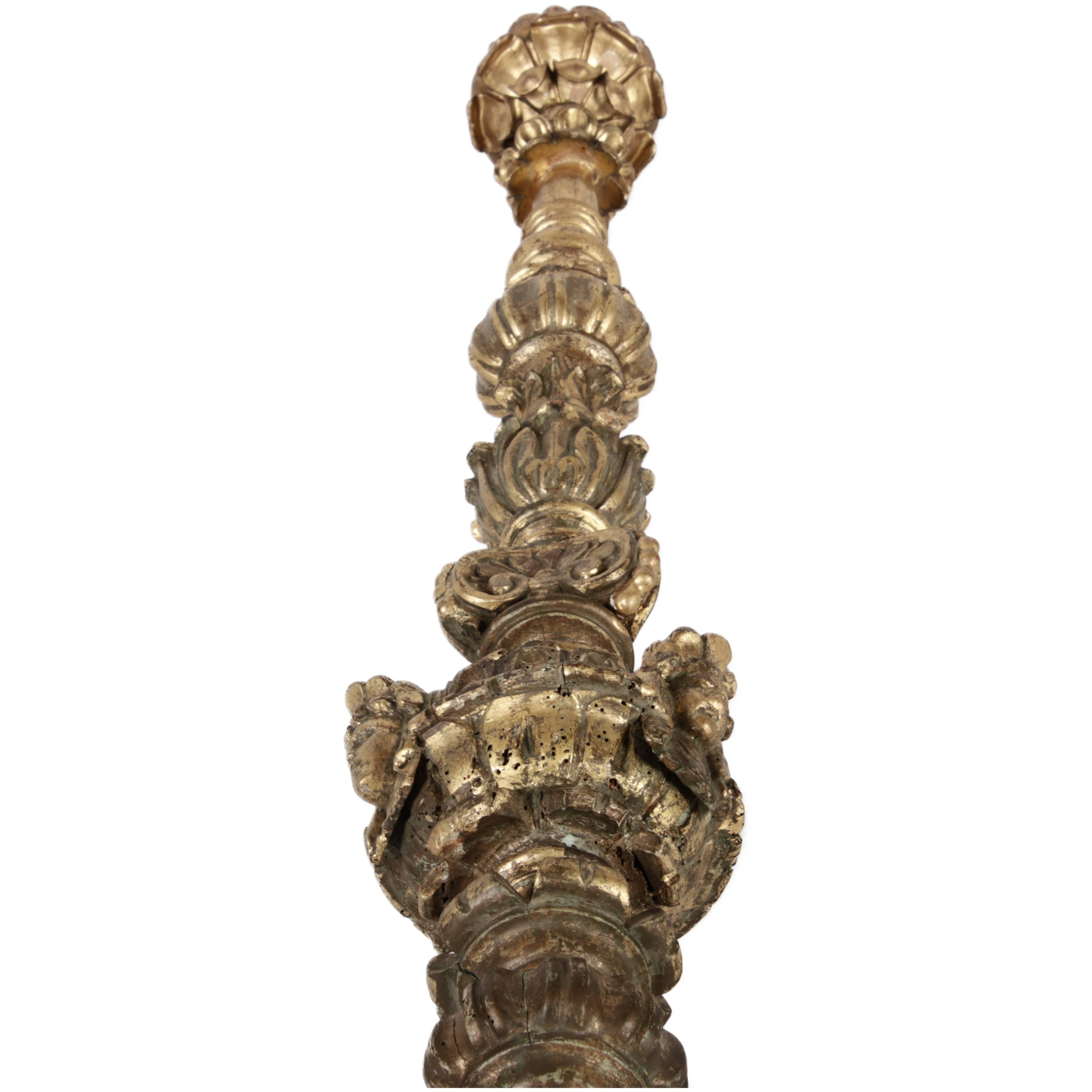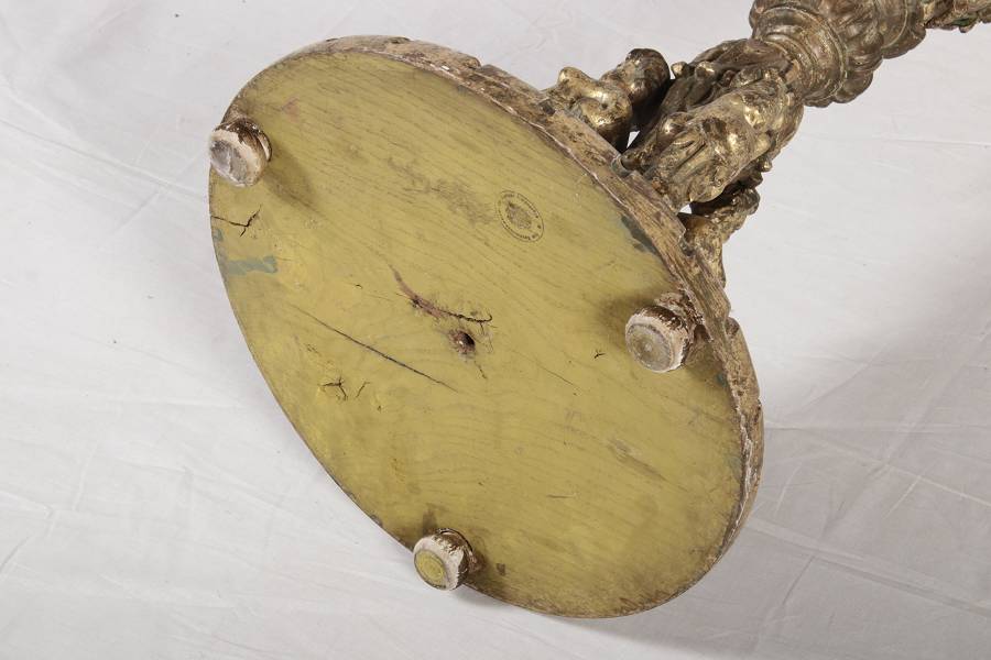 | Antiker 150 cm hoher Bodenleuchter Holz goldgefasst 18 Jh |