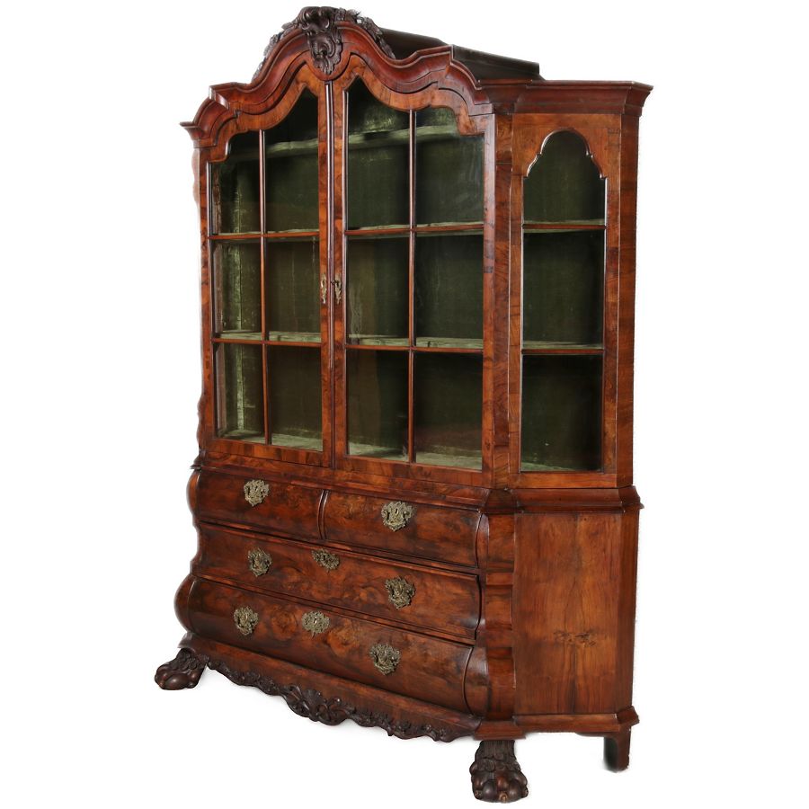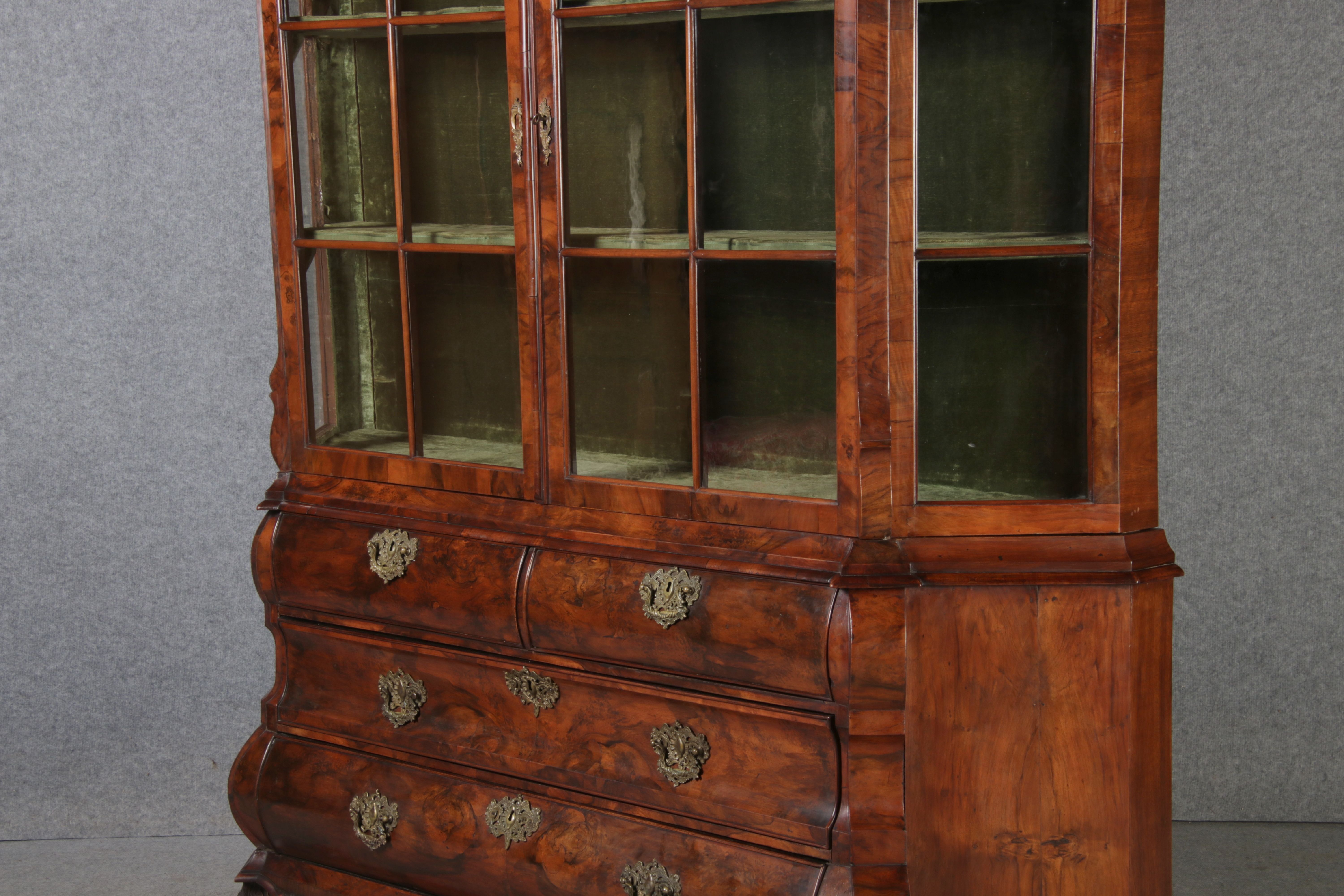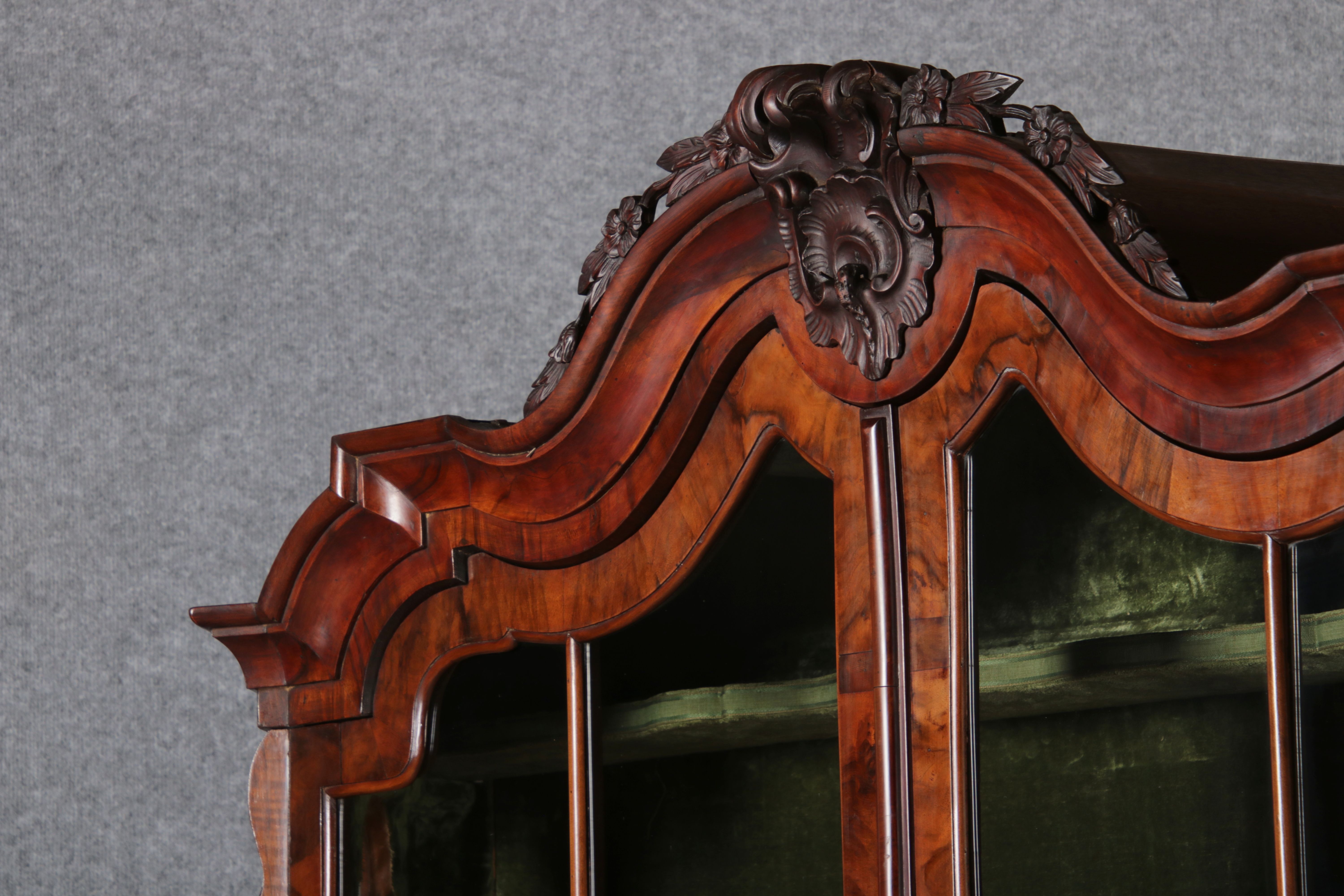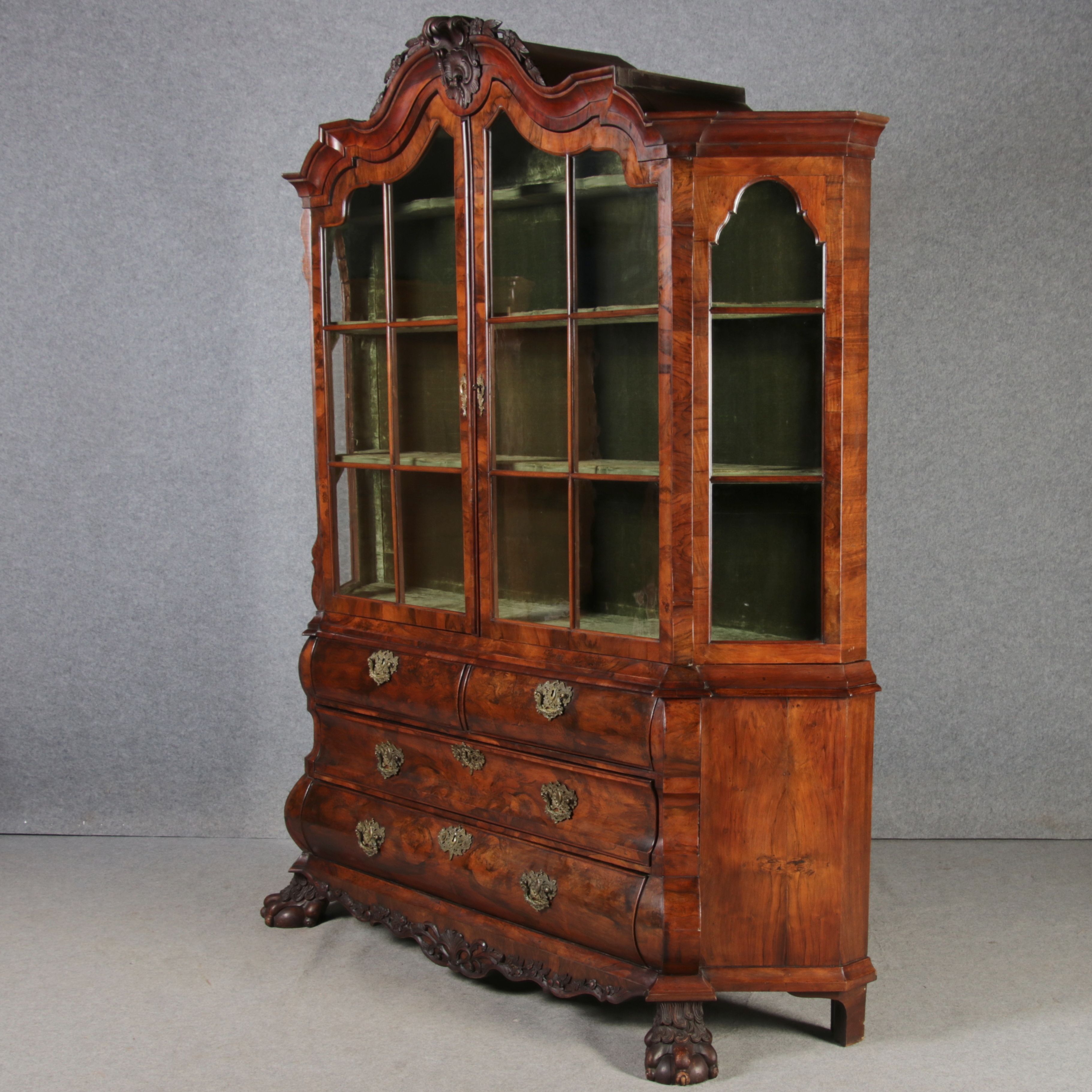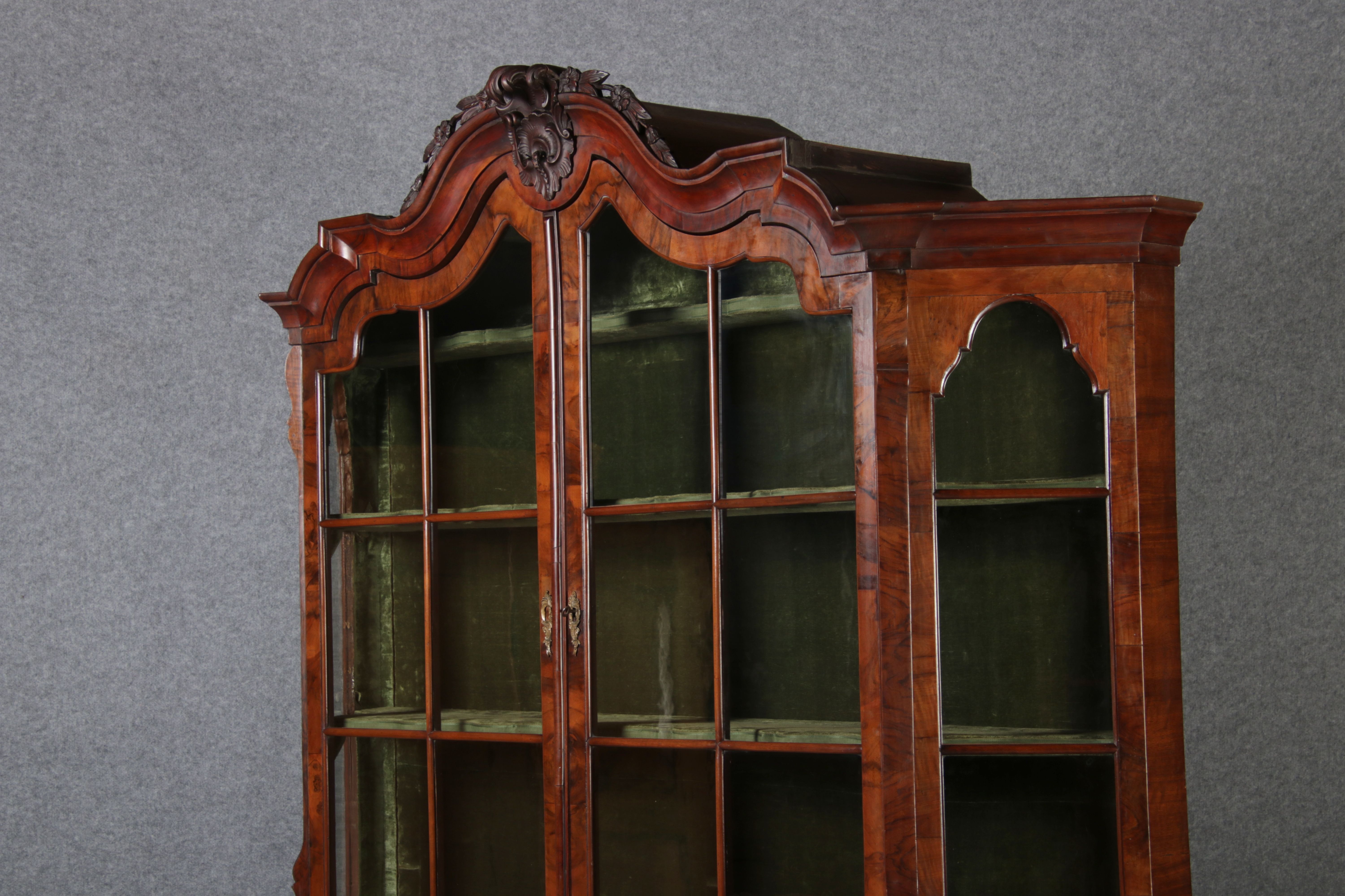 Antike 248 cm Hohe Barock Vitrine Holland 18 Jh. Nussbaum |