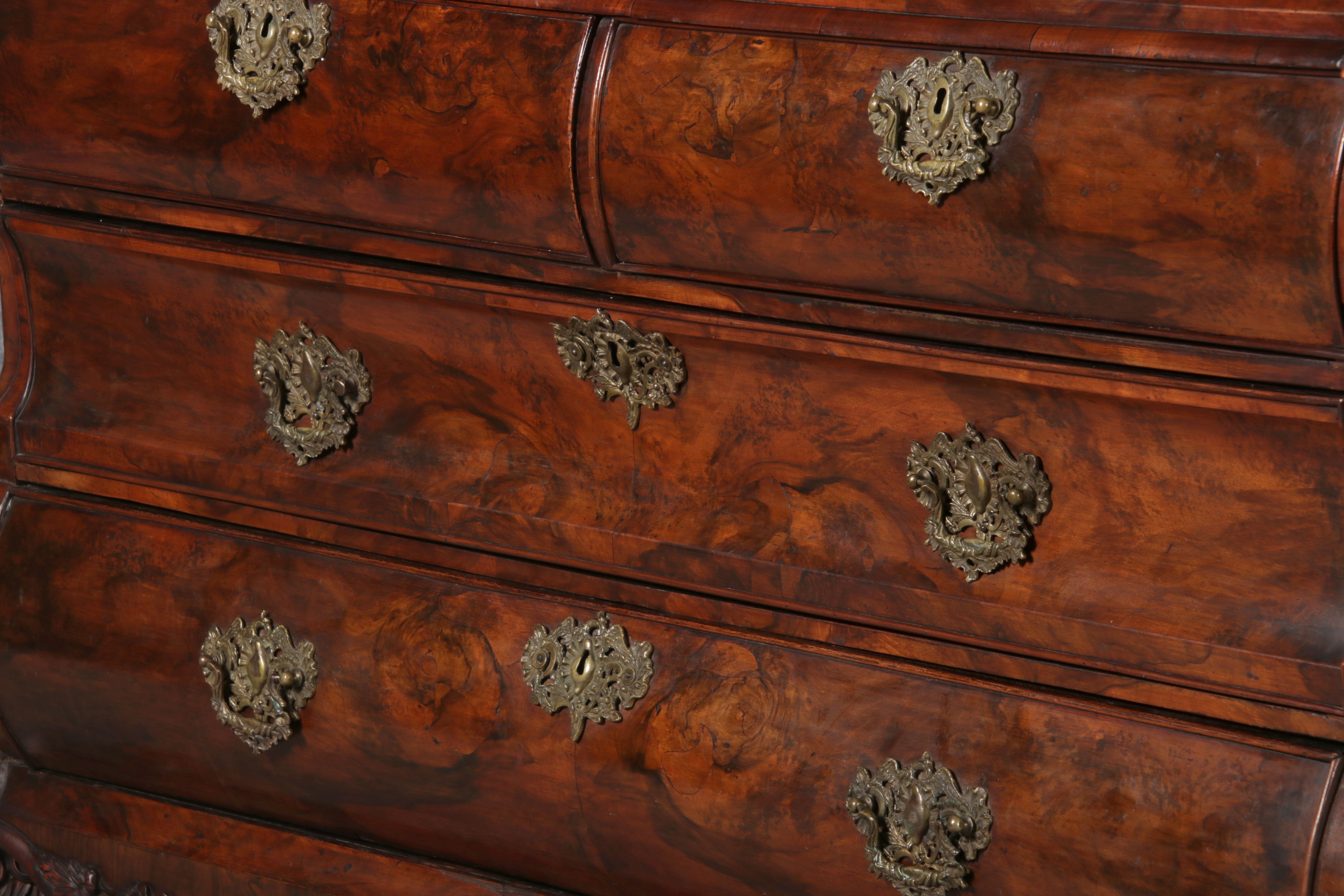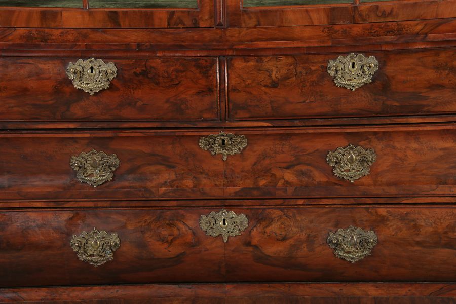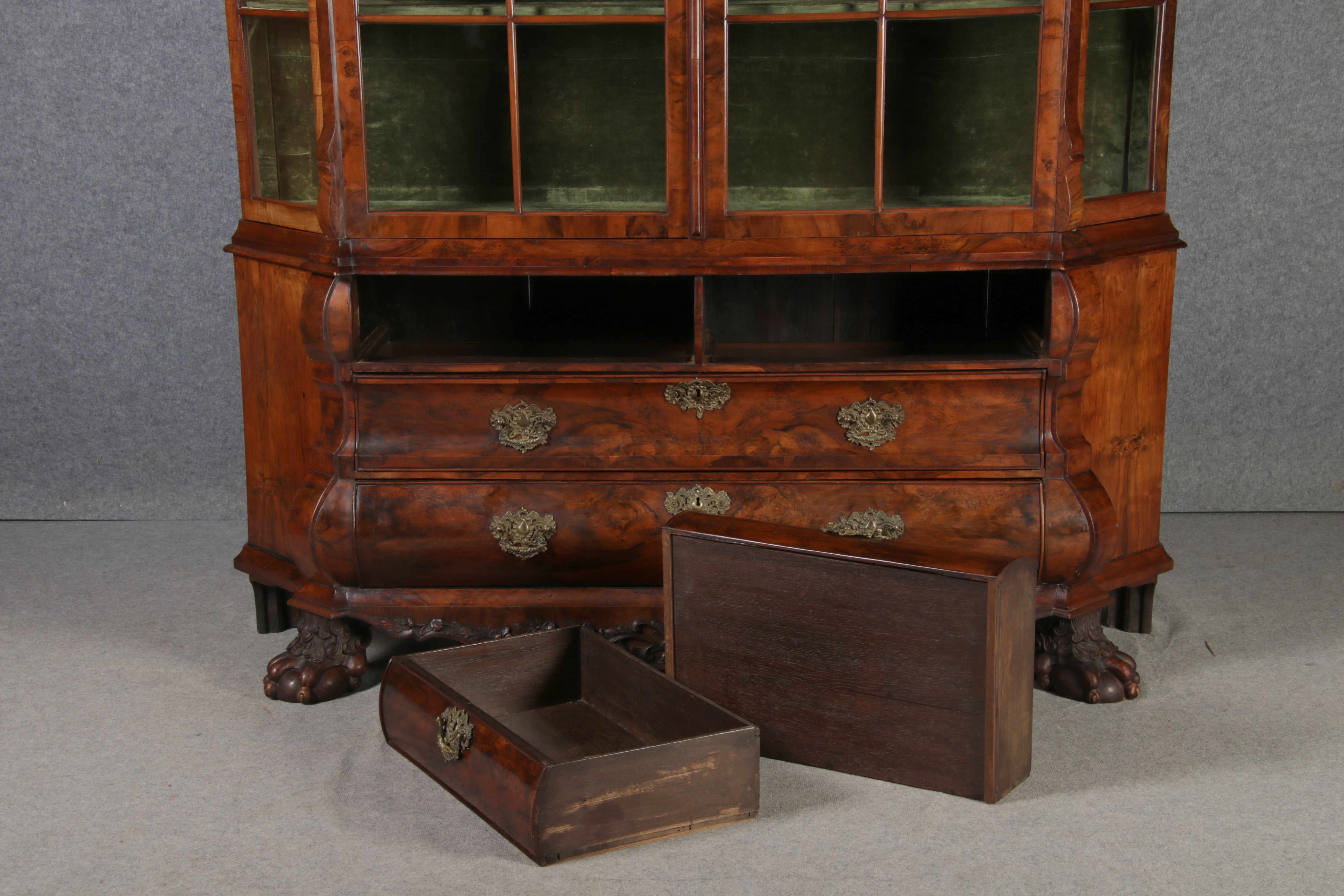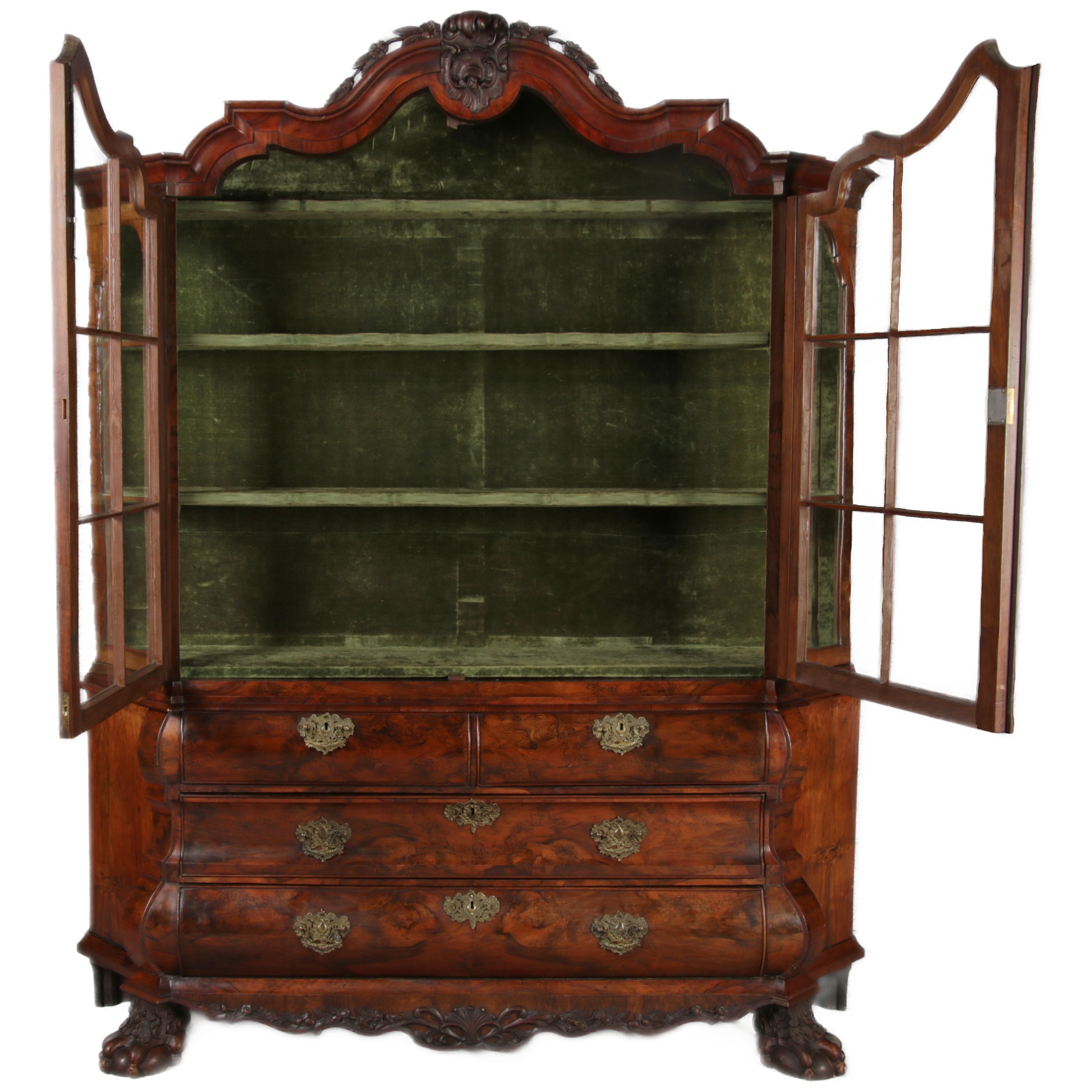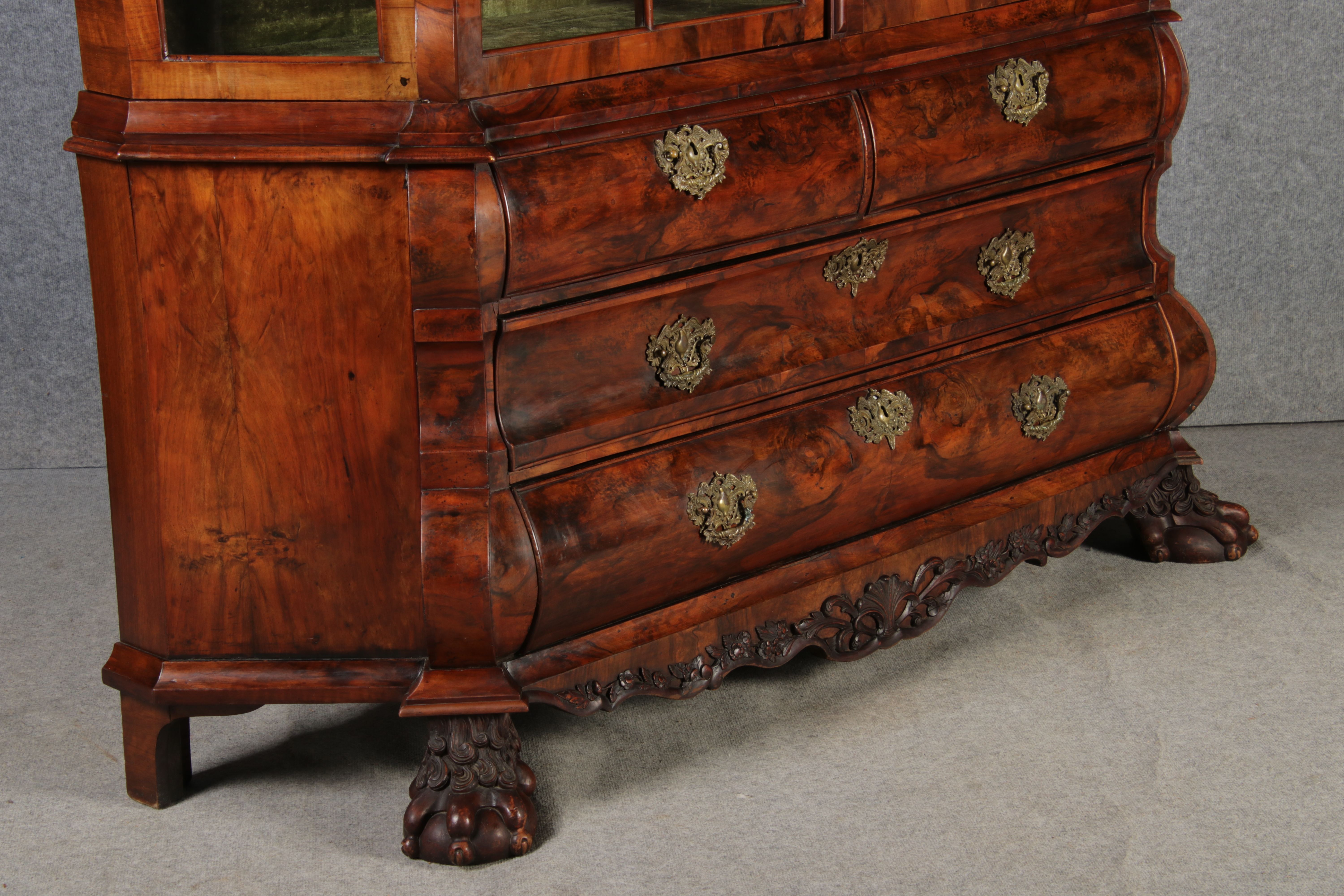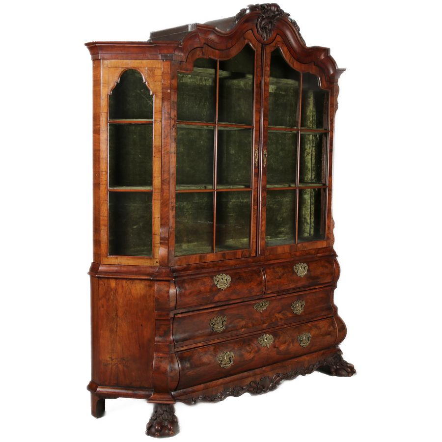 Antike 248 cm Hohe Barock Vitrine Holland 18 Jh. Nussbaum |