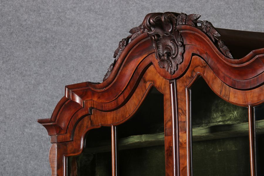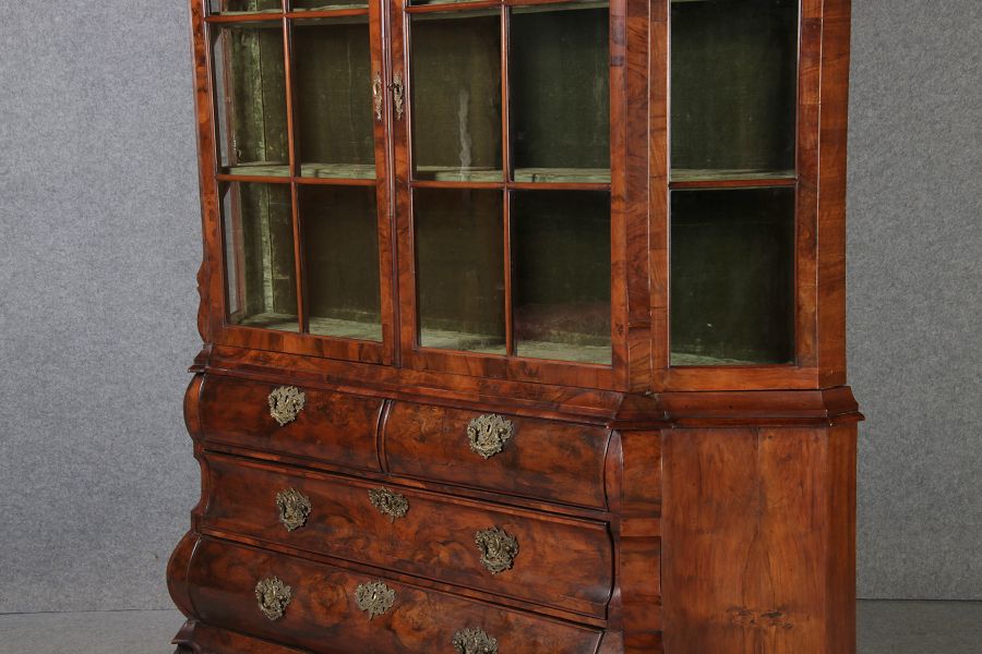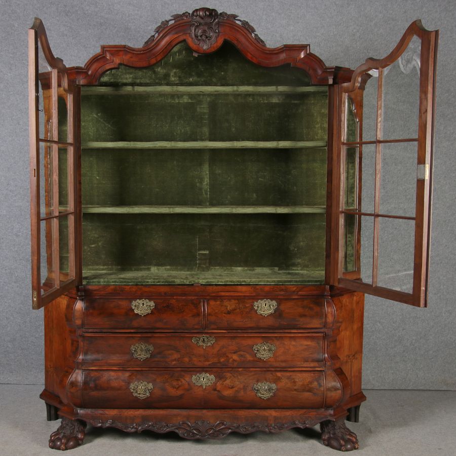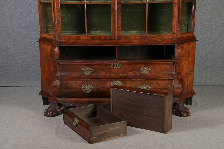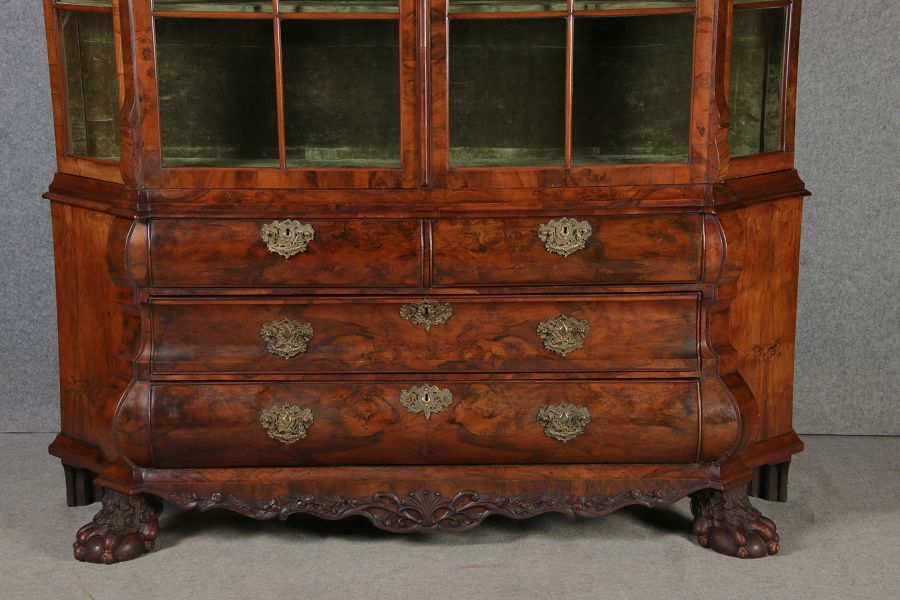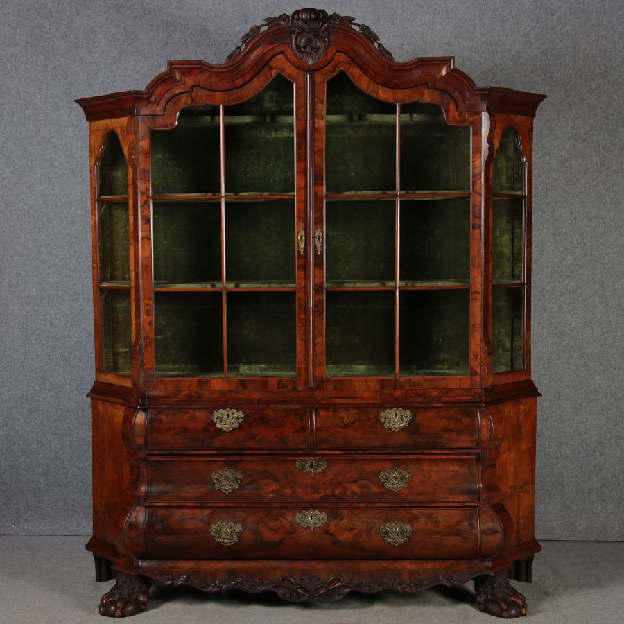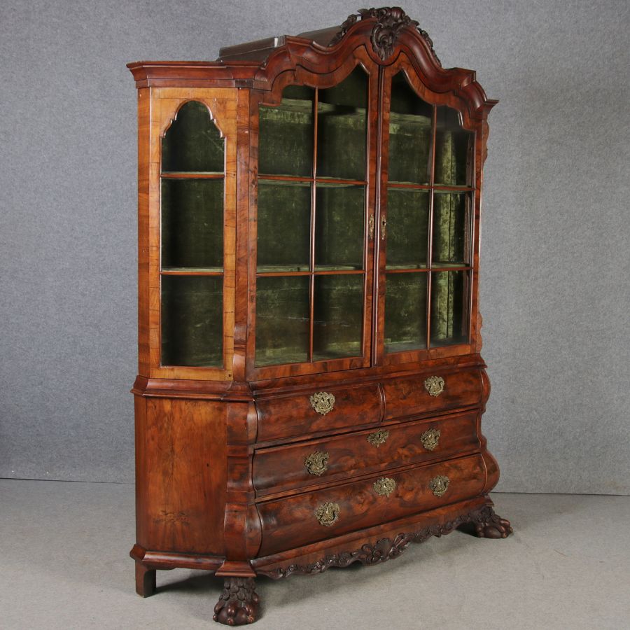 | Antike 248 cm Hohe Barock Vitrine Holland 18 Jh. Nussbaum | ||