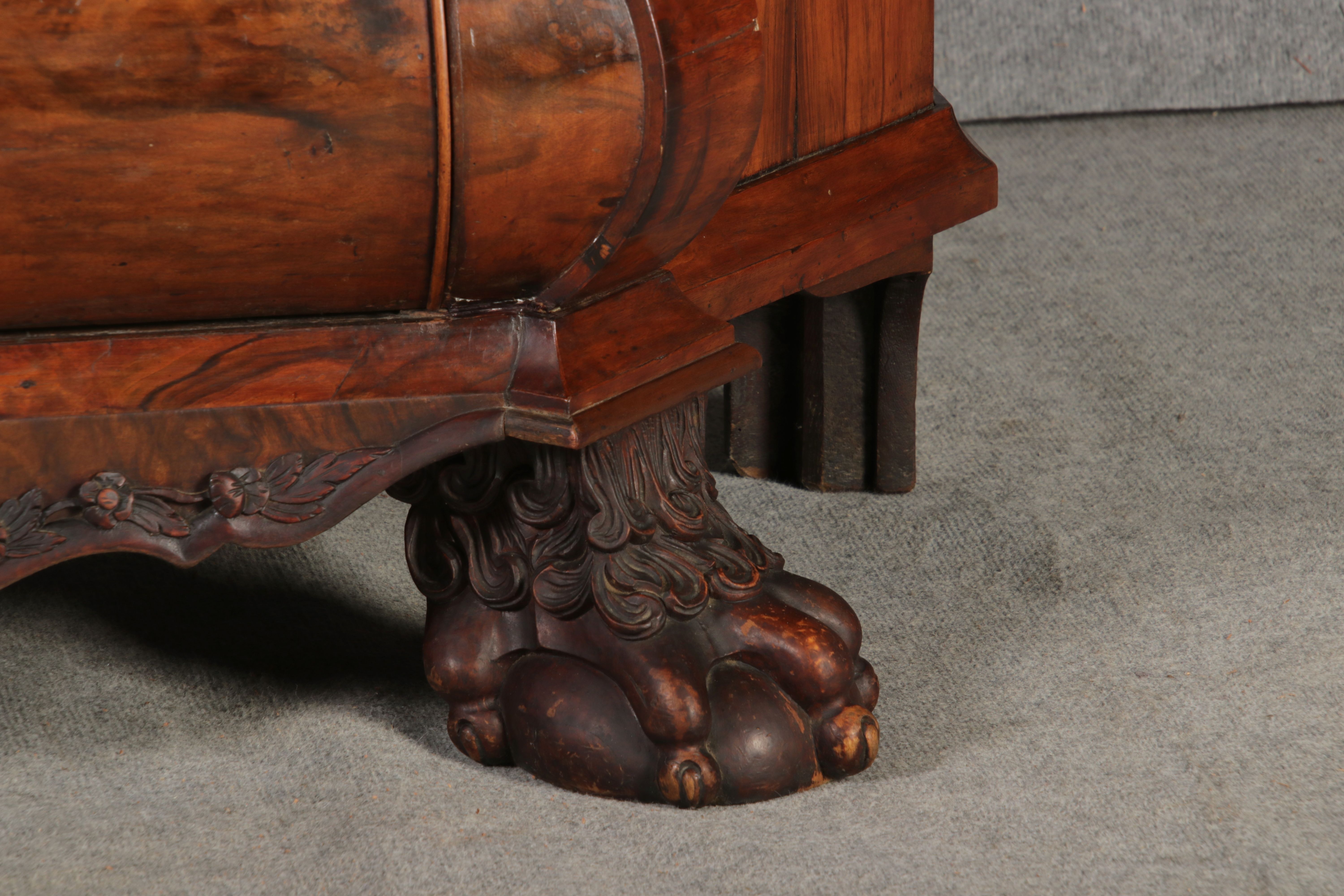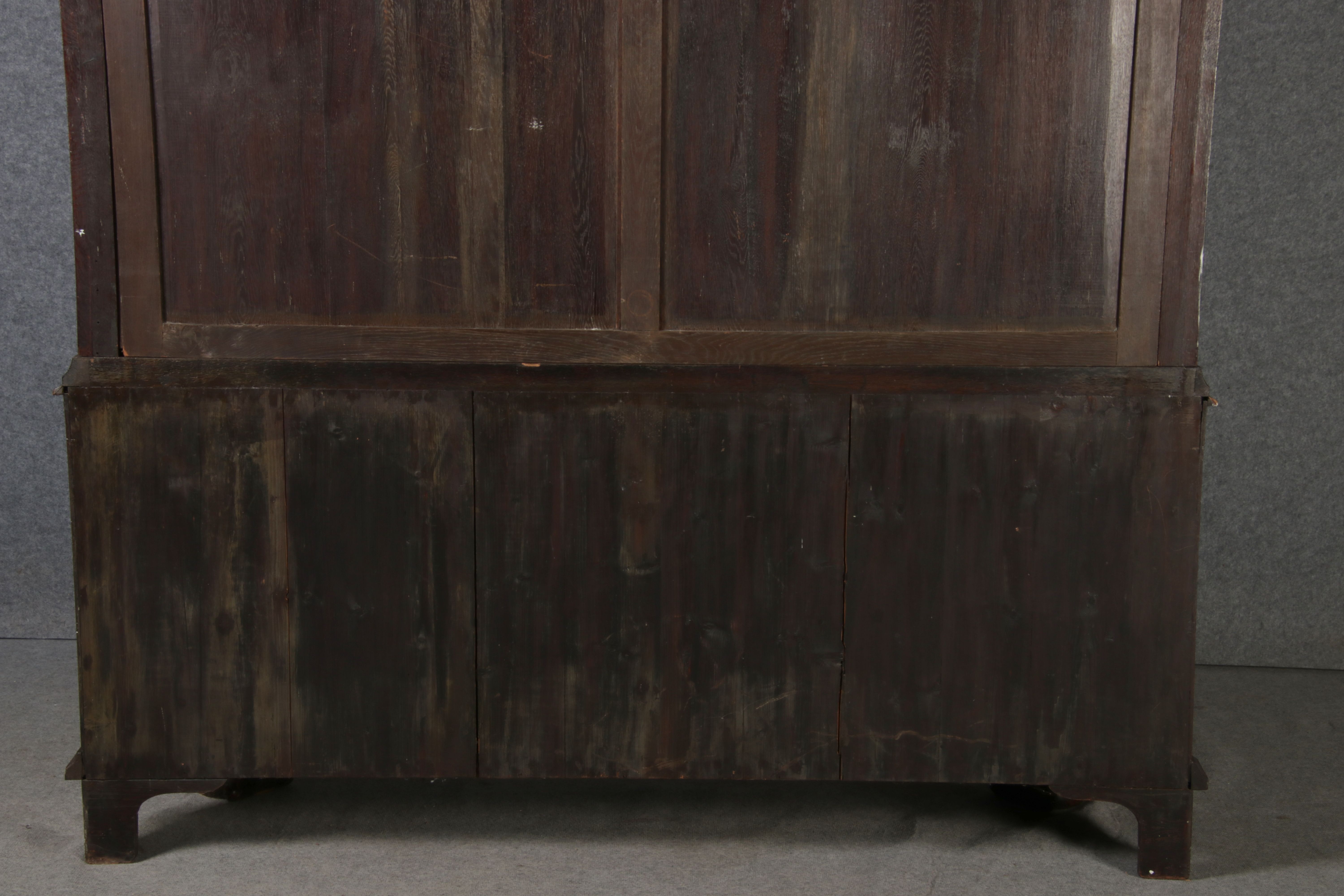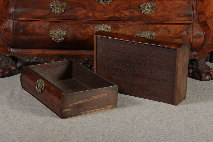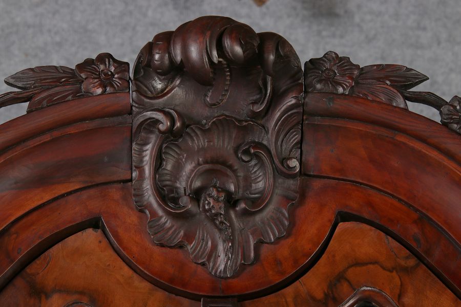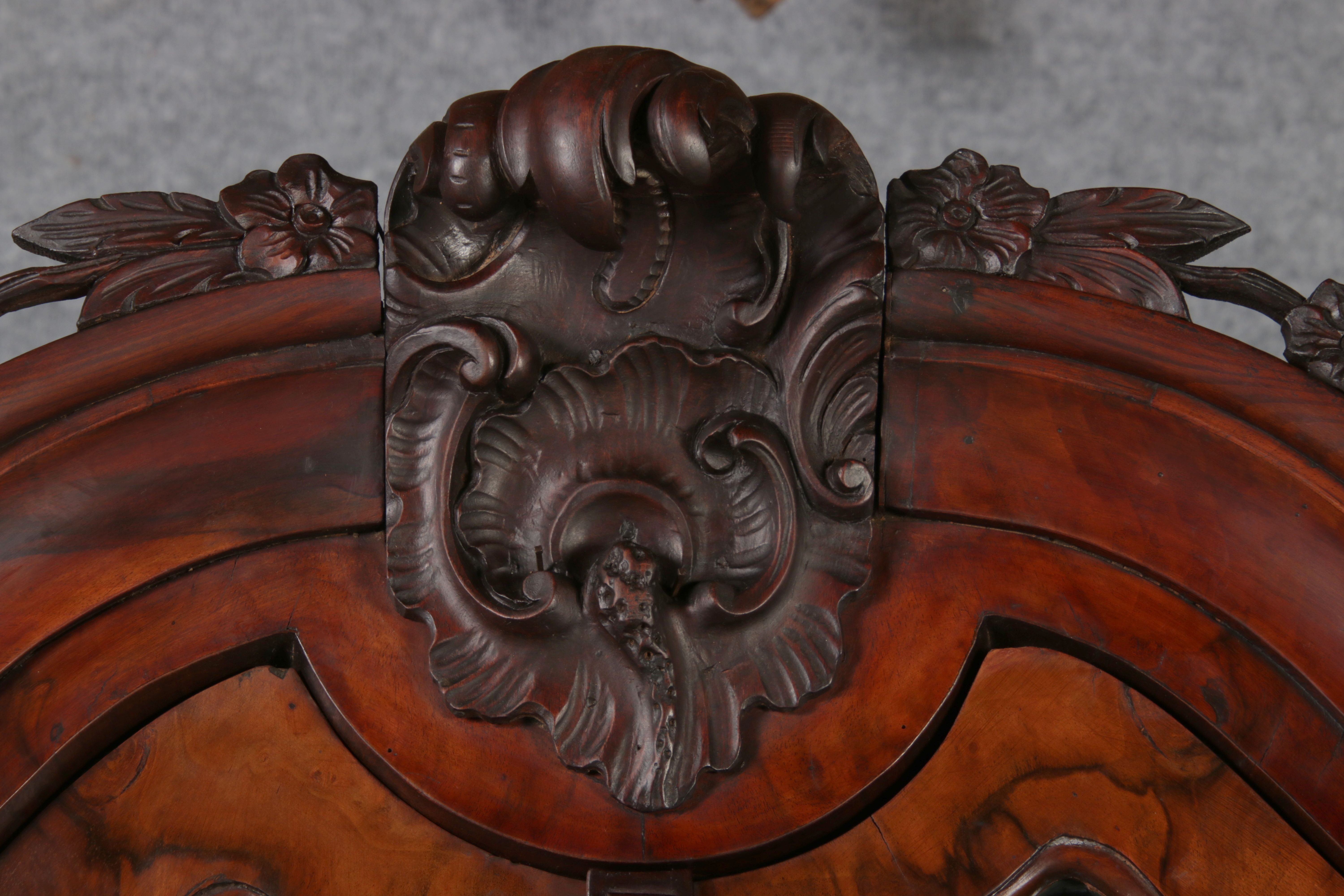 Masse/dimensions: Höhe/Height ca. 248 cm, Breite Korpus/Broad Boda ca. 194 cm, Breite Gesims/Broad cornice ca. 204 cm, Tiefe Korpus/Deep body ca. 39/48 cm, Tiefe Gesims Füße/Deep cornice feet ca. 53 cm,