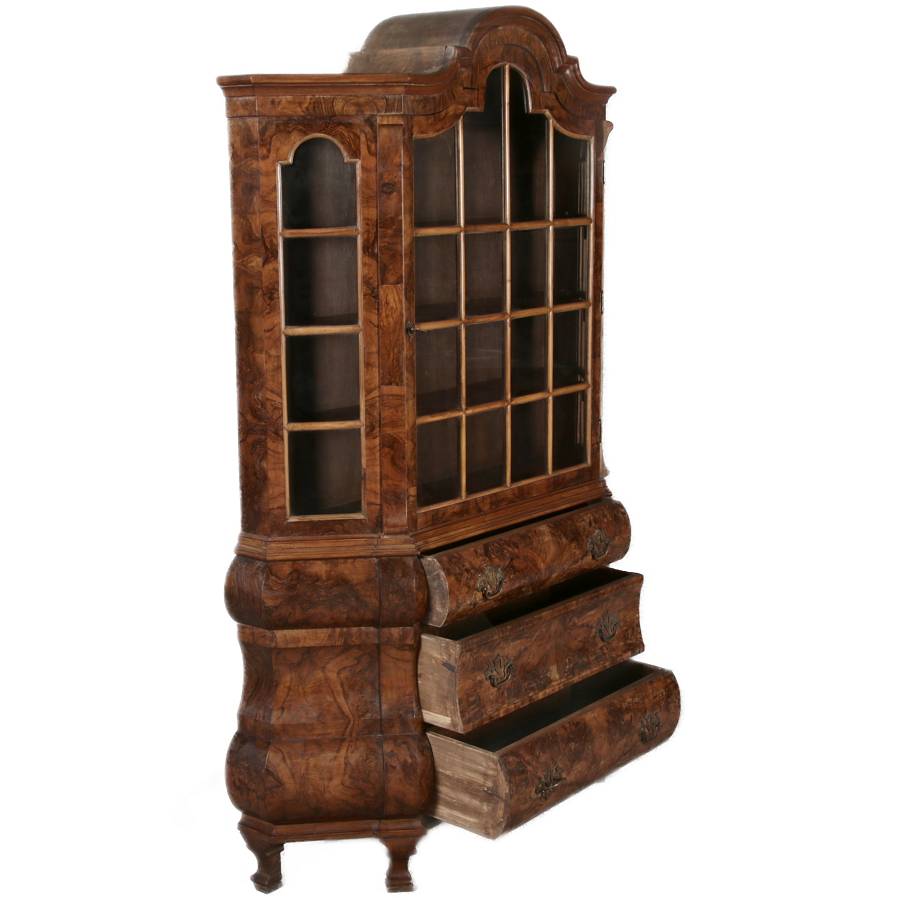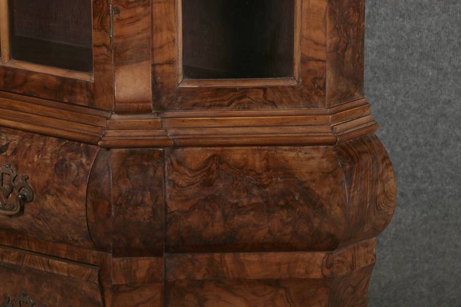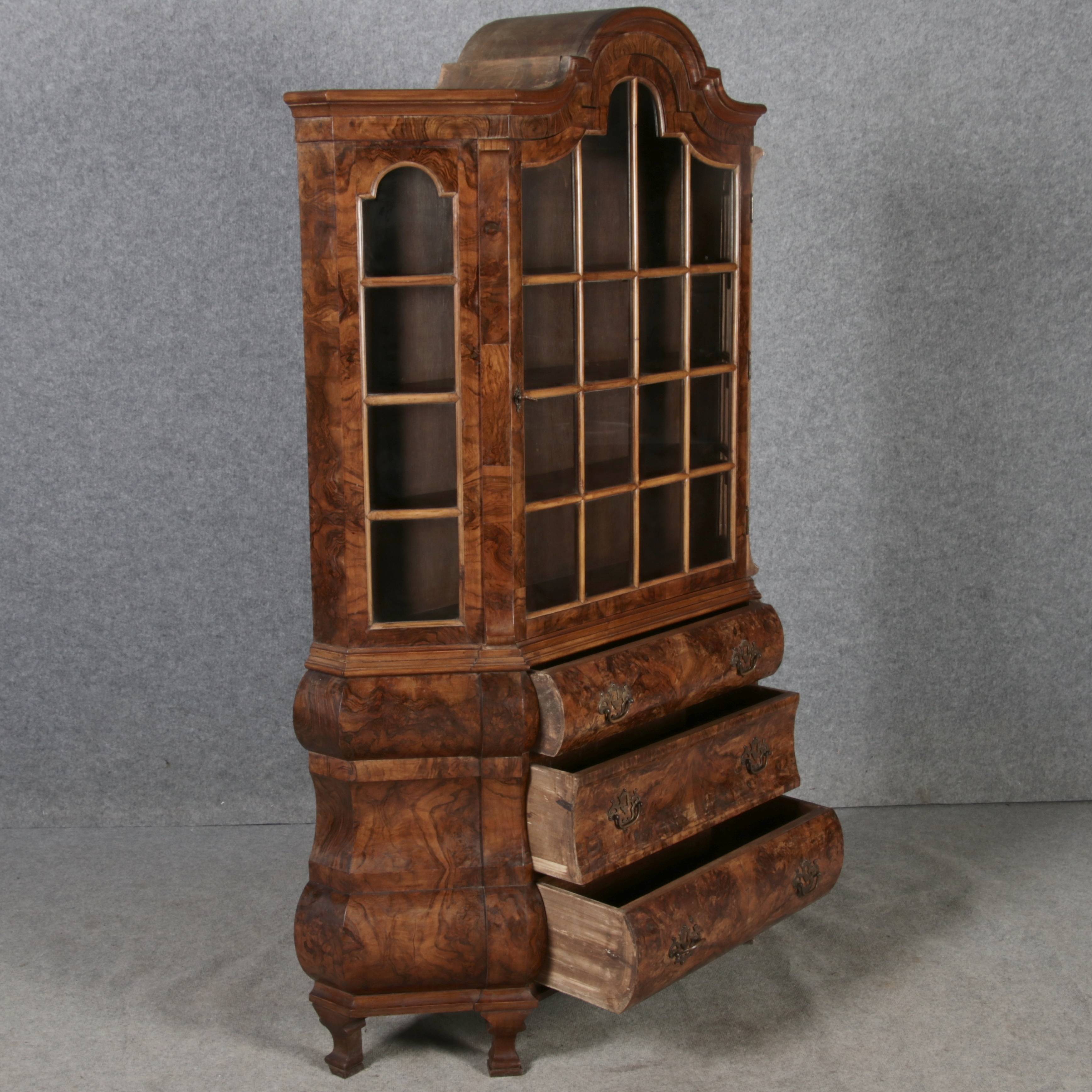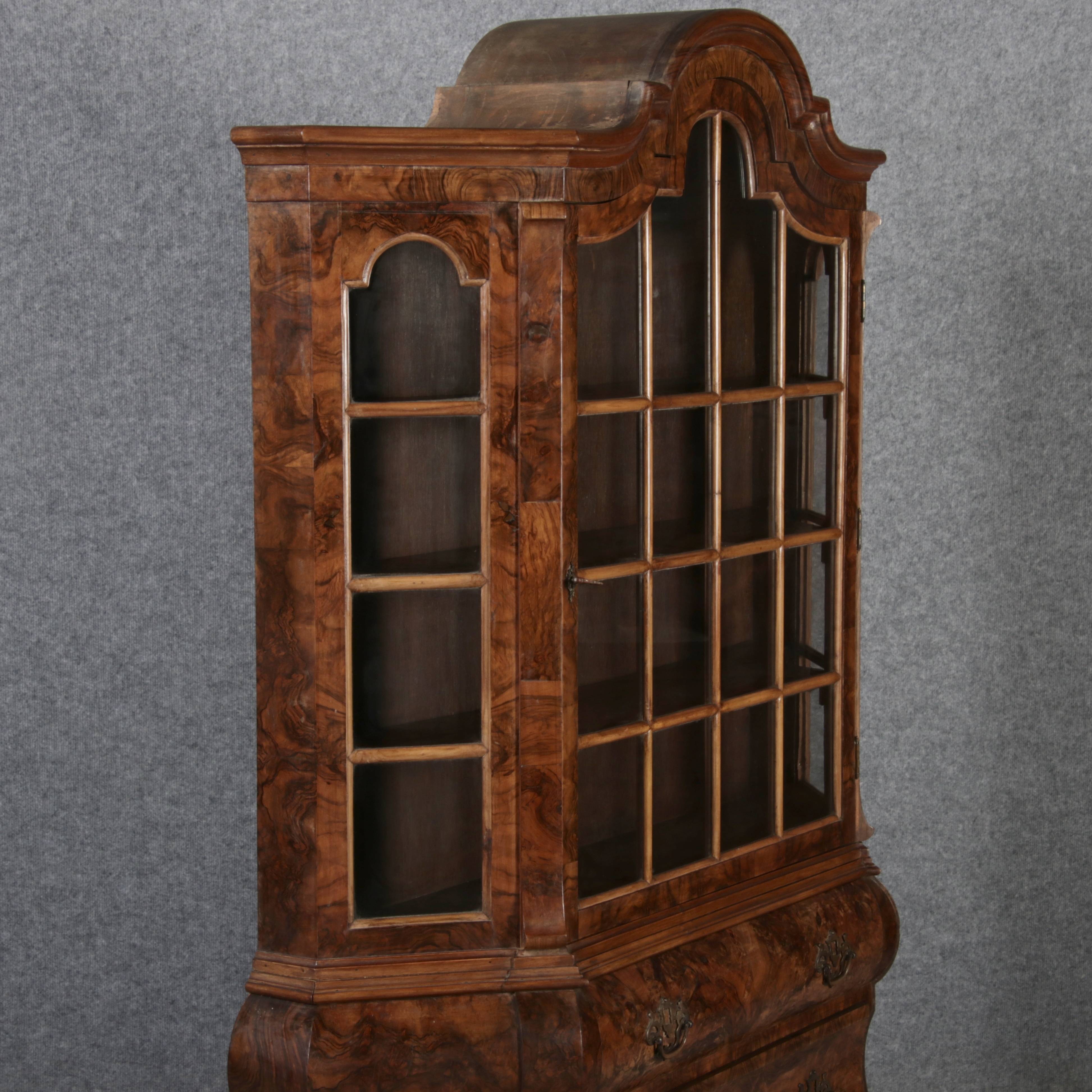 | Antike kleine Holländische Barockvitrine um 1900 Nussbaum | ||
