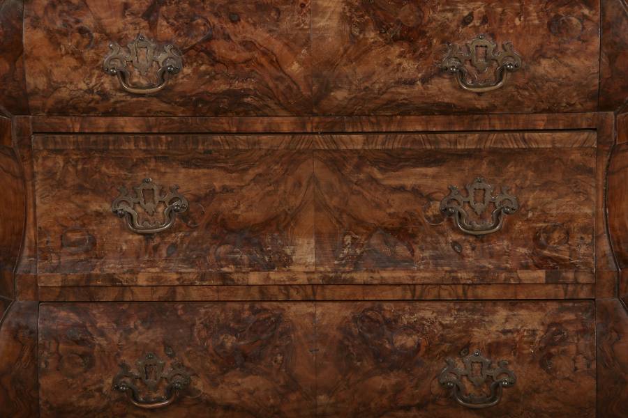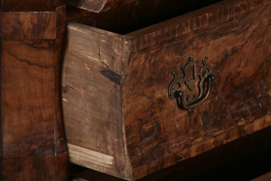 Nussbaum auf Eichenholz, Messinggriffe
