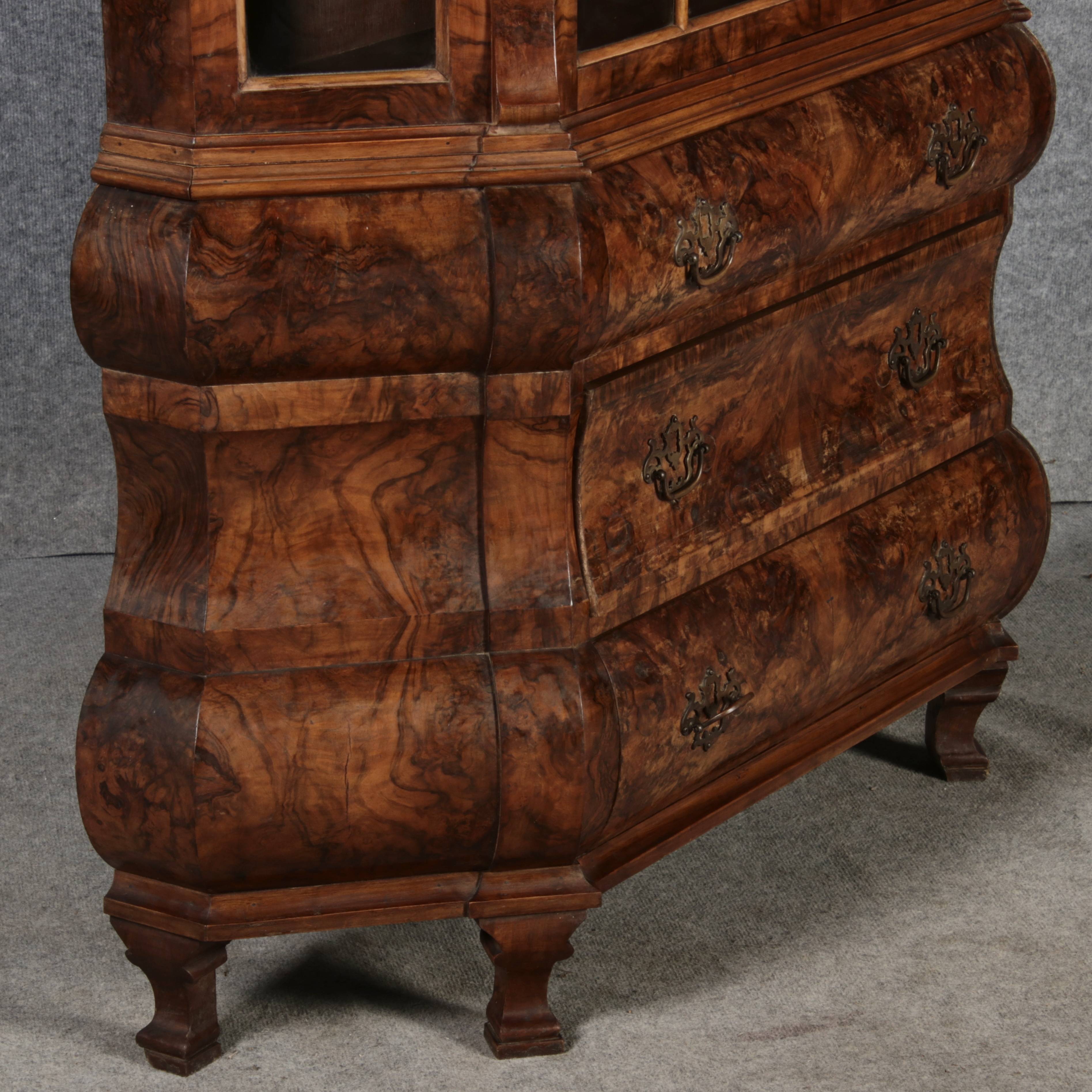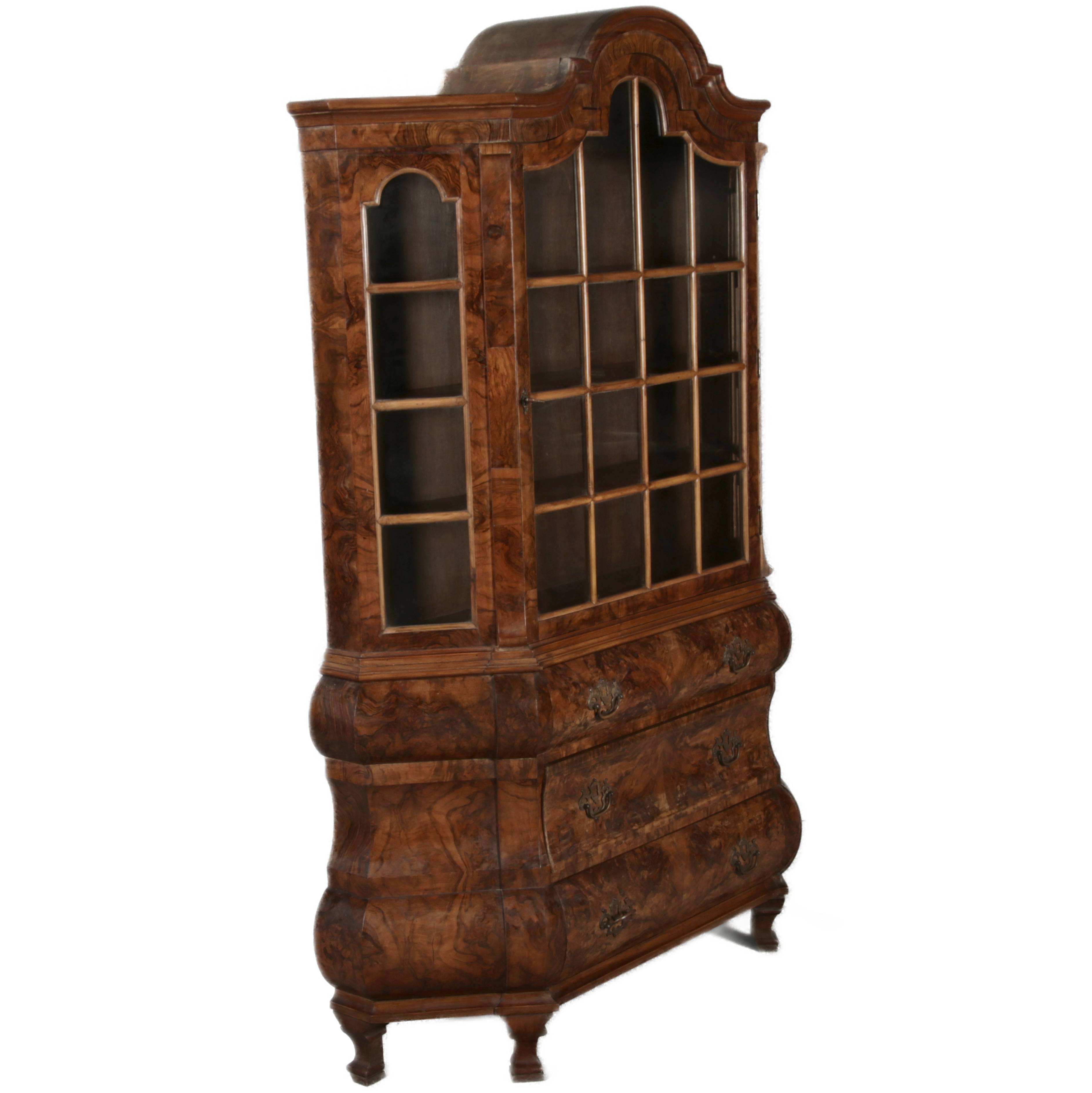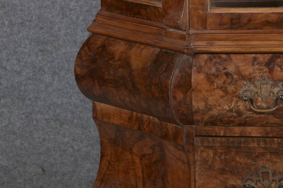 Antike kleine Holländische Barockvitrine um 1900 Nussbaum |